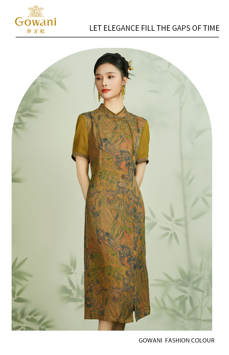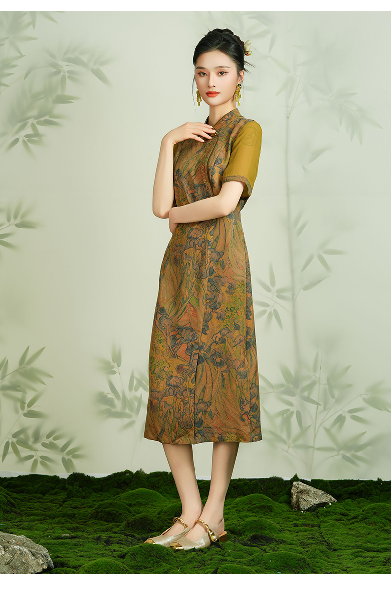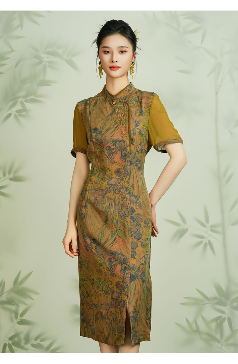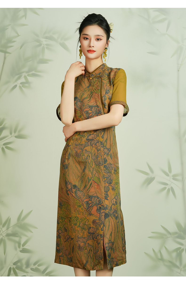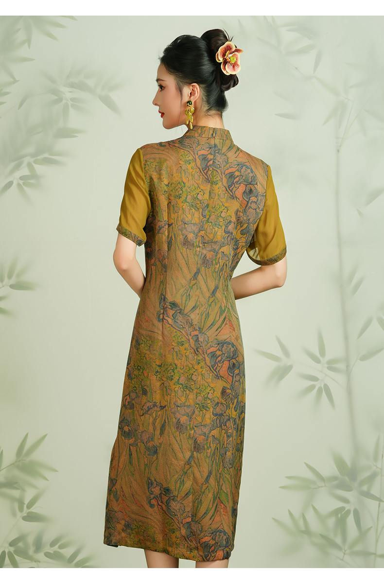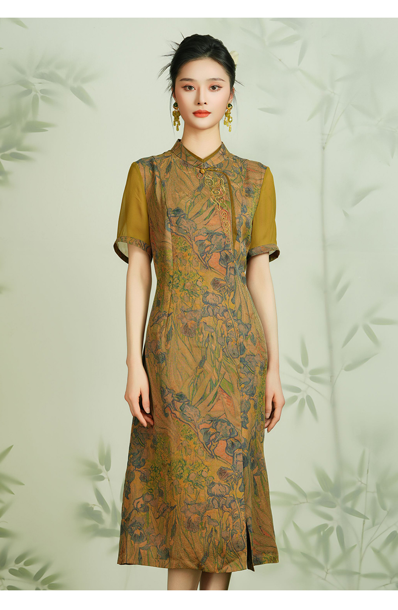 【梵高的鸢尾花】【香云纱】乔万尼24mm重磅真丝连衣裙古典油画风旗袍EM2E837