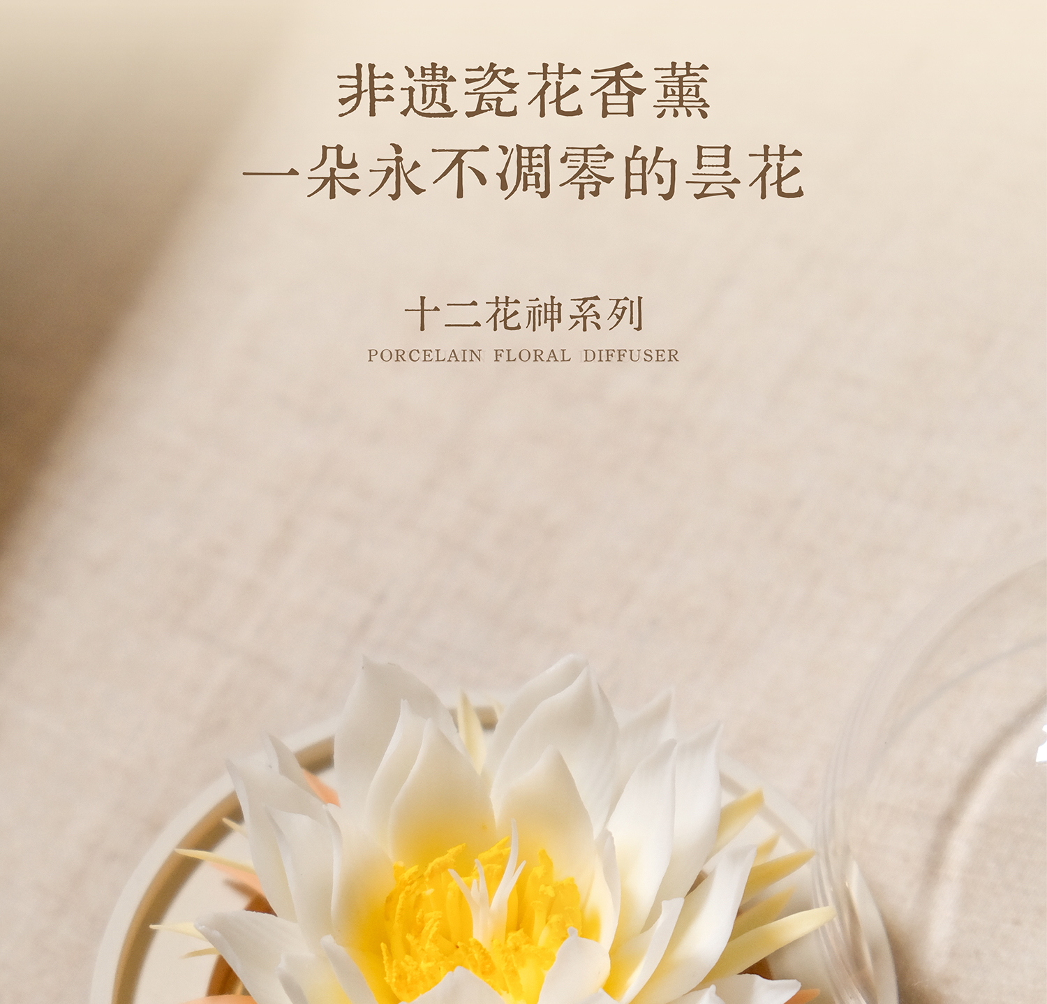 呈白 昙花今夜开非遗瓷花香薰礼盒