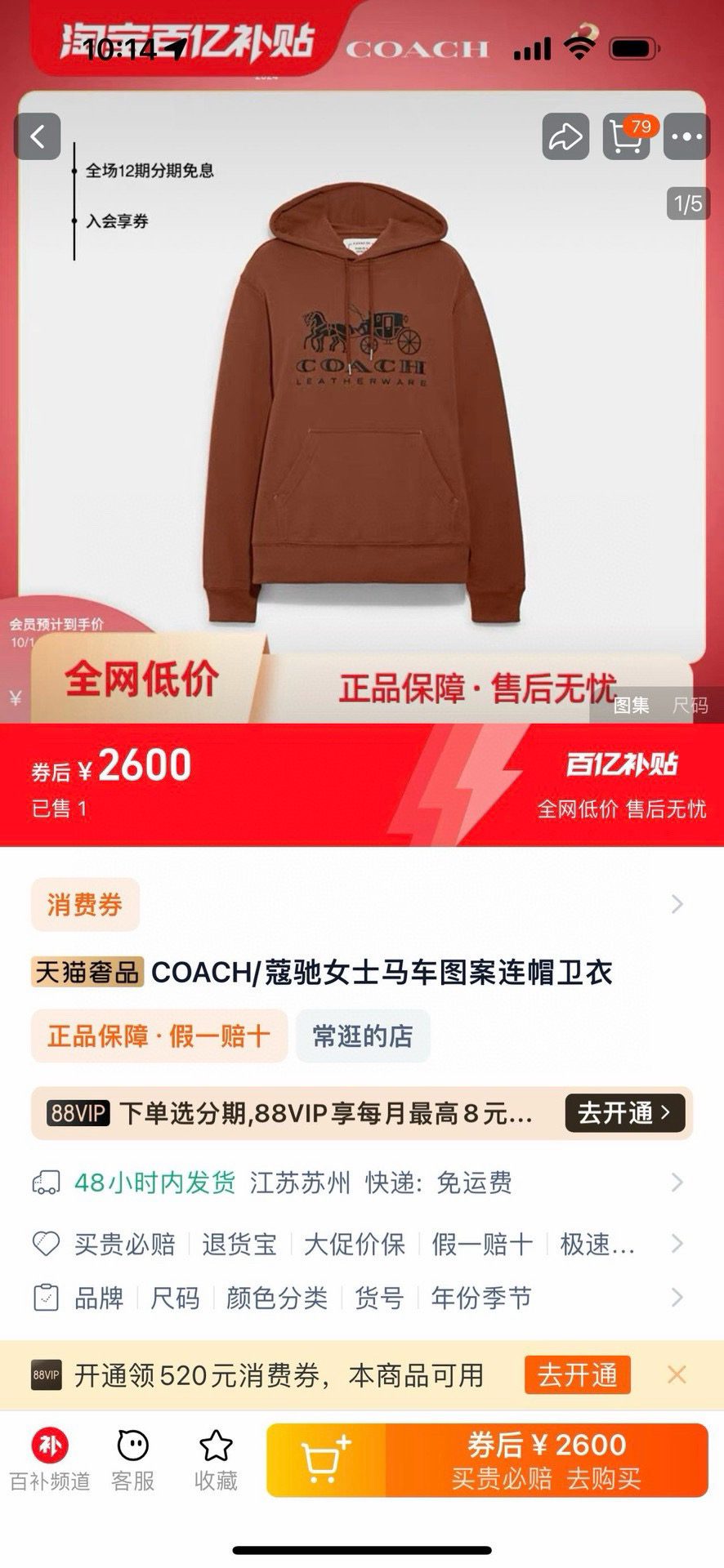 𝐂𝐇刺绣马车加绒连帽卫衣~