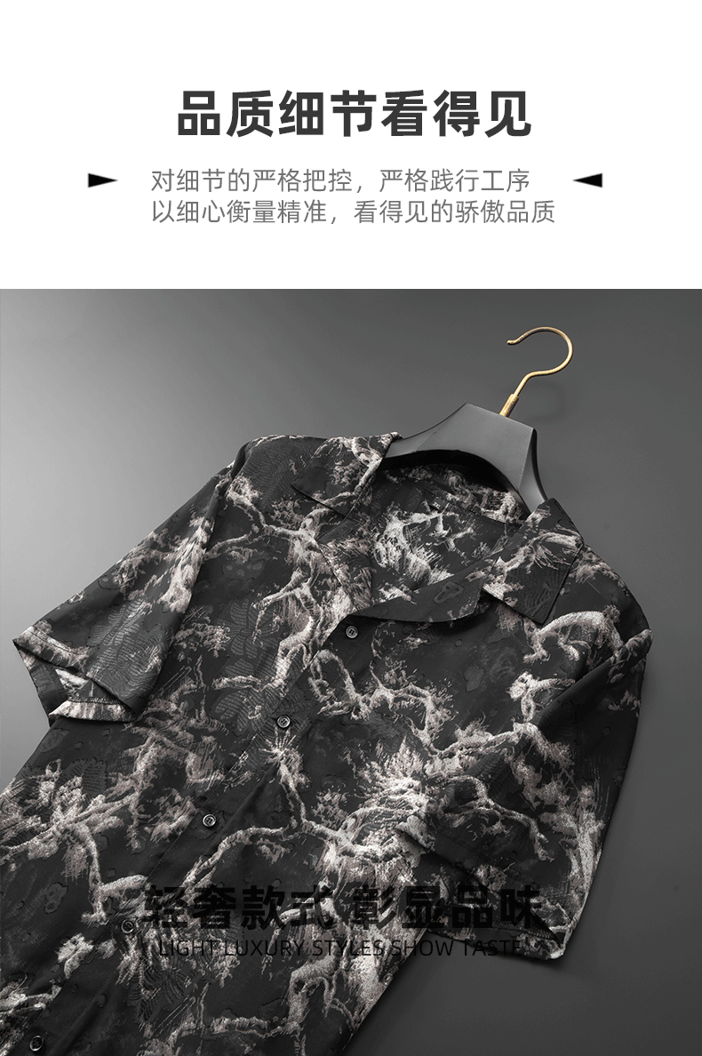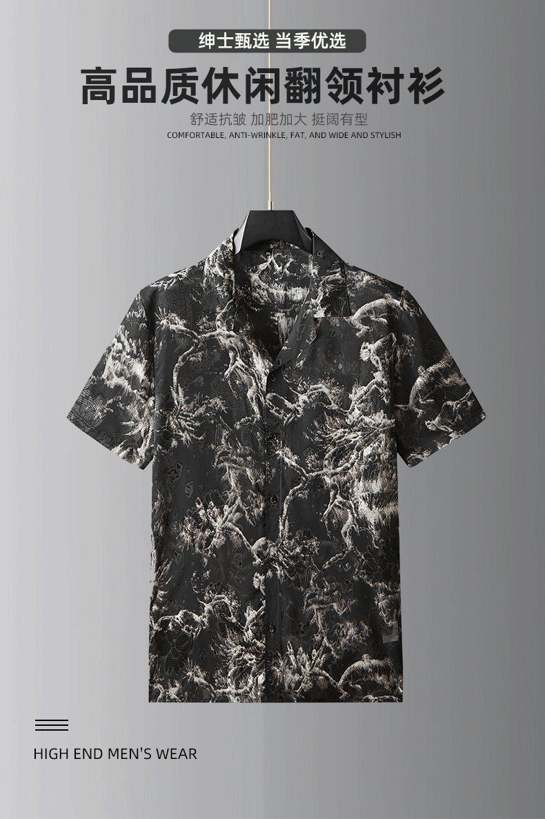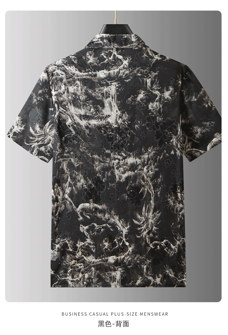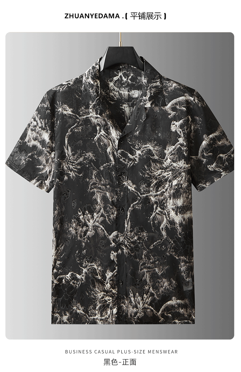 【戗驳领】【DDA】大依优型大码花衬衫短袖衬衫翻领衬衣商务休闲透气半袖夏季上衣男士
