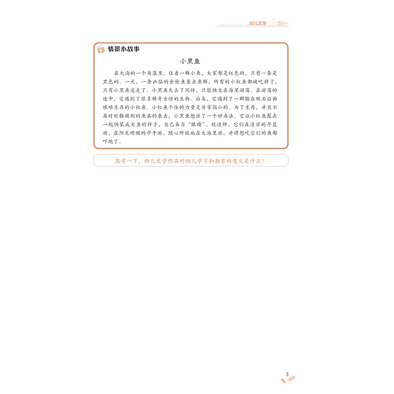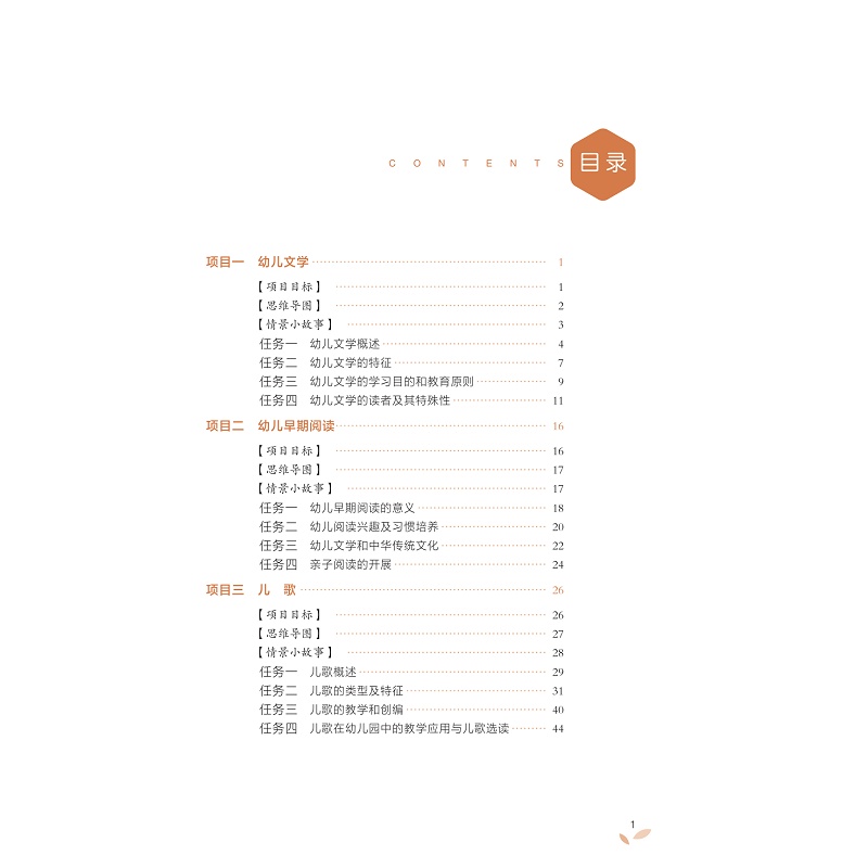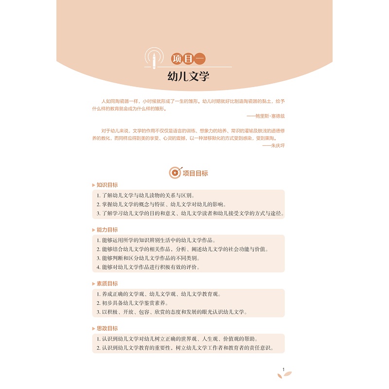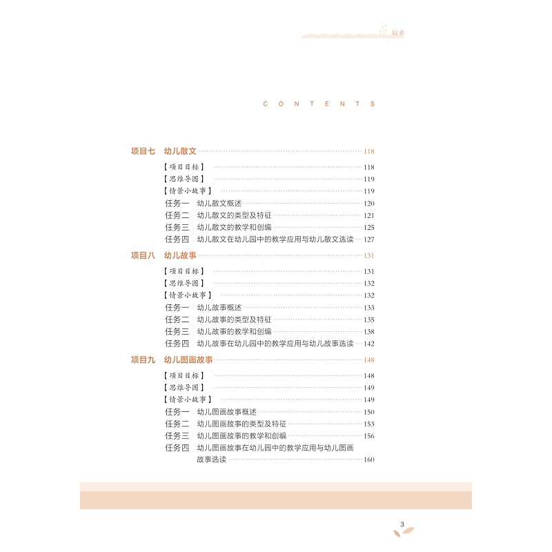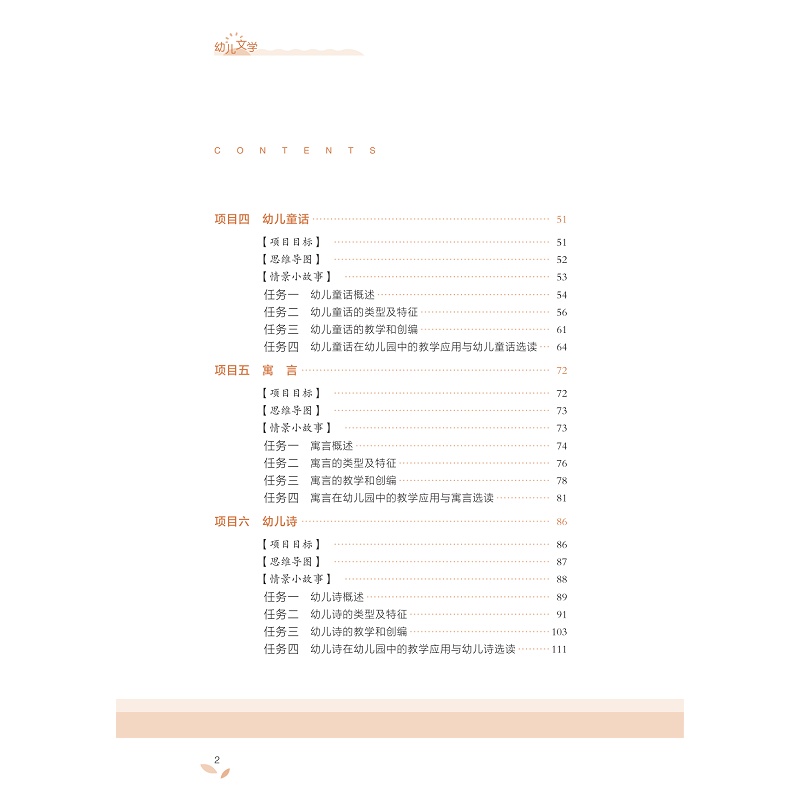 本教材以幼儿园语言教育活动总目标为基本遵循,综合考虑幼儿文学的教育功能、教育内容和不同年龄幼儿的阅读特点,构建起具有一定深度和广度的幼儿文学知识体系。教材紧密结合幼儿园一线教学实践,以大量的幼儿文学案例及多样的分析形式呈现了不同文体欣赏、改编与创编的要求,突出对学生作为幼儿教师职业能力的培养,具有较强的应用性与实践性。教材注重幼儿文学理论知识的全面阐述。教材主体内容包括幼儿文学的基本理论、幼儿文学与早期阅读等基本的理论知识,也包括幼儿诗歌、童话、故事、寓言、图画故事、散文、戏剧和动画方面的发展、分类、特征及表现手法等理论知识重视学生知识素养的培养。