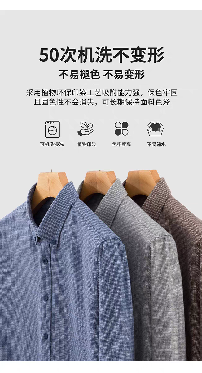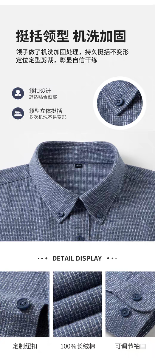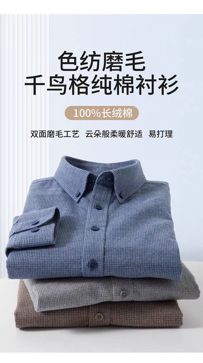 【细腻新疆长绒棉 双面磨毛高支高密】欧保罗 2025早秋新款千鸟格纯棉磨毛衬衫
