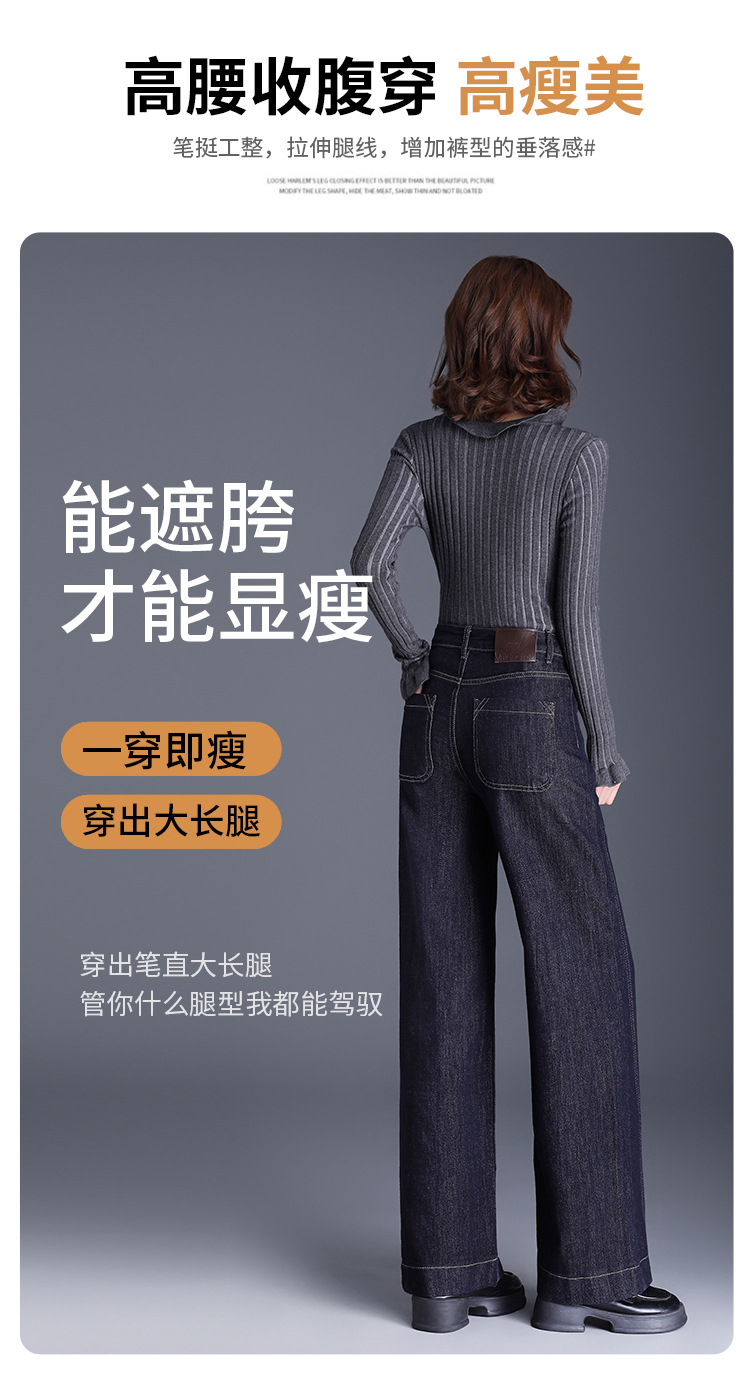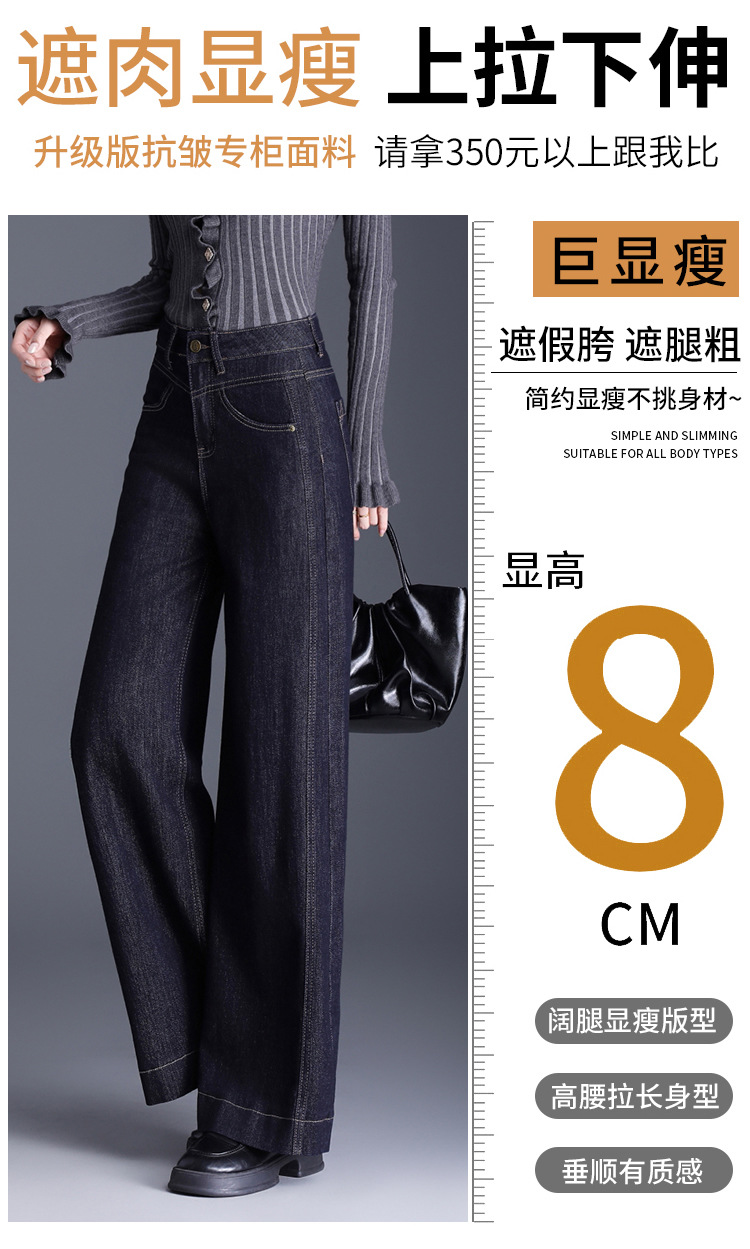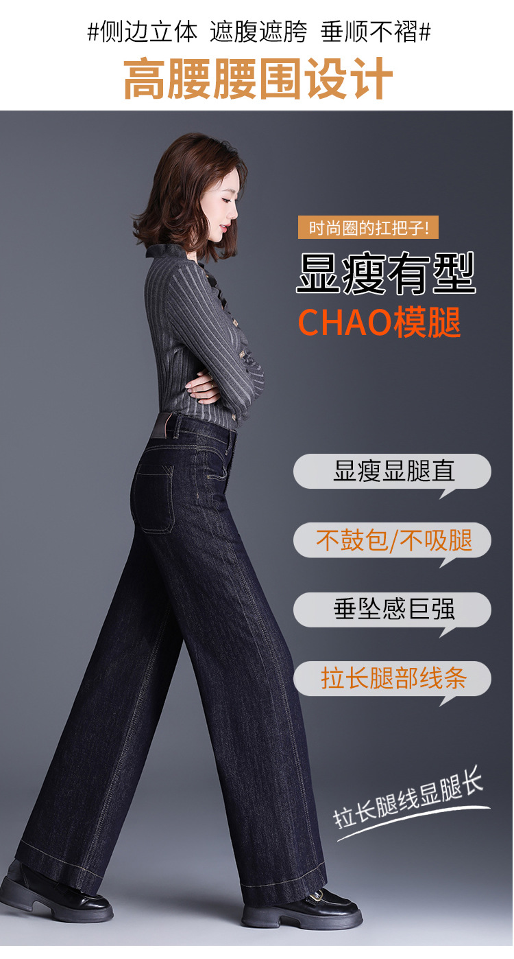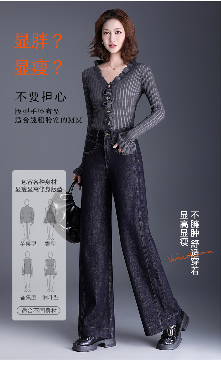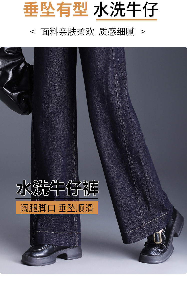 QYM 9570-Y丹宁色阔腿牛仔裤高腰宽松休闲垂感宽松直筒裤