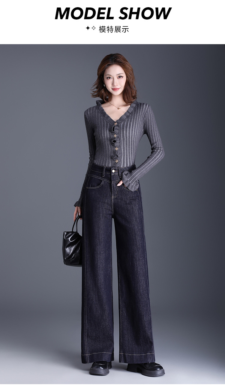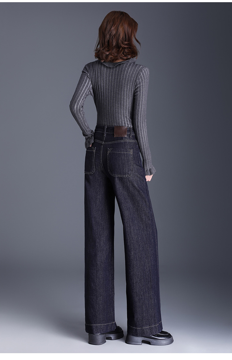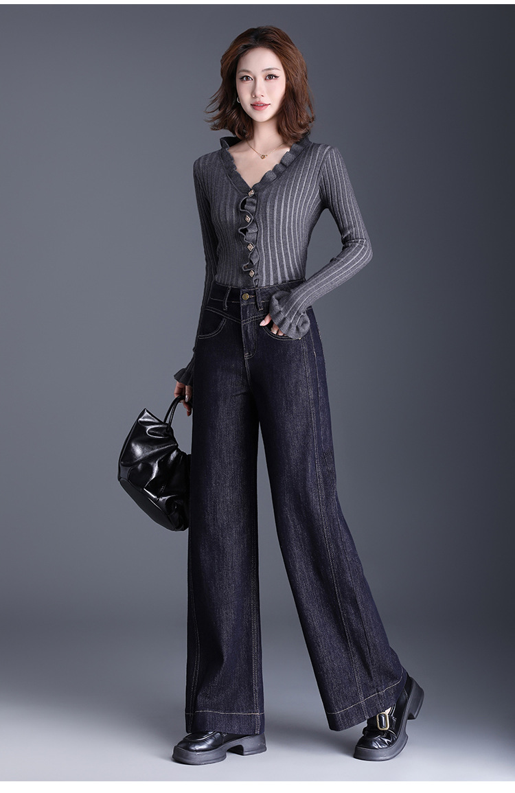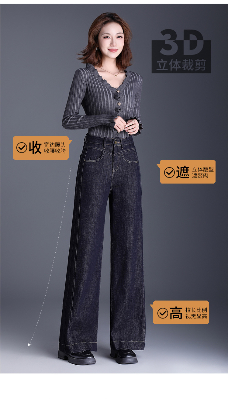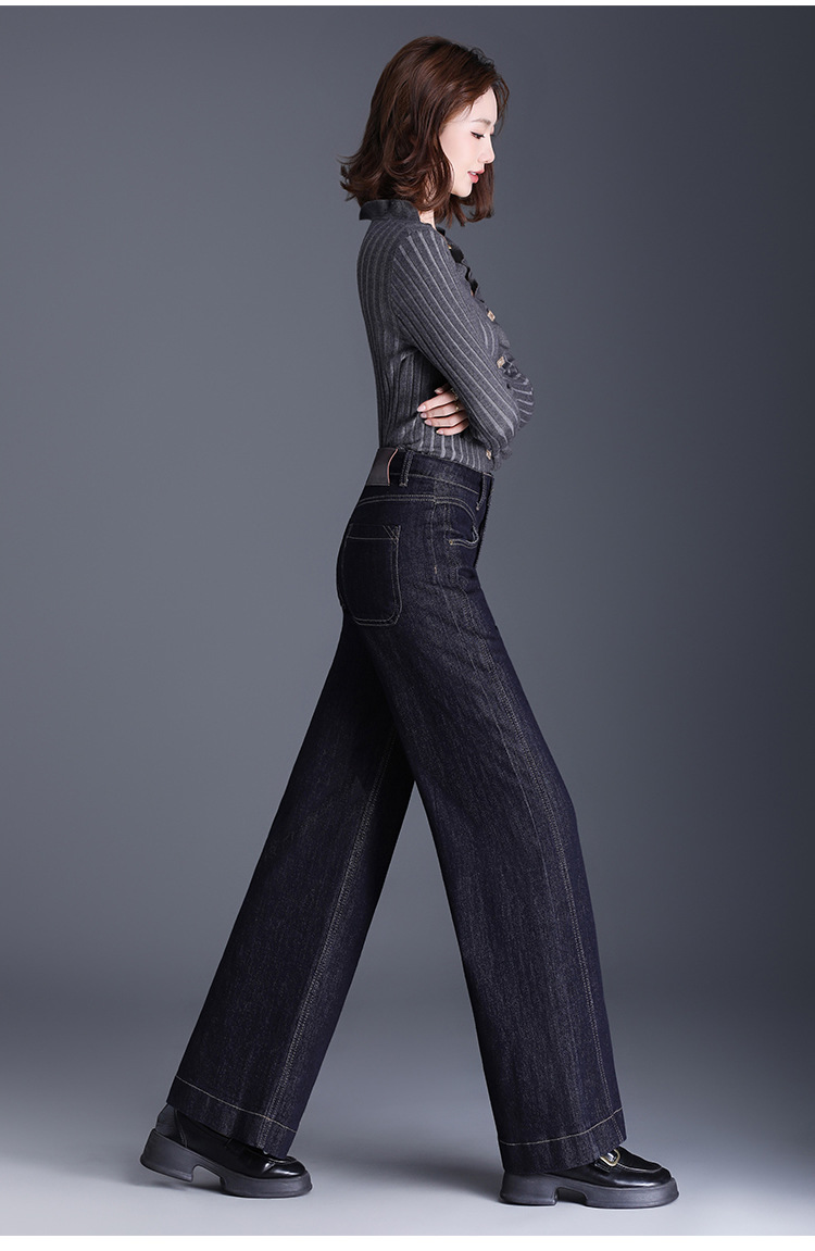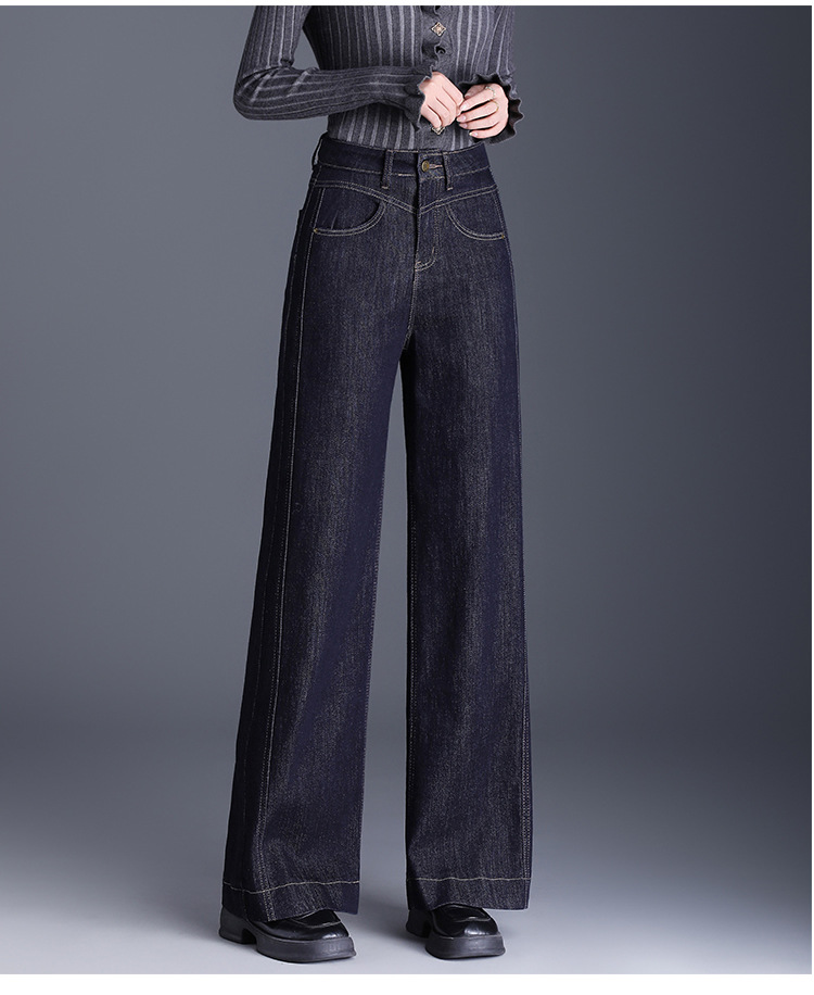 QYM 9570-Y丹宁色阔腿牛仔裤高腰宽松休闲垂感宽松直筒裤