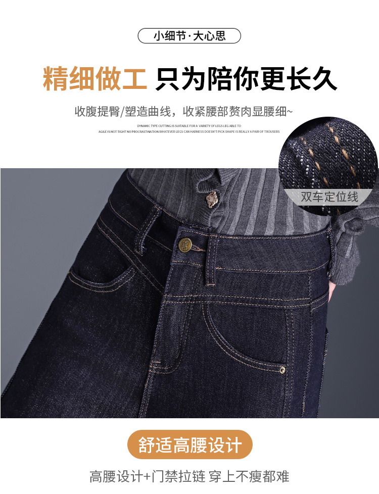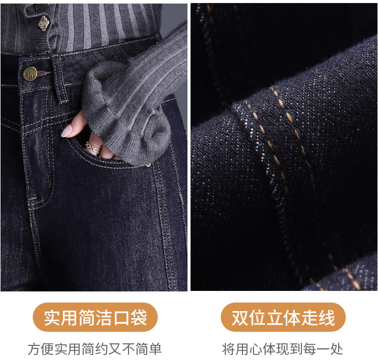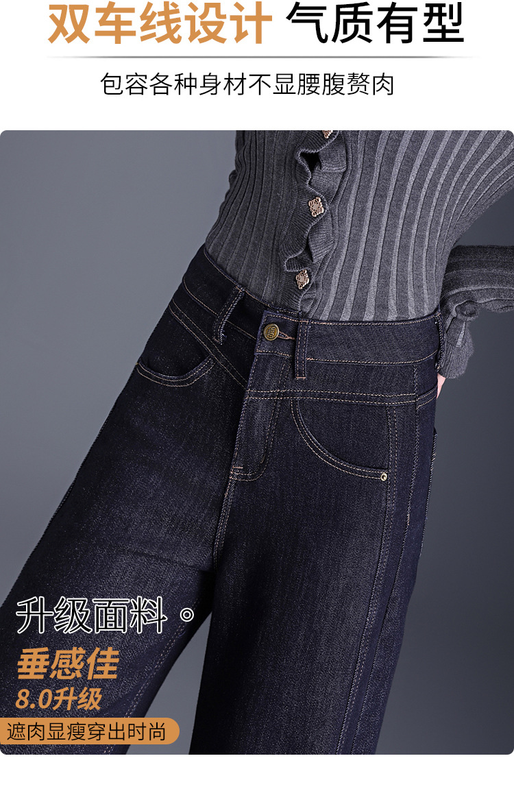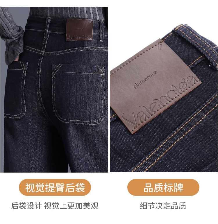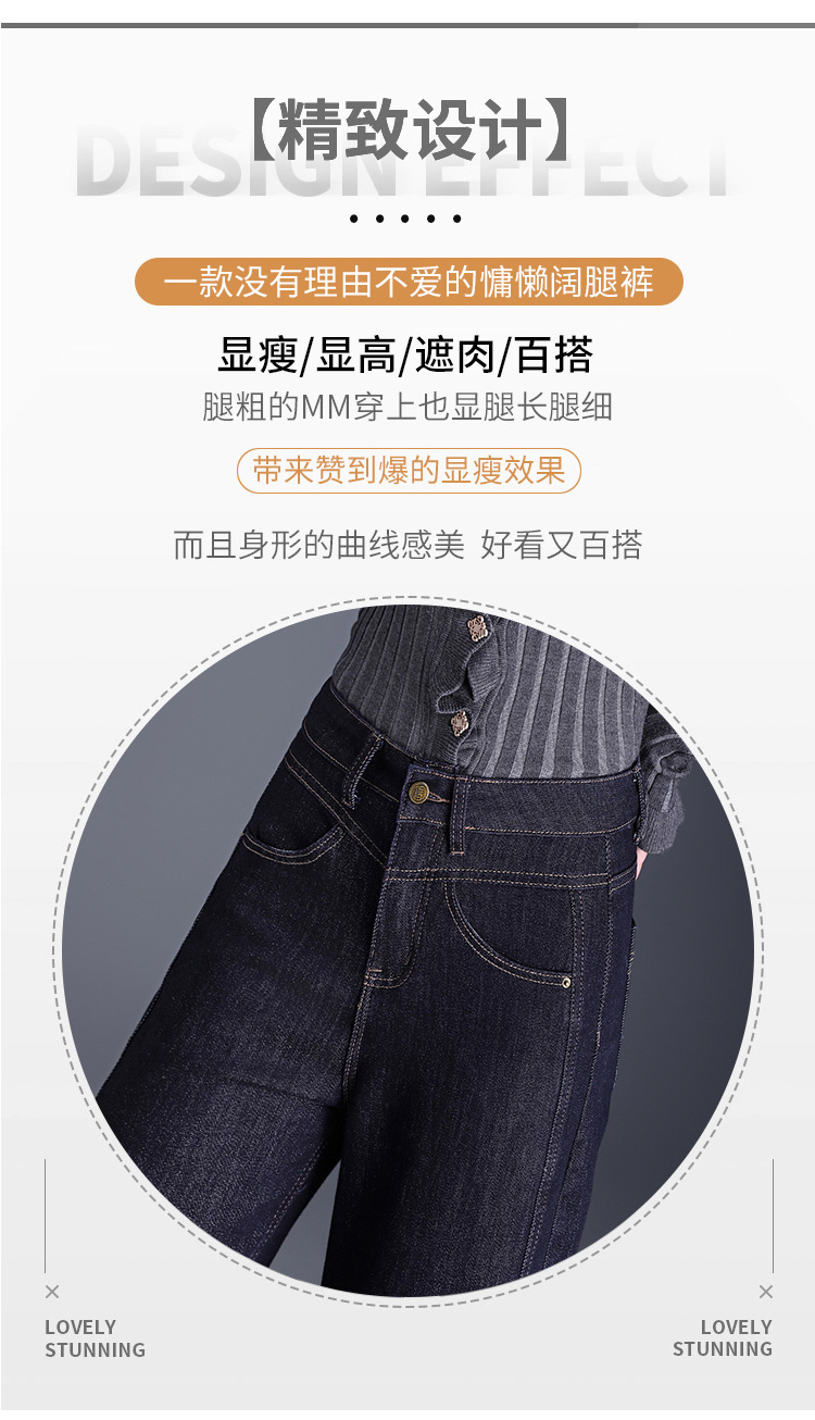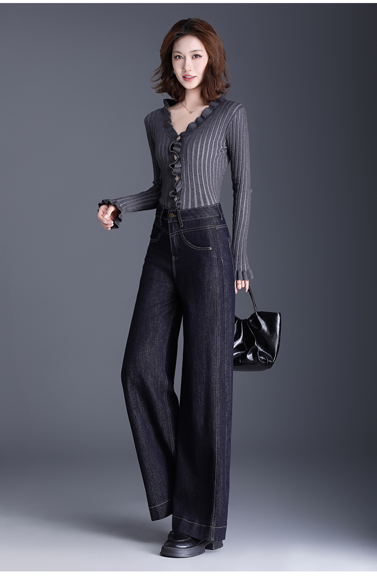 QYM 9570-Y丹宁色阔腿牛仔裤高腰宽松休闲垂感宽松直筒裤