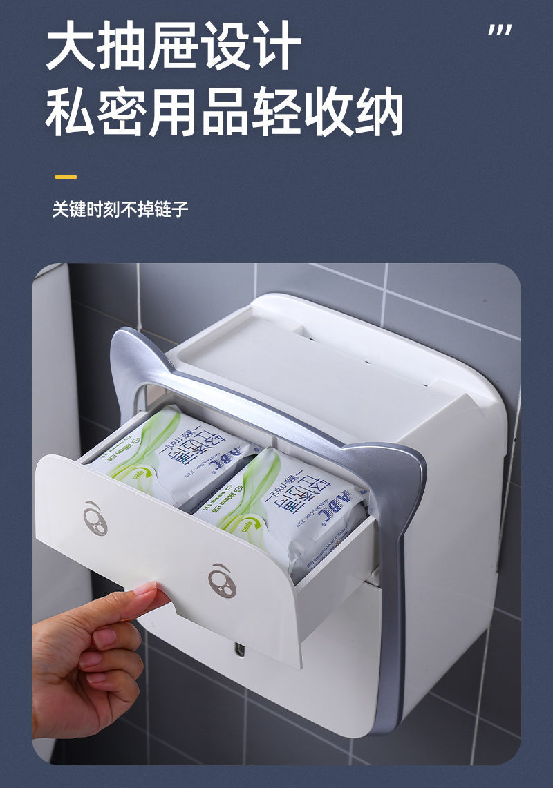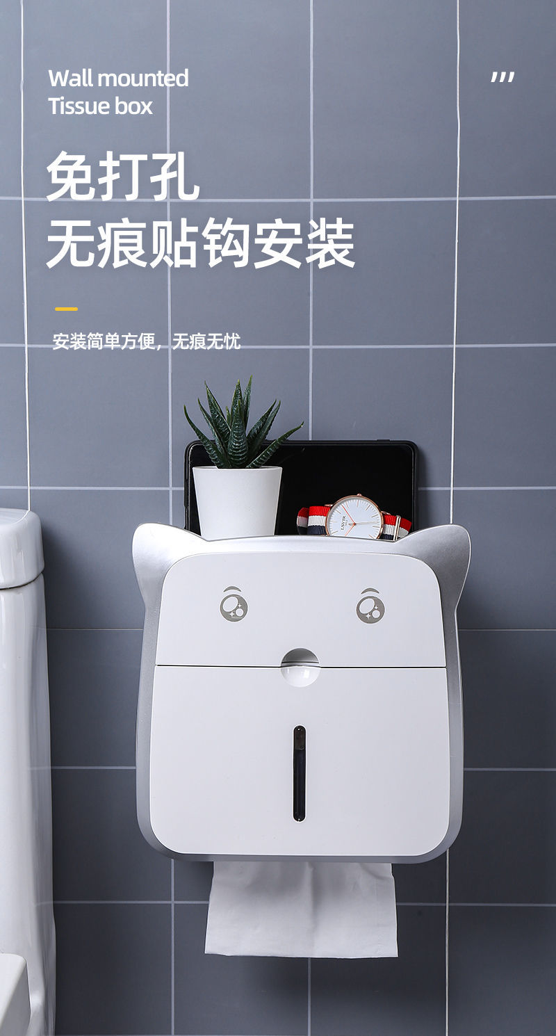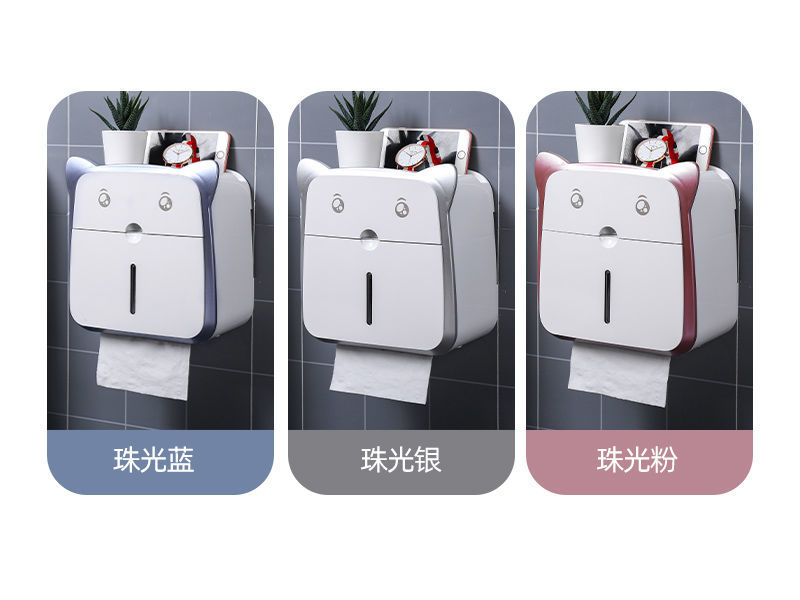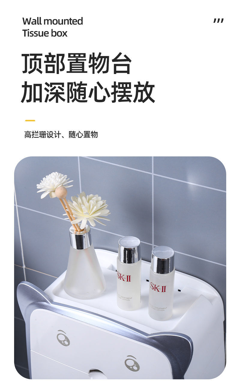 卫生间纸巾盒壁挂式免打孔置物架厕所抽纸盒浴室卫生间收纳神器网七夕情人节
