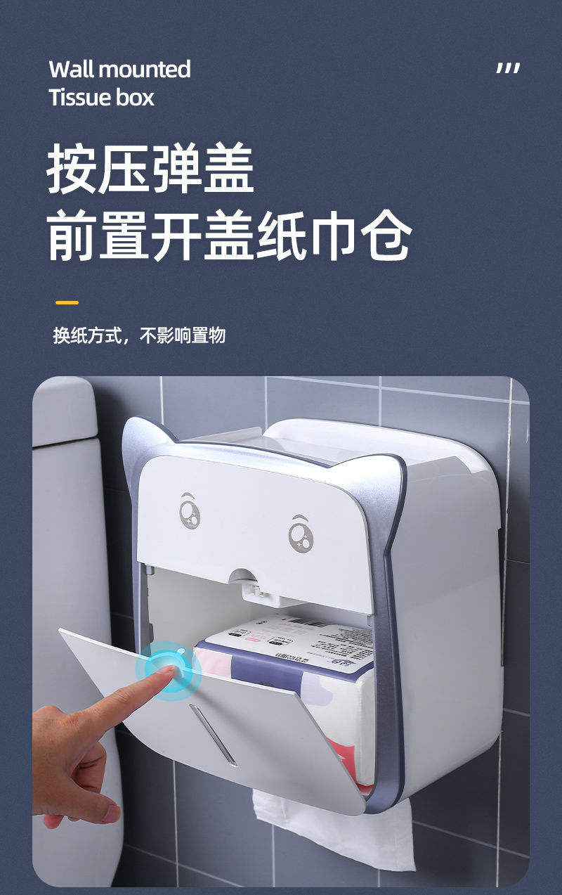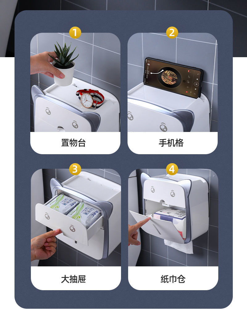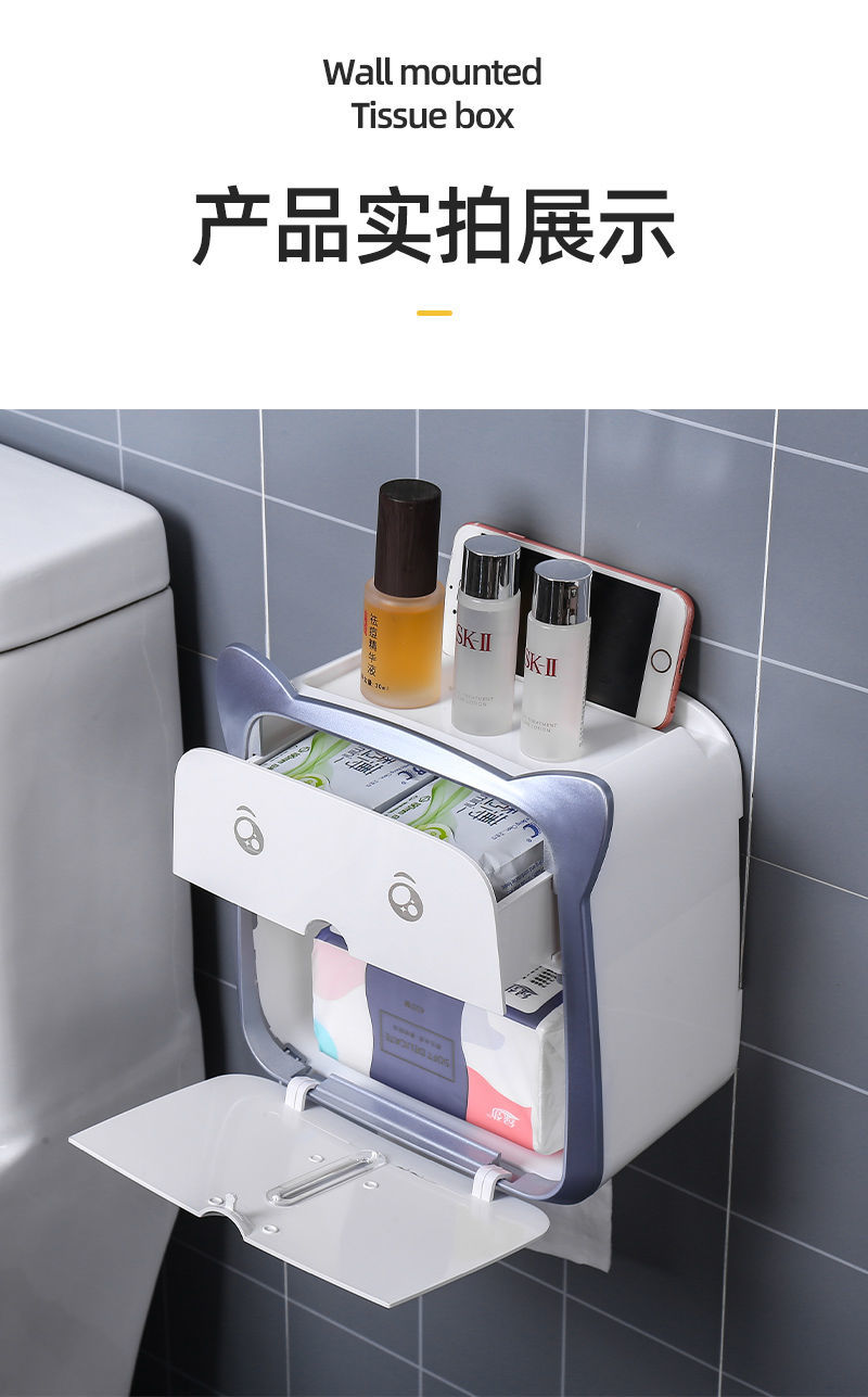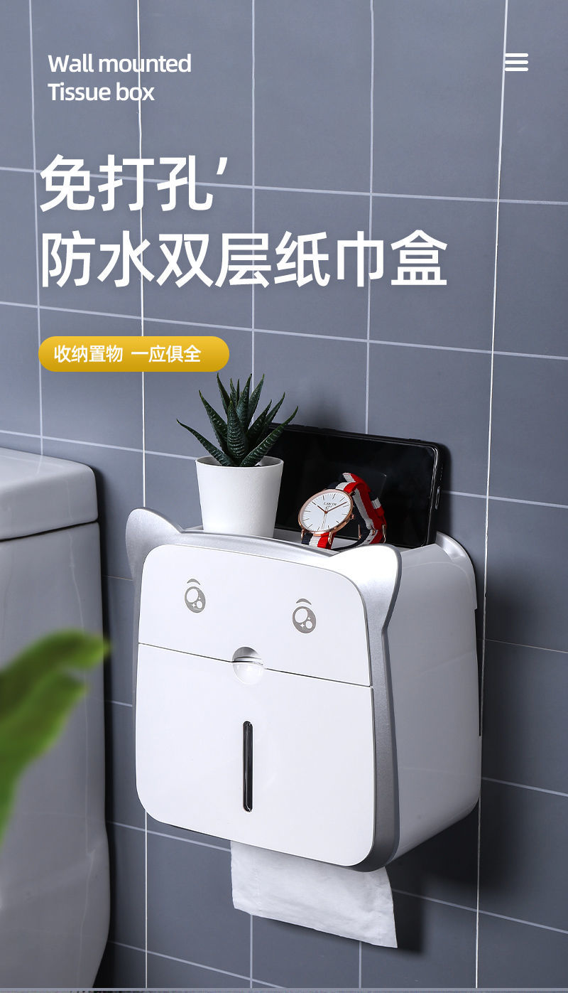 卫生间纸巾盒壁挂式免打孔置物架厕所抽纸盒浴室卫生间收纳神器网七夕情人节