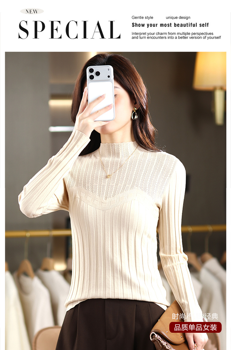 CC内搭上衣修身显瘦洋气百搭半高领打底衫2025新款女装冬装毛衣短款