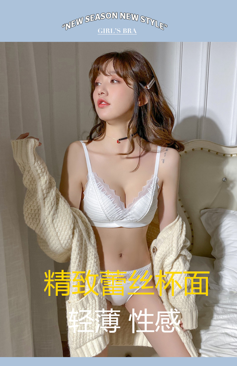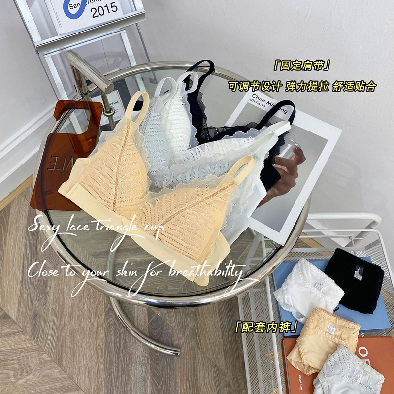 两套立减!SSEMMY热带雨林法式浪漫薄款三角杯内衣裤套装,蕾丝聚拢无钢圈0束缚文胸,穿着无负担,给你一个忘记脱掉内衣的理由