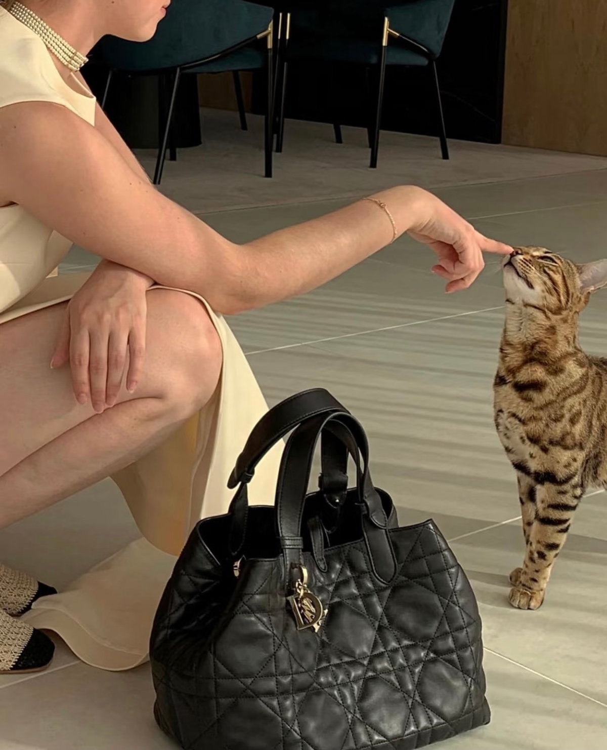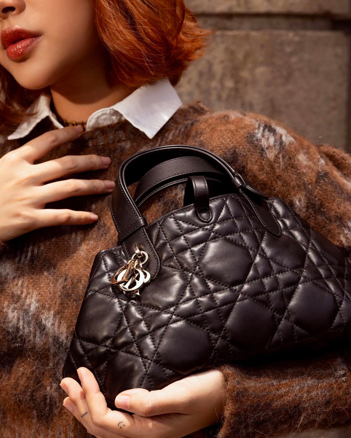 经典的藤格纹绗缝格,搭配戴妃同款的字母吊坠,一眼dior。
