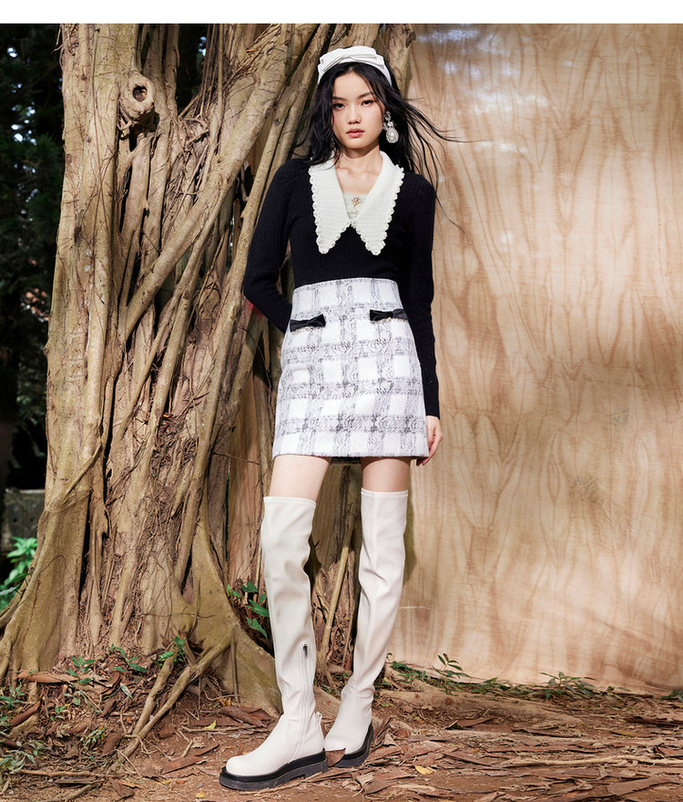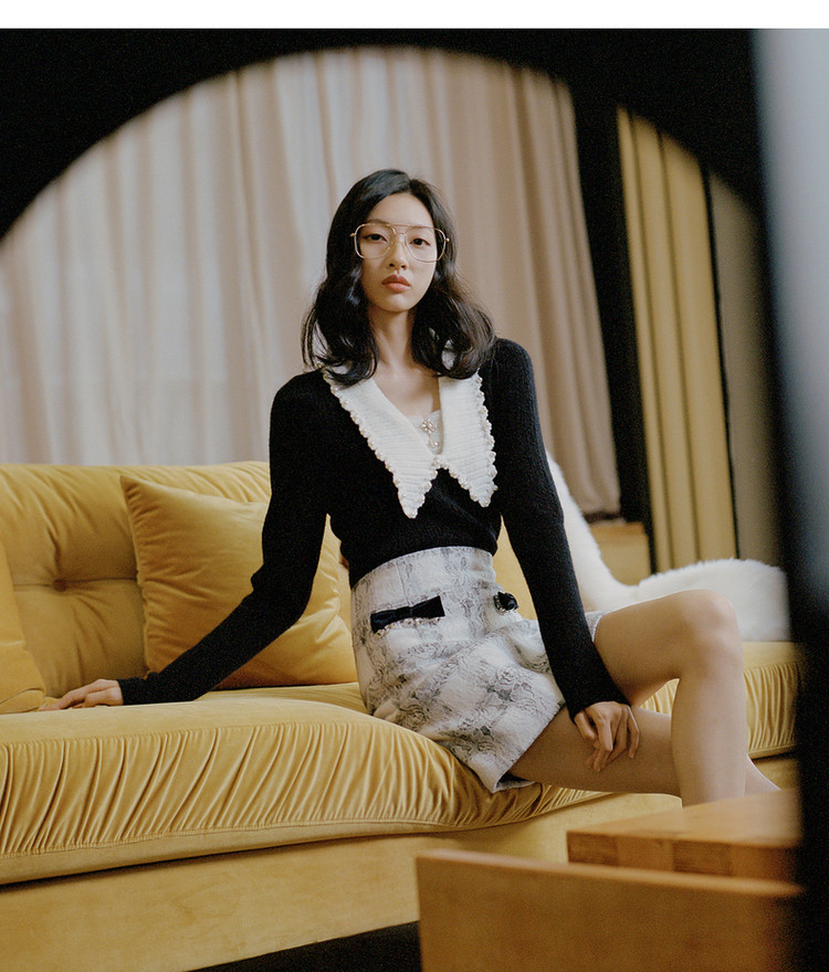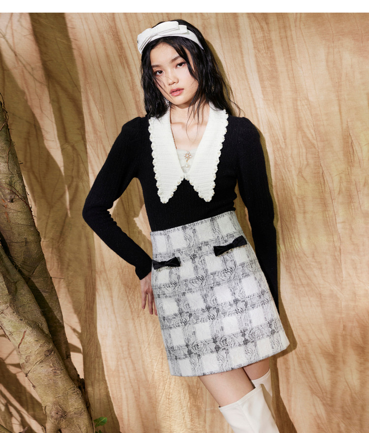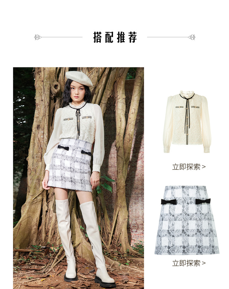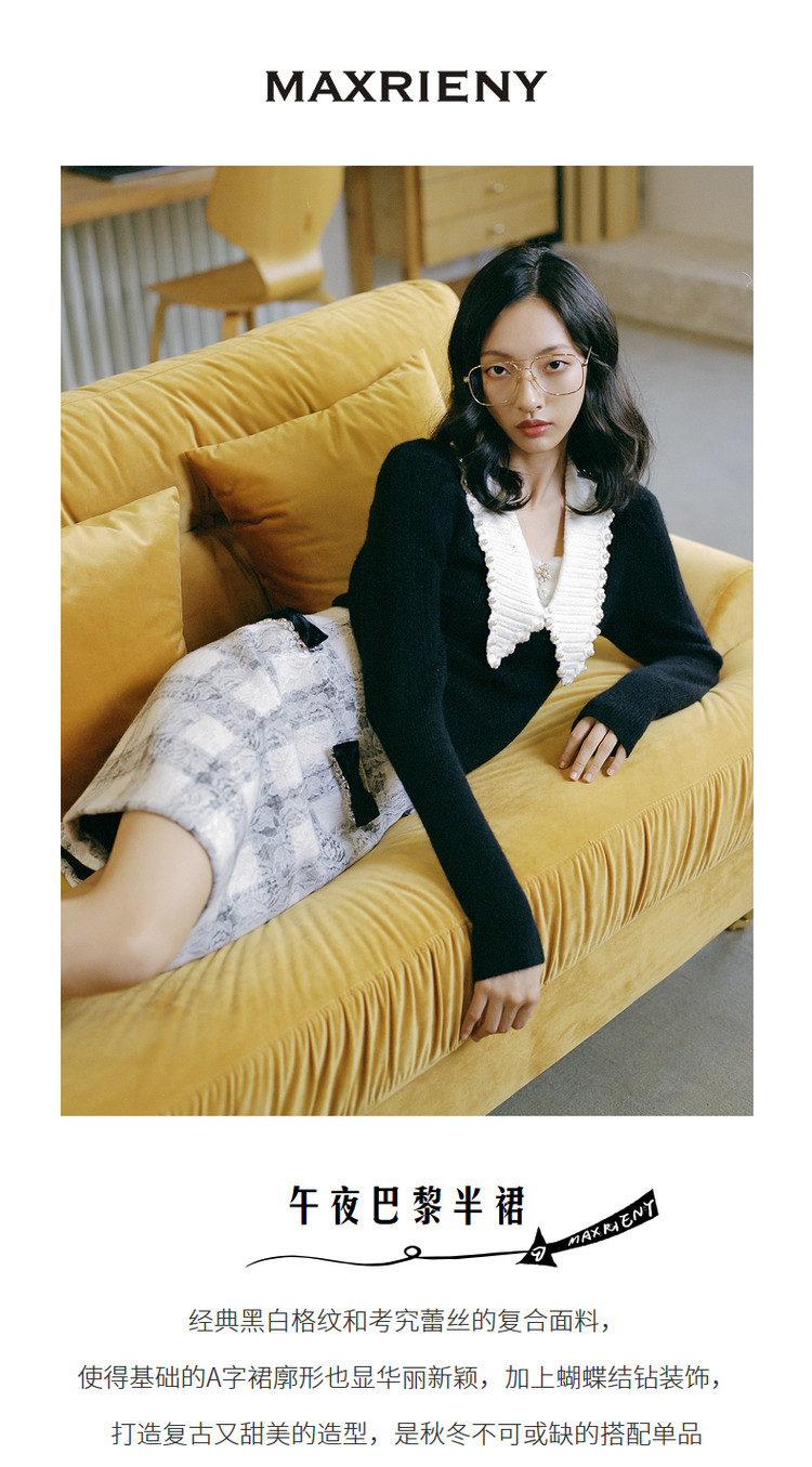 MAXRIENY午夜巴黎半裙2023冬季新款复古蕾丝短裙A字MC87SK811Z05