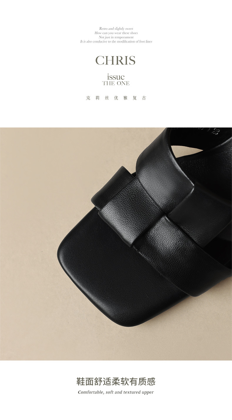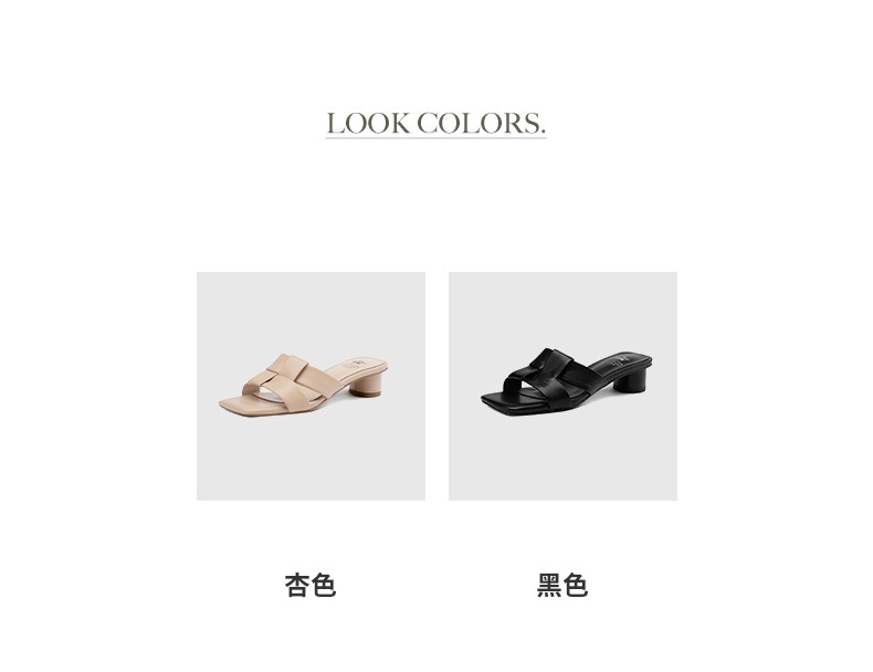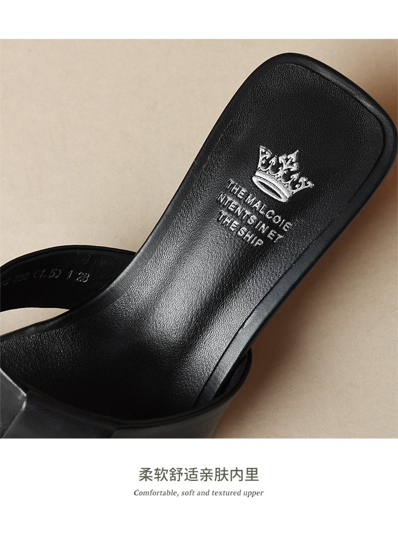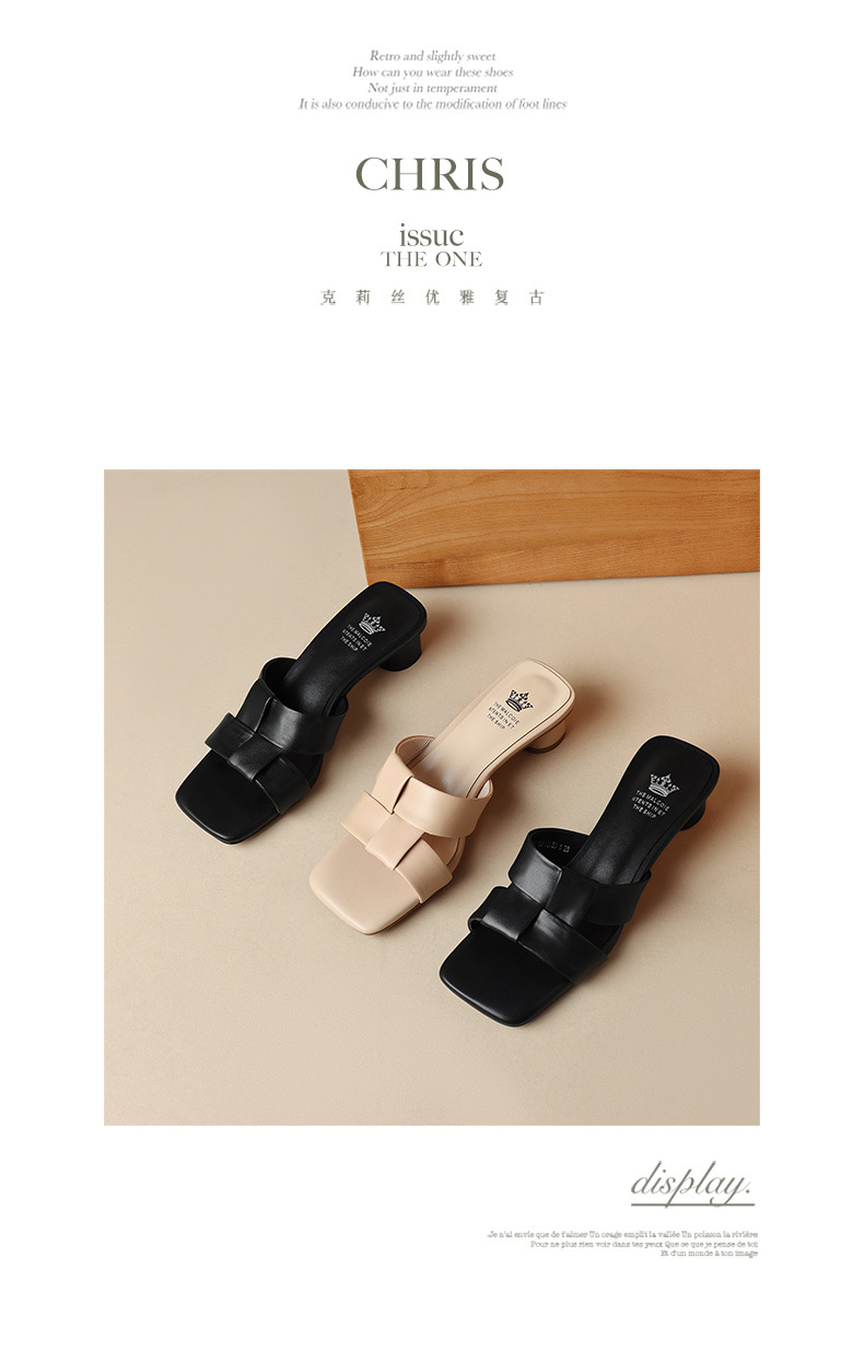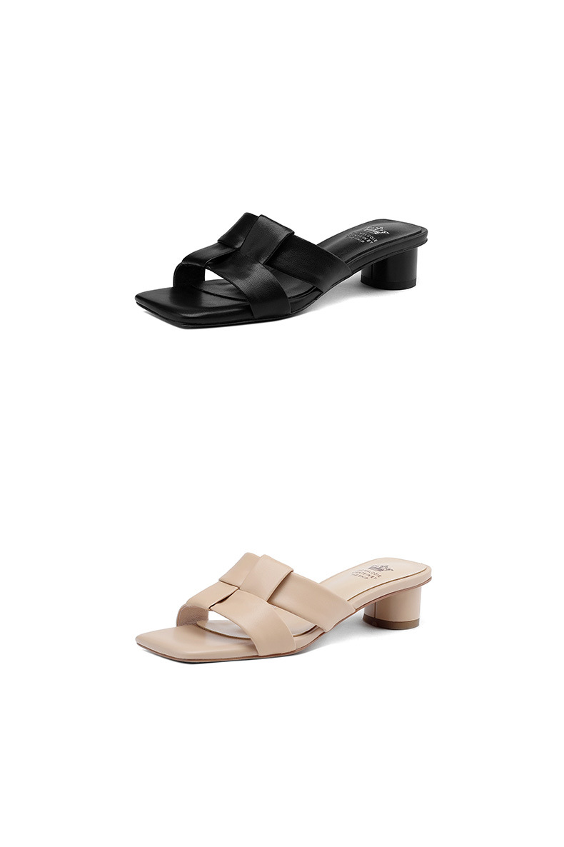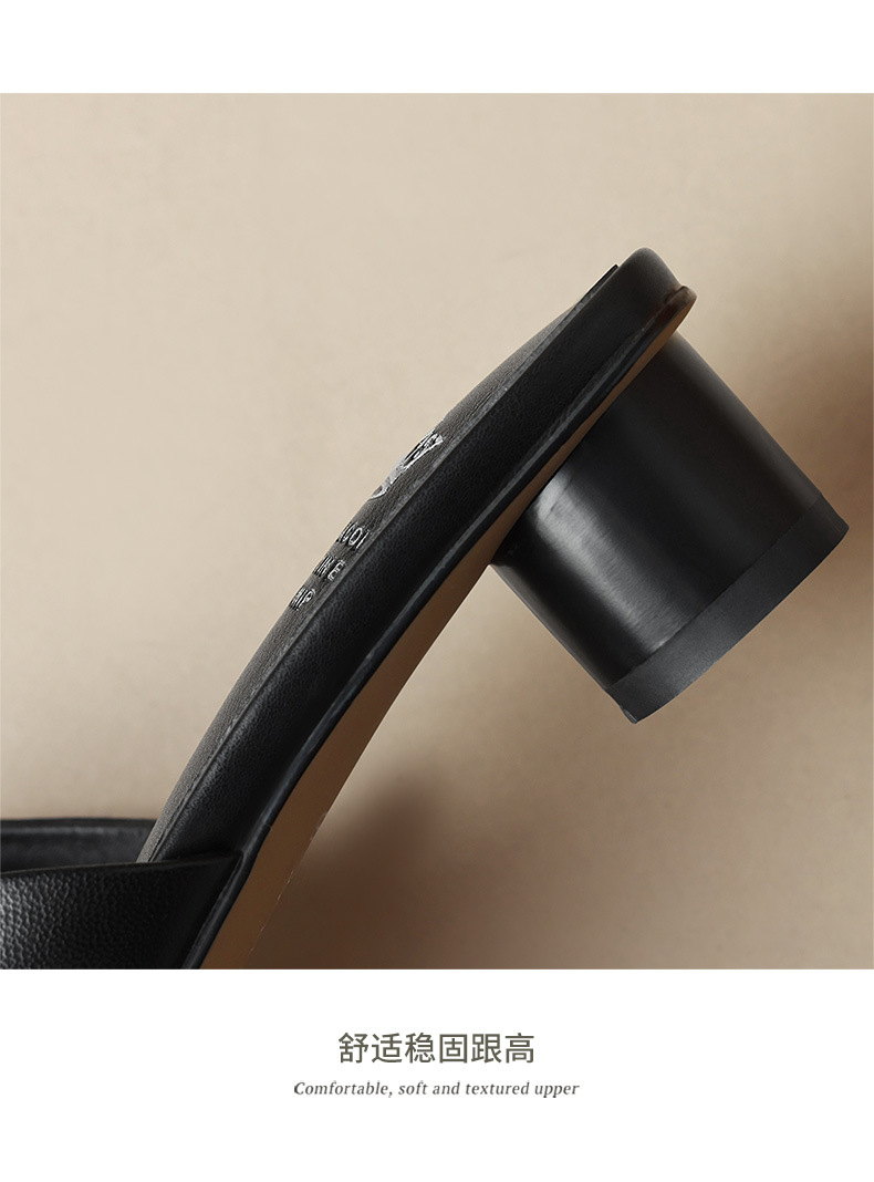 法式简约黑色方头,中跟一字半拖鞋NX-m1583