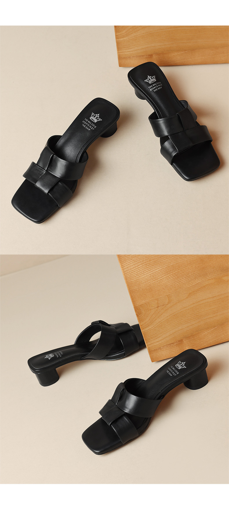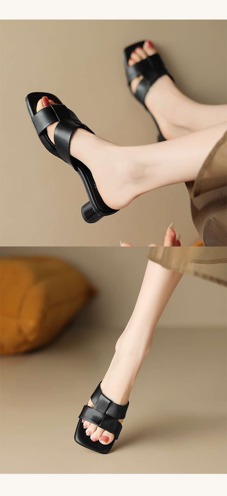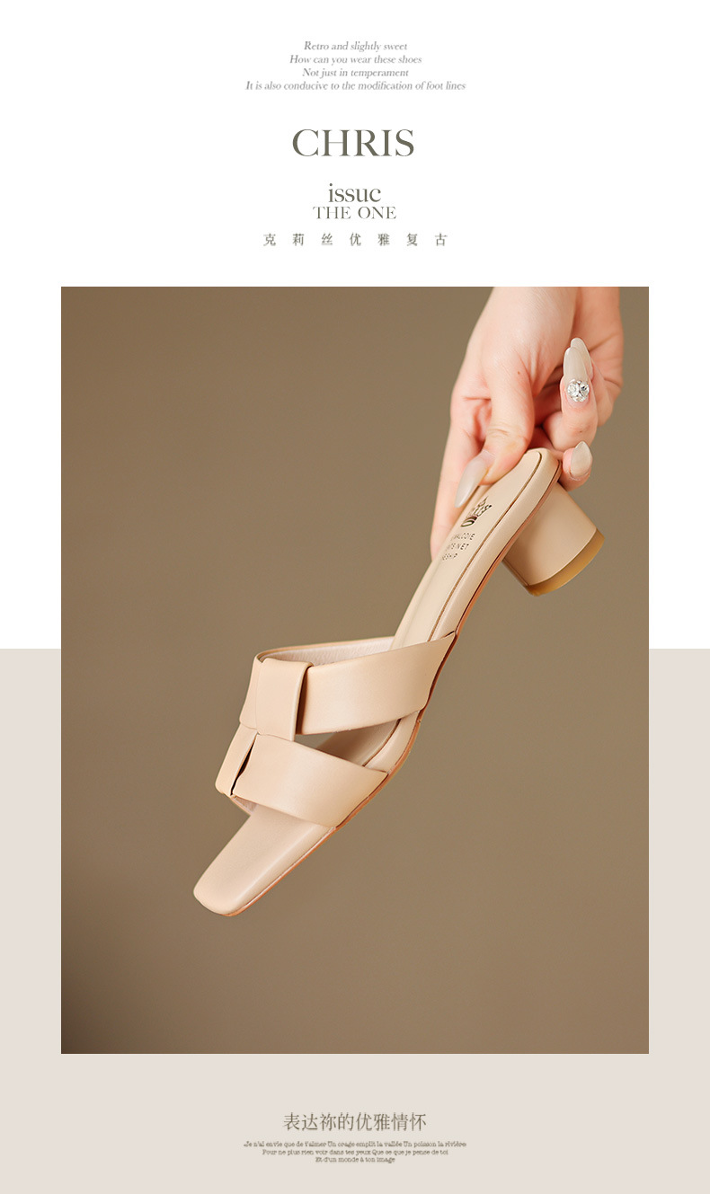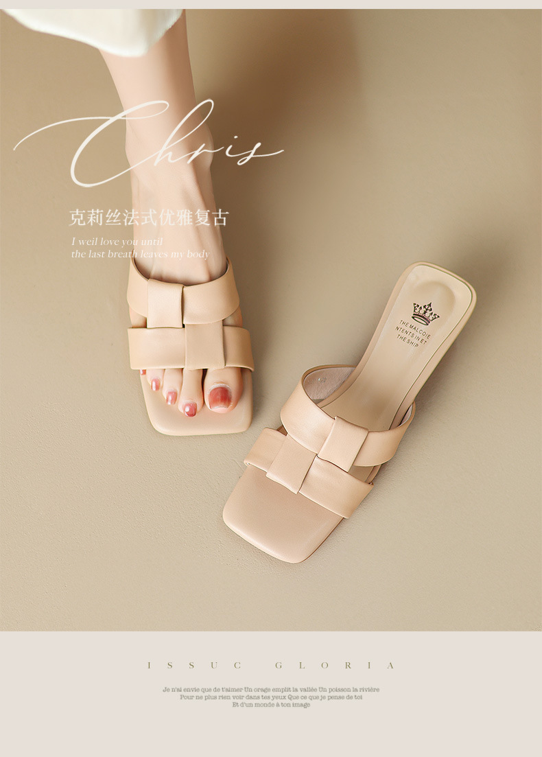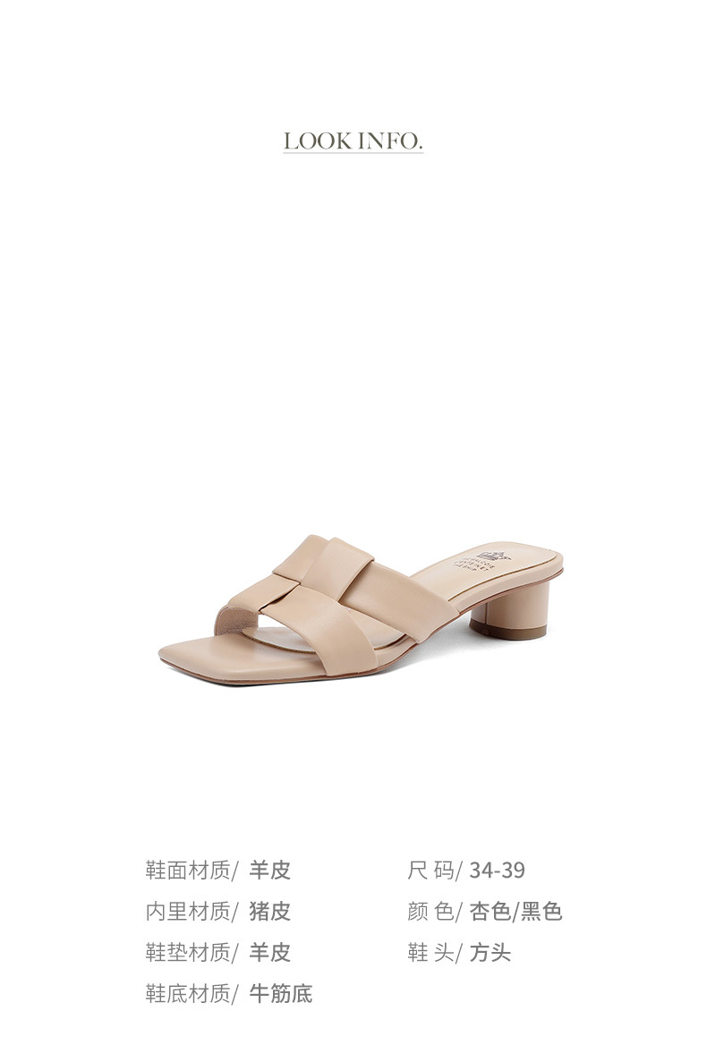 法式简约黑色方头,中跟一字半拖鞋NX-m1583