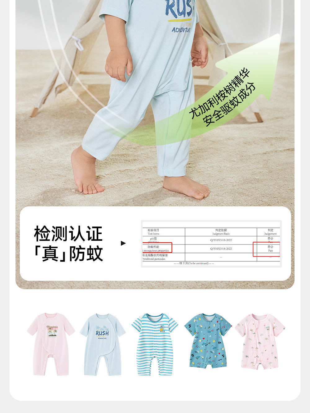 【商场同款】英氏婴儿衣服春夏透气男童女童家居服连体衣2025新款