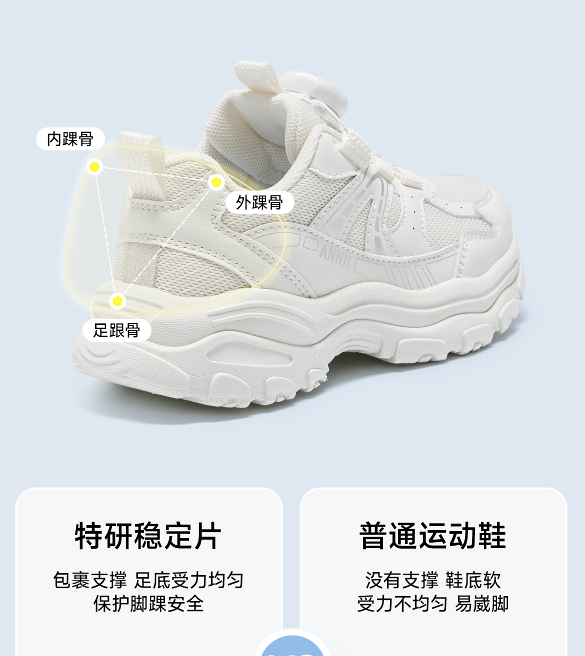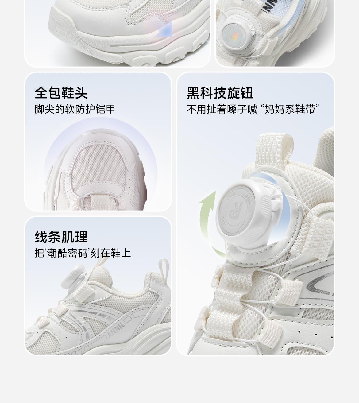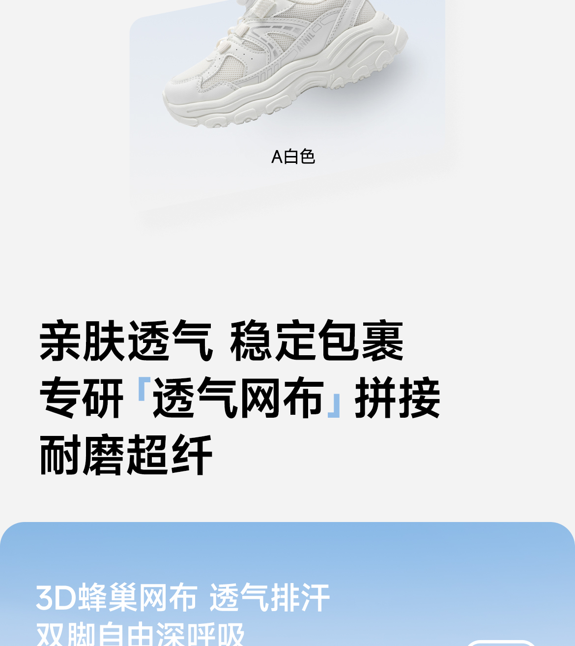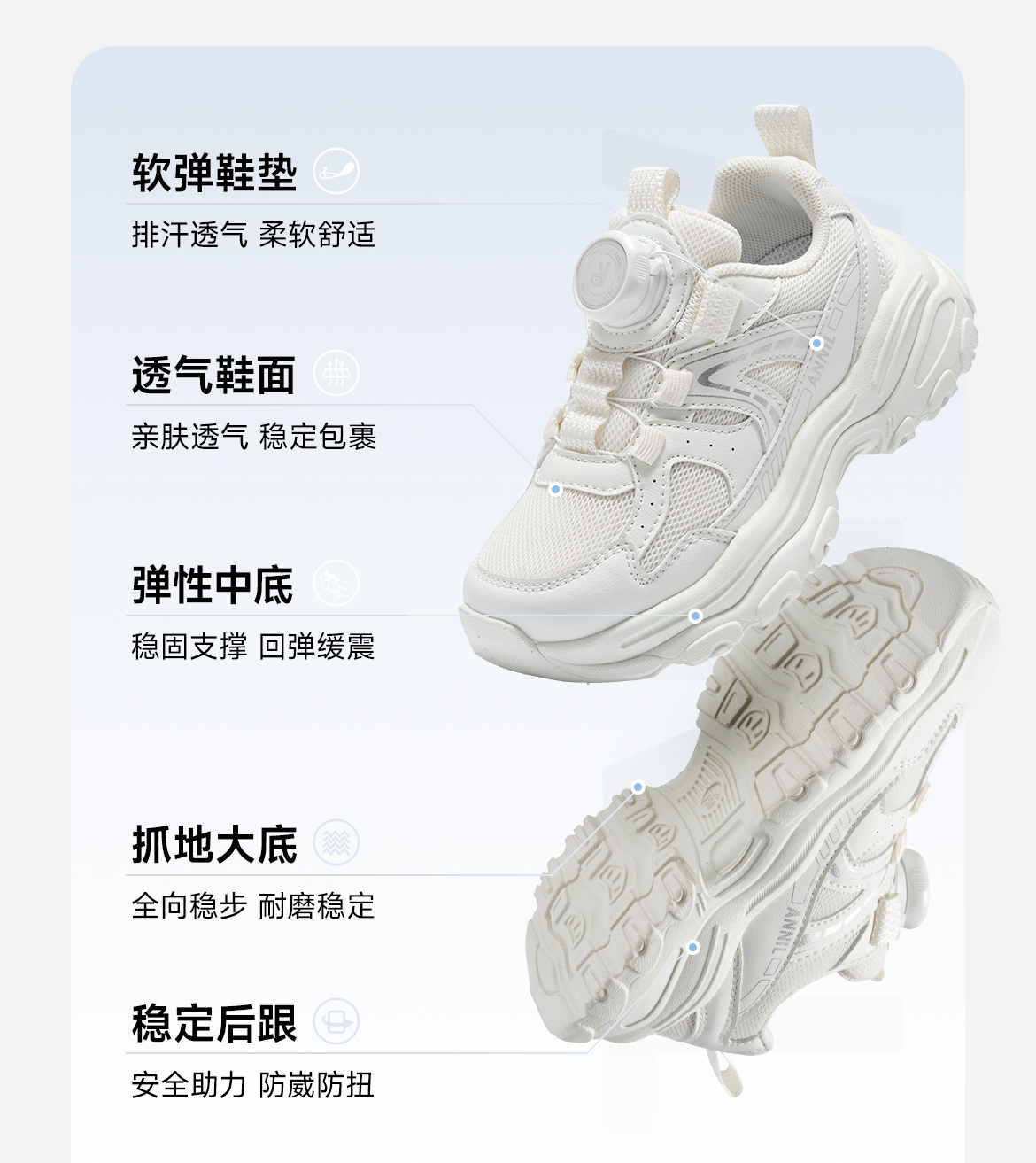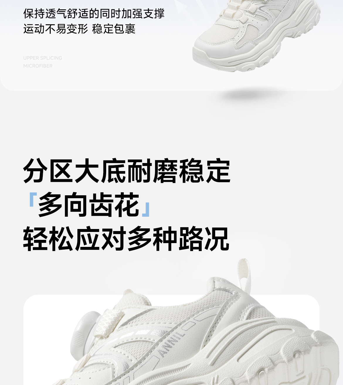 ANNIL/安奈儿童鞋男女童白色运动鞋春季学生小白鞋皮面老爹鞋HM6105813
