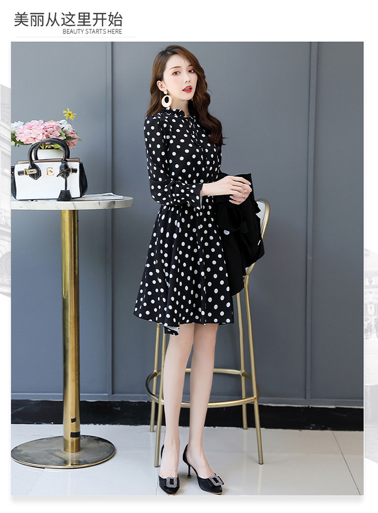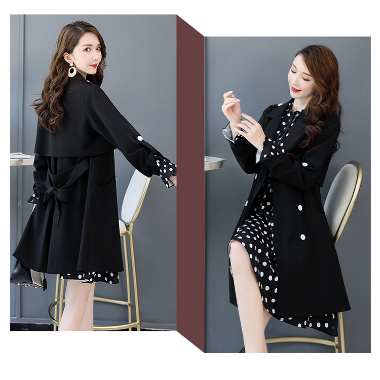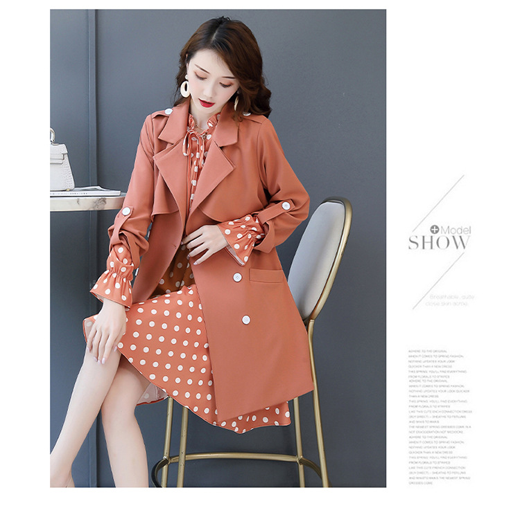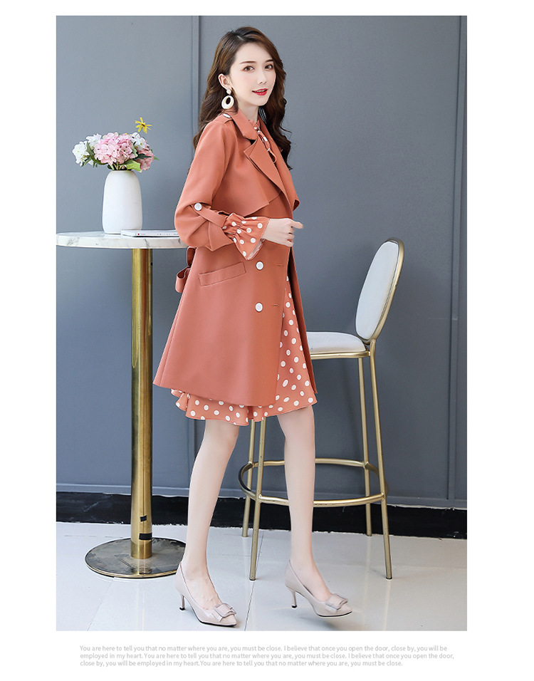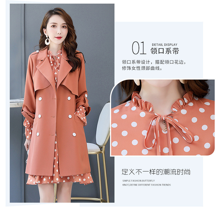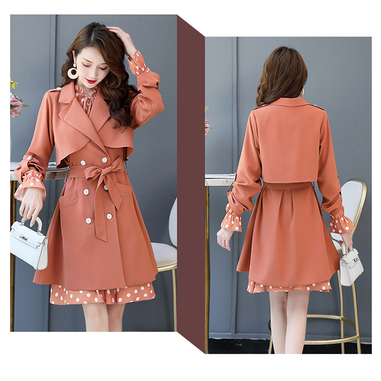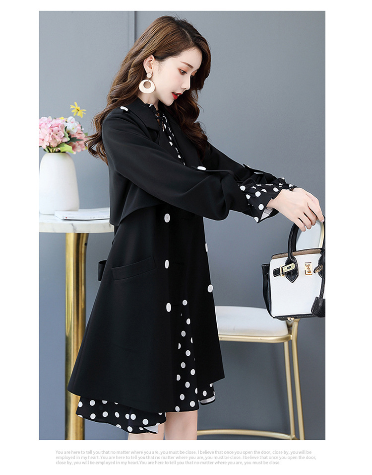 WZNH-WG99629秋季新款韩版时尚气质优雅风衣波点连衣裙两件套