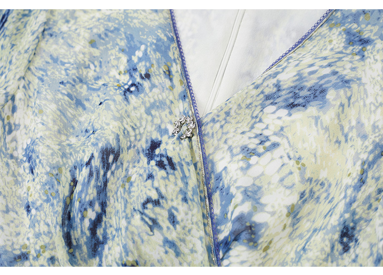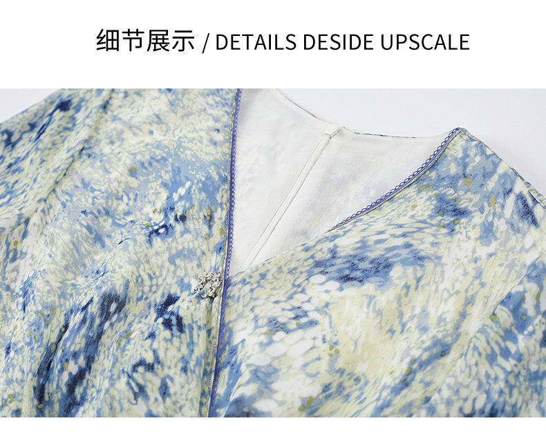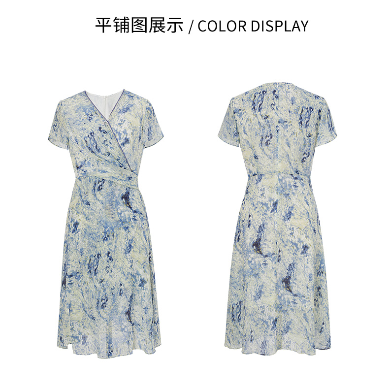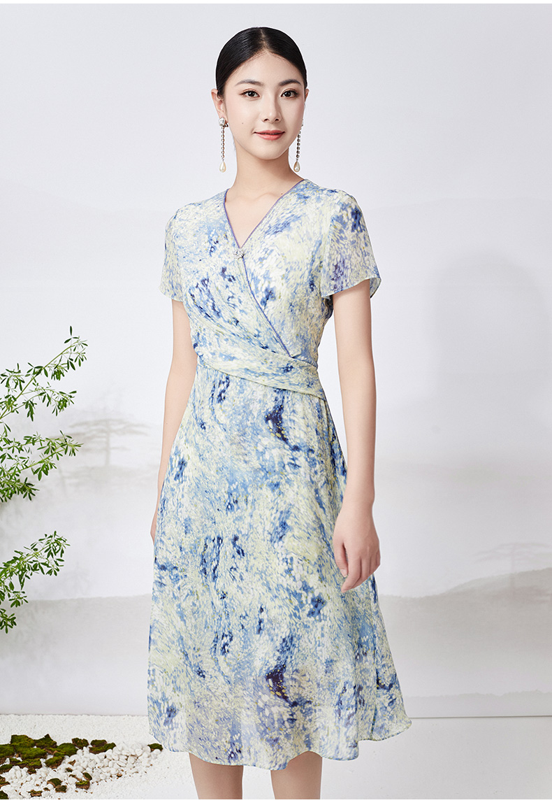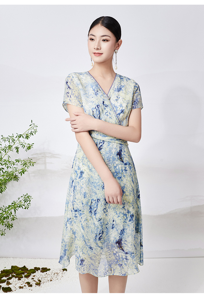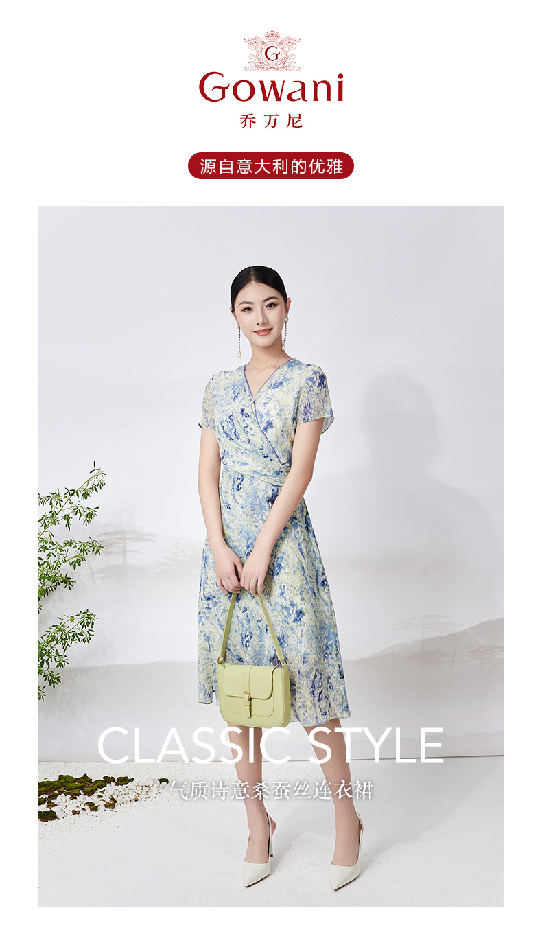 乔万尼真丝连衣裙100%桑蚕丝法式V领收腰气质ET2E299