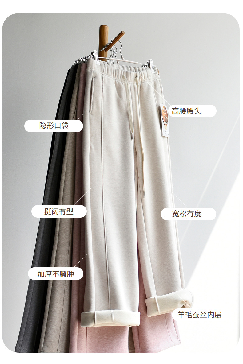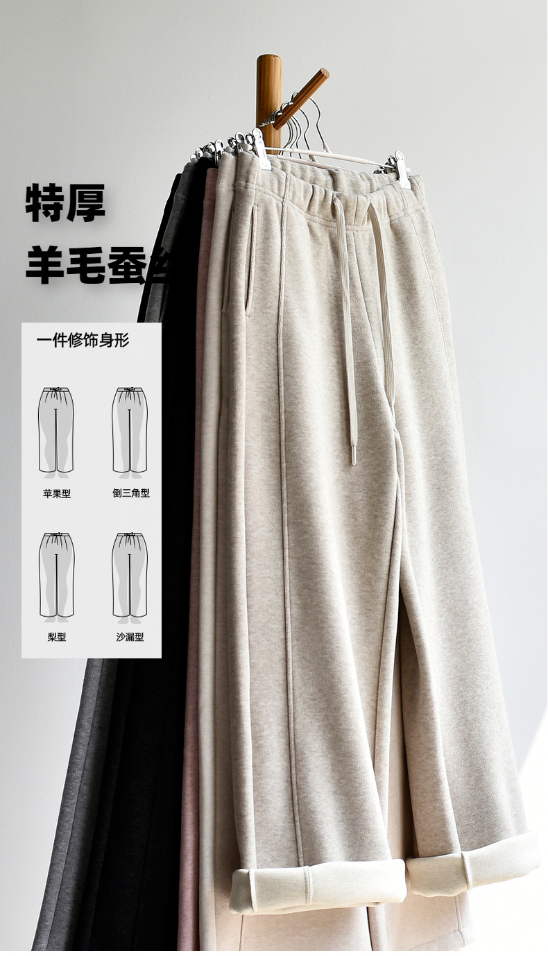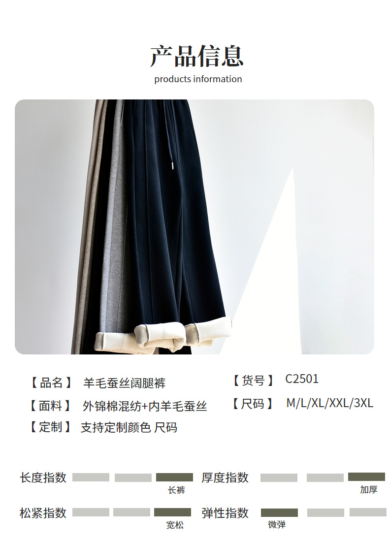 丁摩 【特厚羊毛蚕丝】800克羊毛蚕丝加绒加厚女装保暖休闲阔腿裤子5ZF-1287
