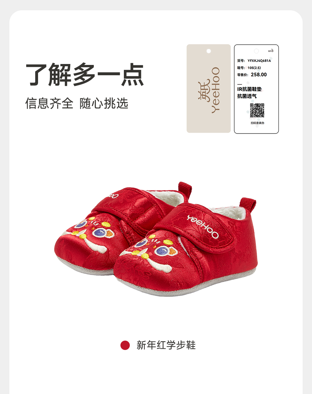 【商场同款】英氏儿童鞋子新年喜庆小宝宝鞋子秋冬保暖加绒鞋子