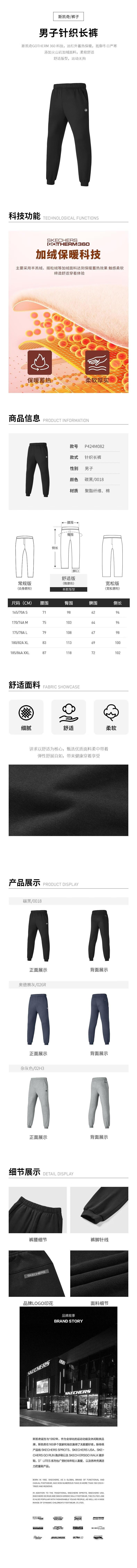 Skechers斯凯奇 男针织长裤 P424M082-02H3