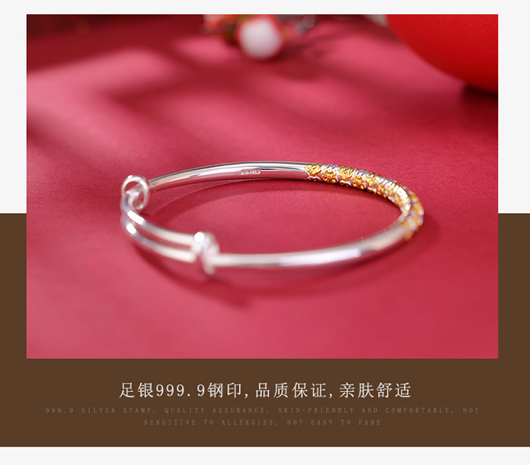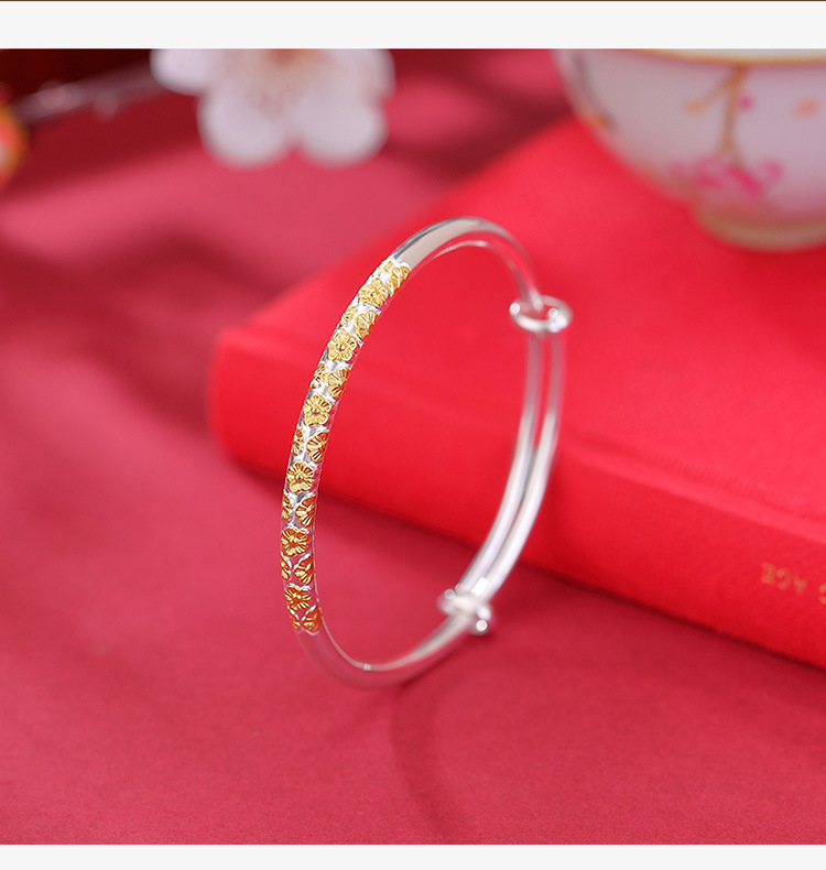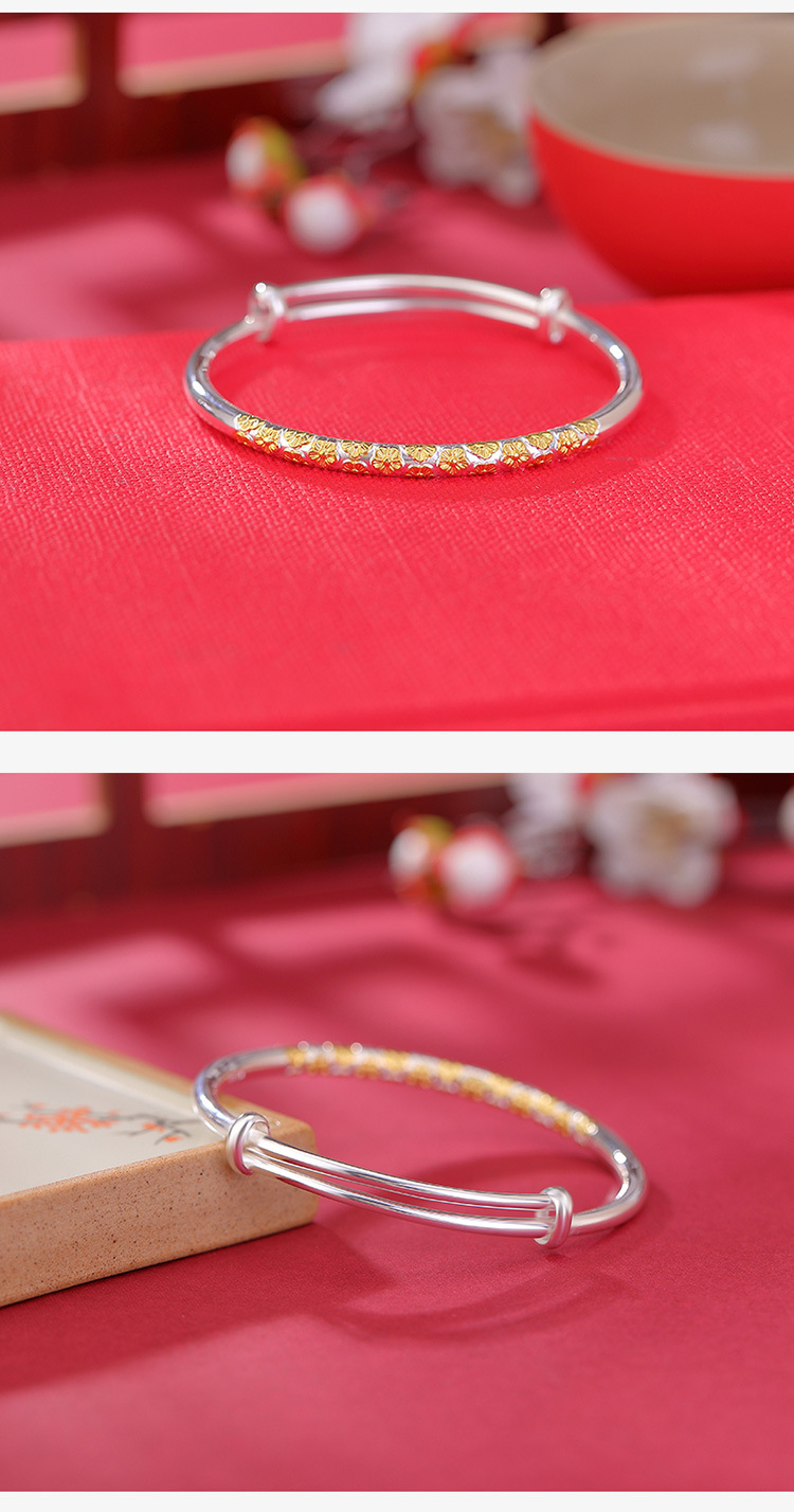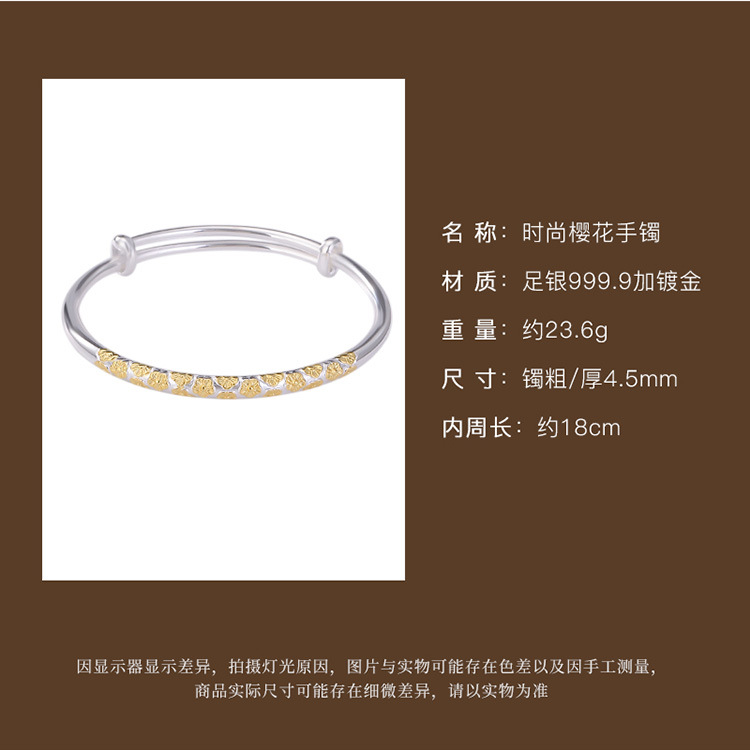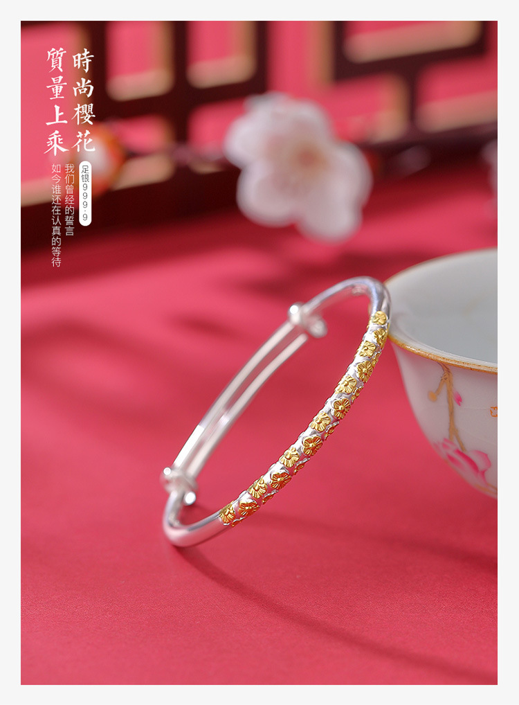 S999.9足银镀金亮银分色樱花亮面,推拉气质简约百搭精致手镯CW-SZ01983