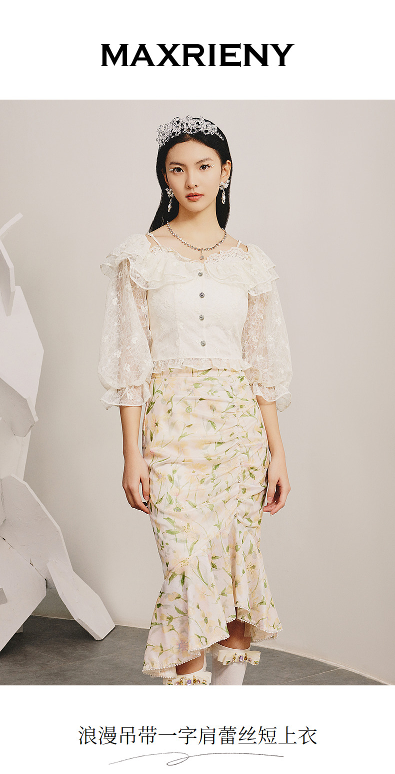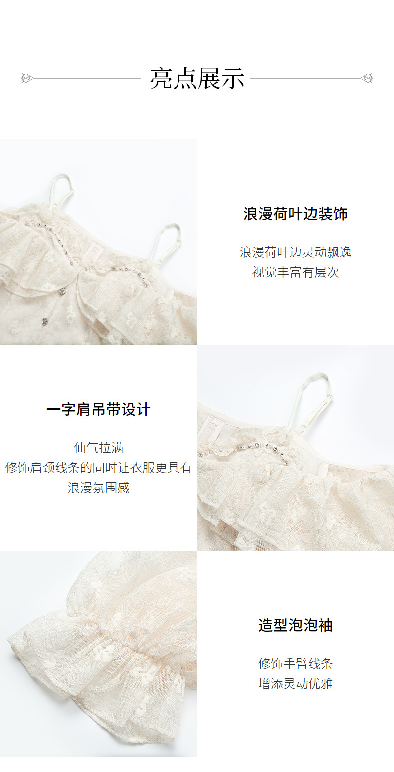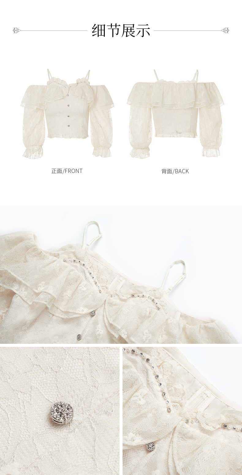 MAXRIENY浪漫吊带一字肩蕾丝衫上衣小衫春(货号:MC88TP081)