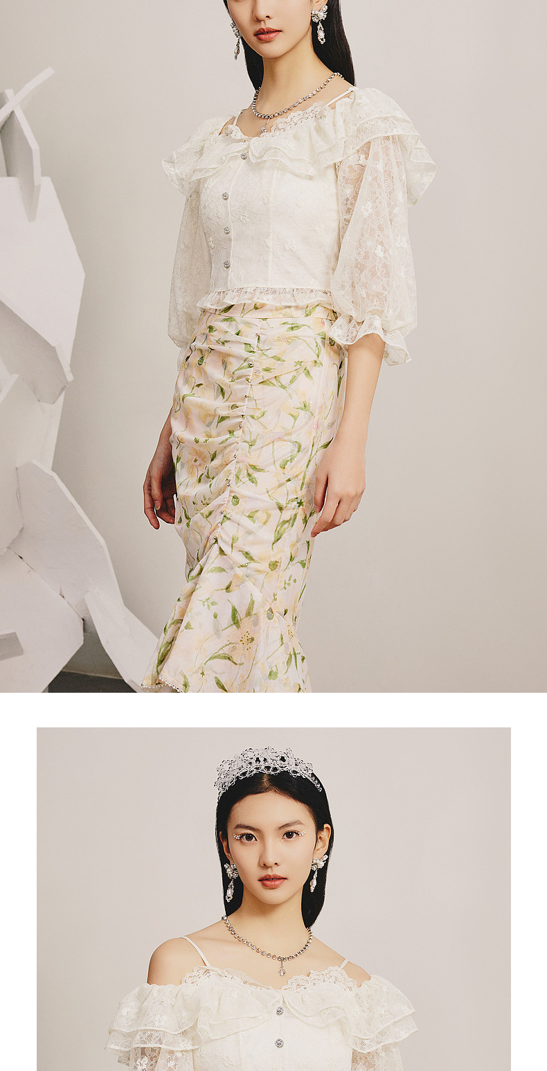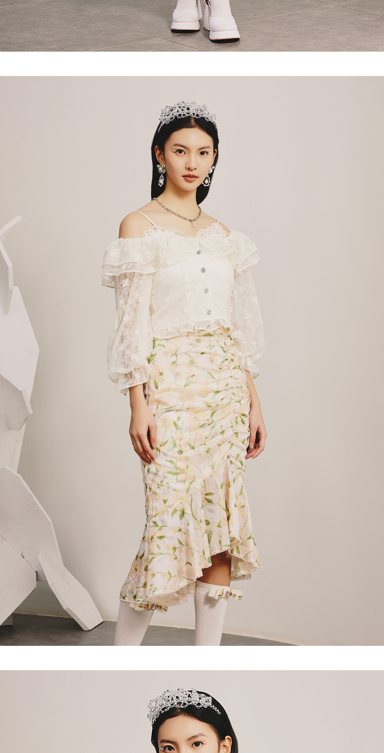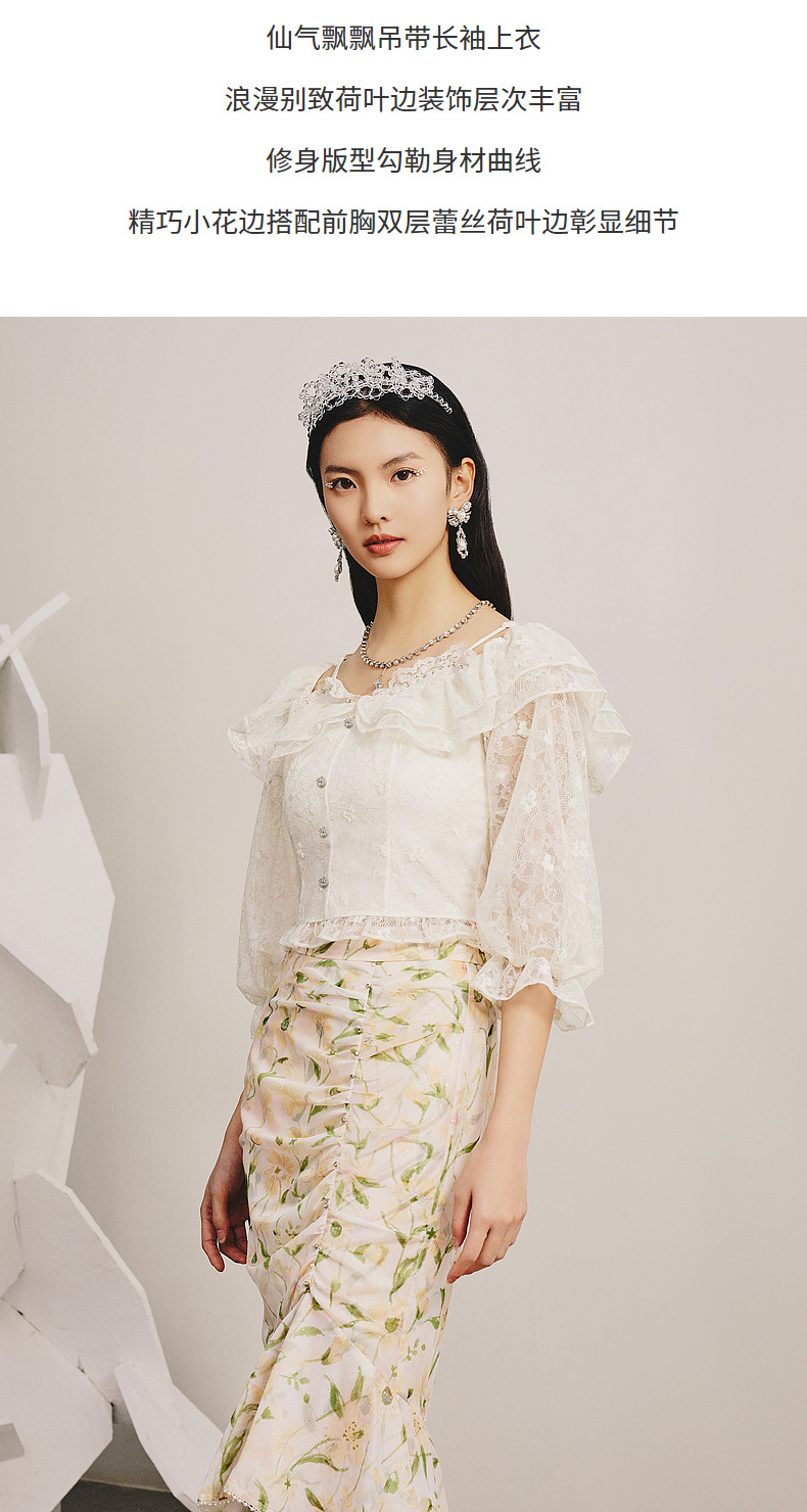 MAXRIENY浪漫吊带一字肩蕾丝衫上衣小衫春(货号:MC88TP081)