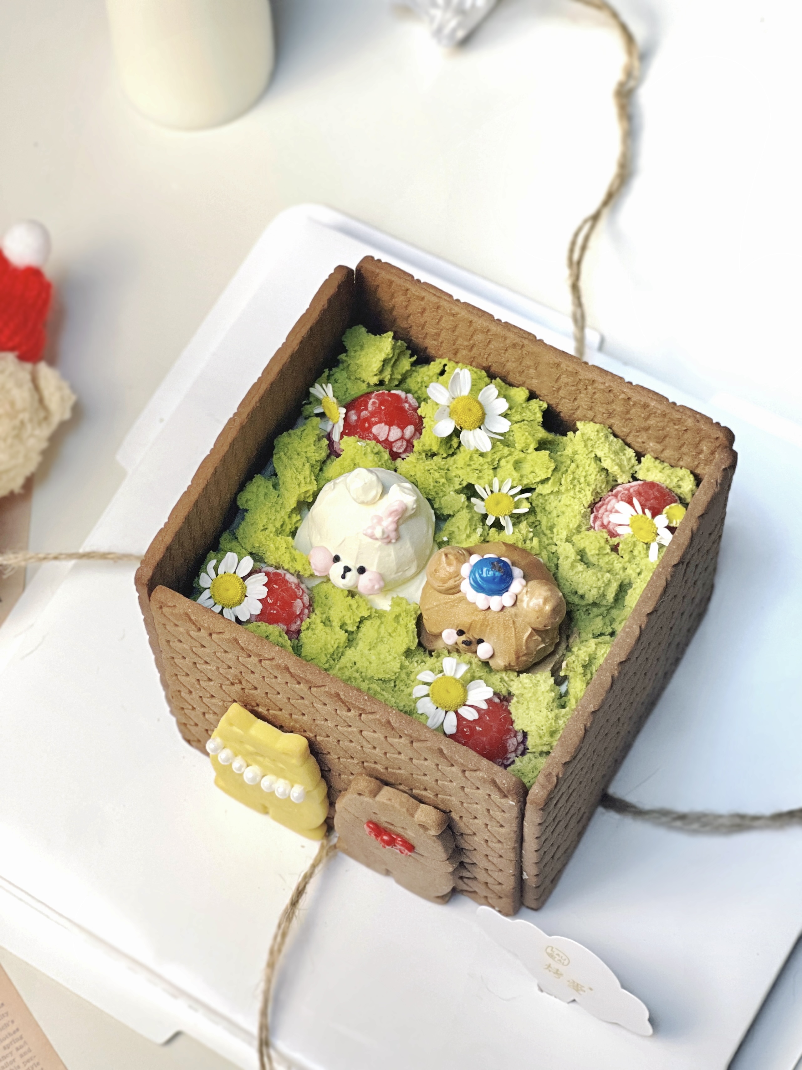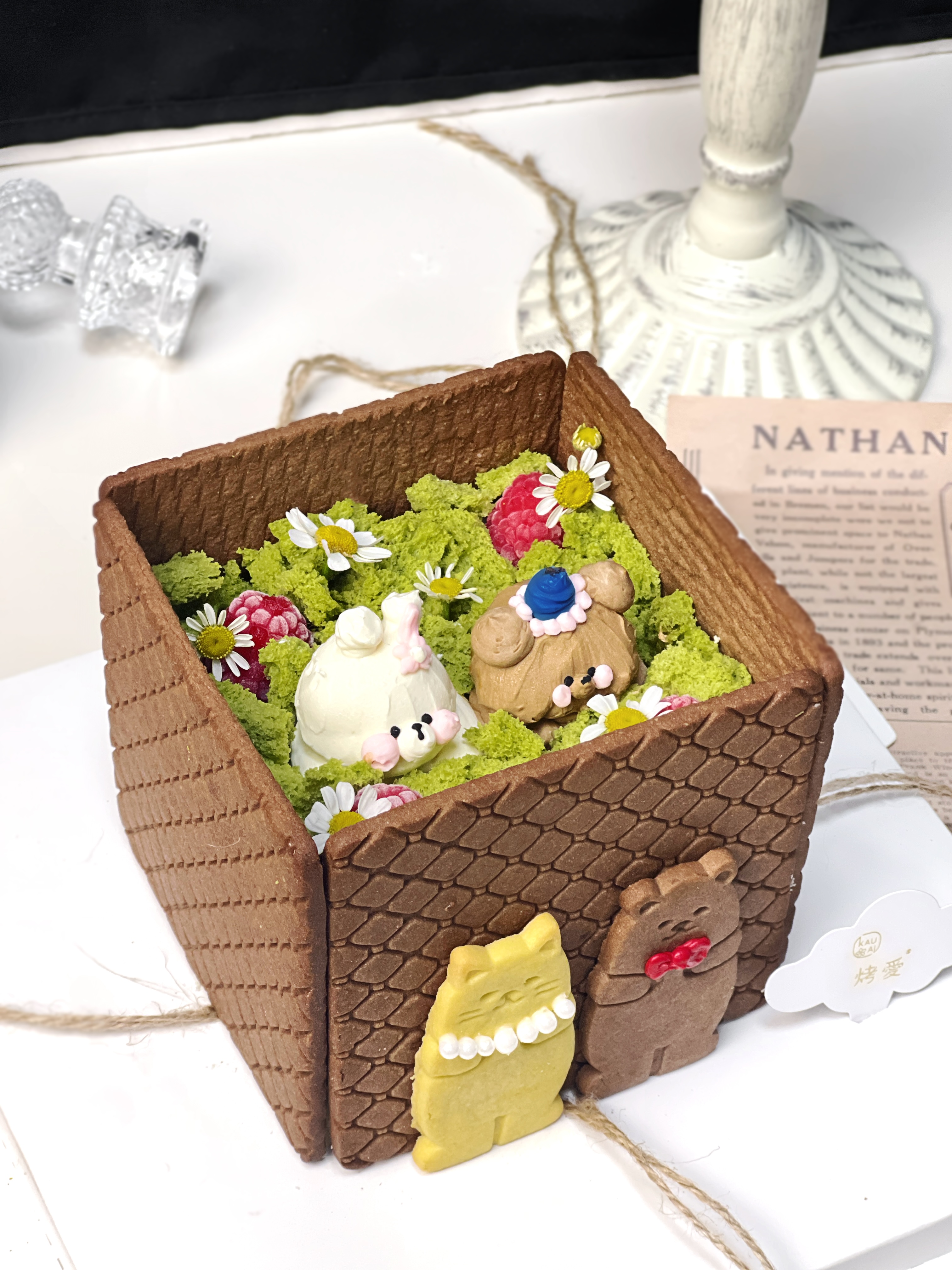 烤爱·创意生日蛋糕系列·小熊饼干盒子蛋糕·奥利奥碎脆脆片夹心覆盆子·下午茶【仅限深圳 同城配送】