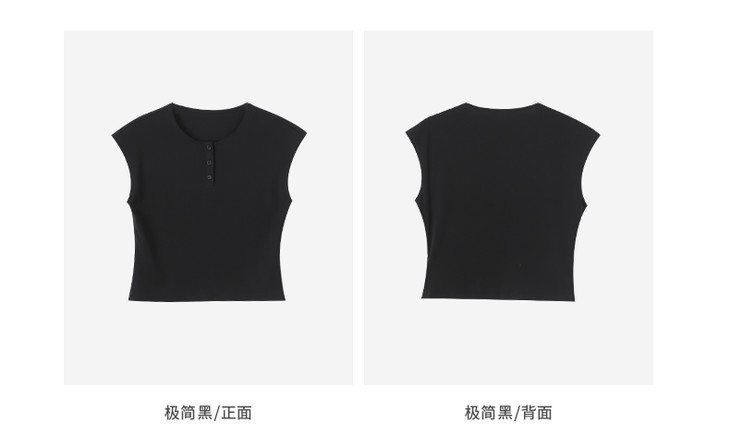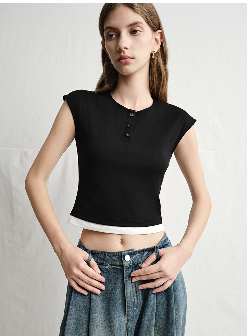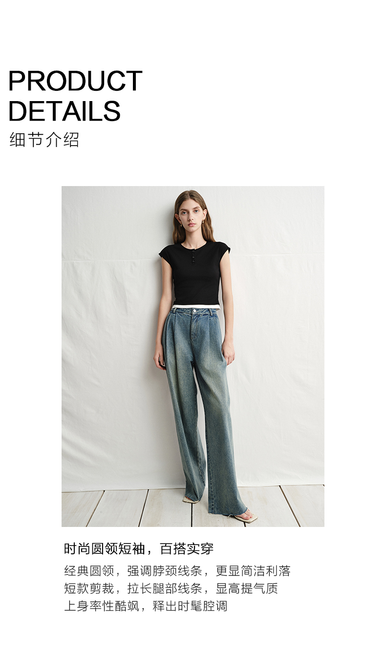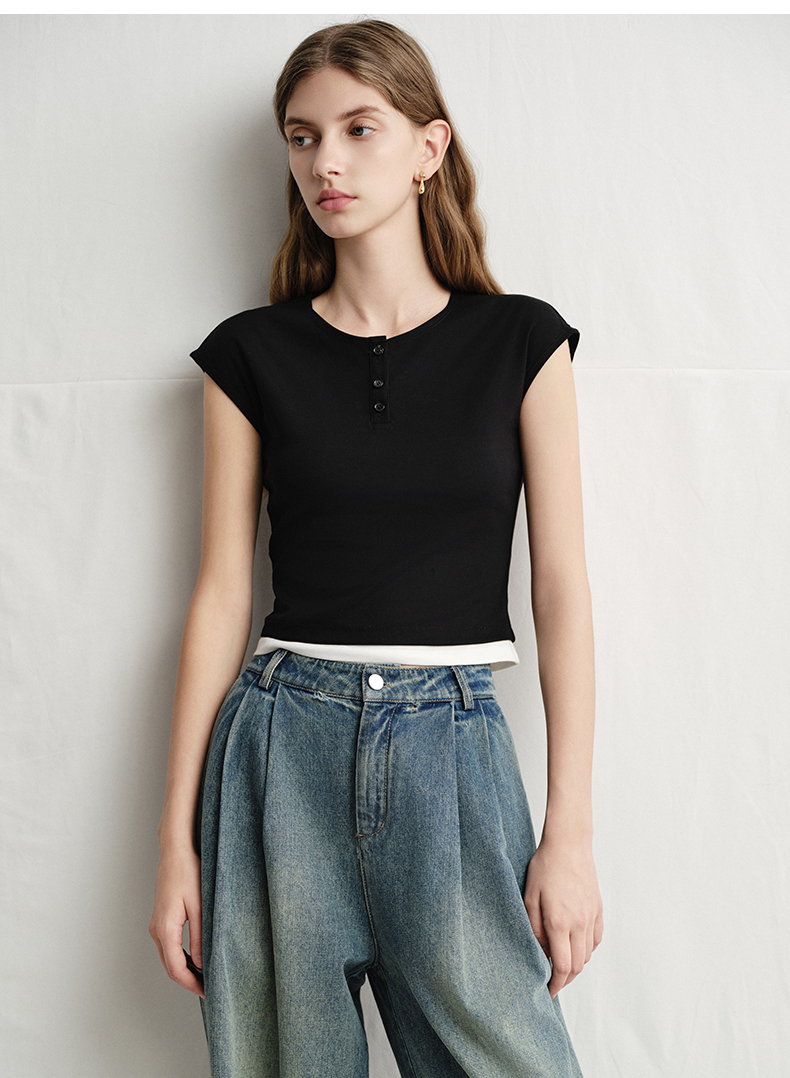 VIMAGE纬漫纪黑色短款美式辣妹简约百搭修身短袖T恤2025夏季新款V2302905