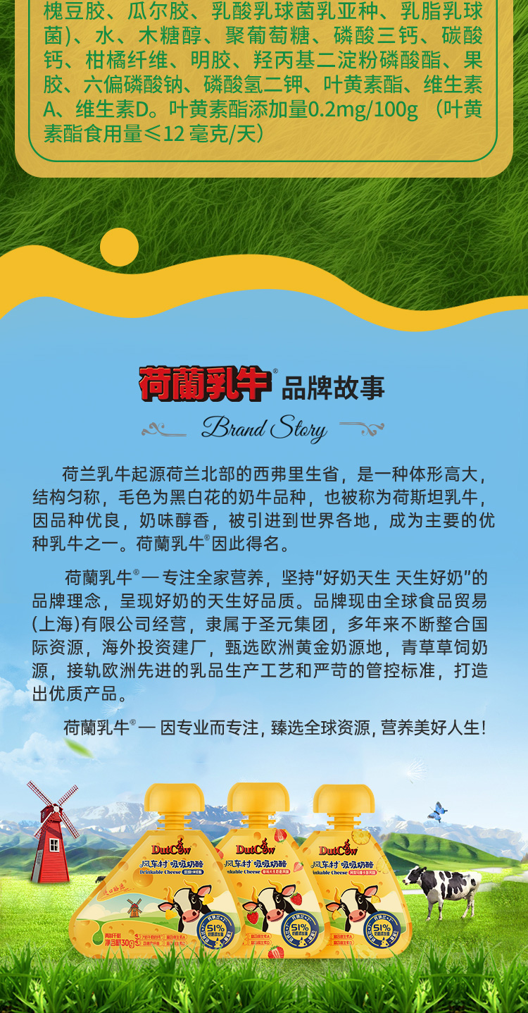 - 荷兰乳牛品牌于1990年进入中国,相伴31年始终致力于为更多家庭奉上优种荷兰乳牛带来的营养与美味。秉承“珍选至纯营养,传承经典醇香”的理念,打造一个覆盖全人群、多品类、高品质的国际化品牌。