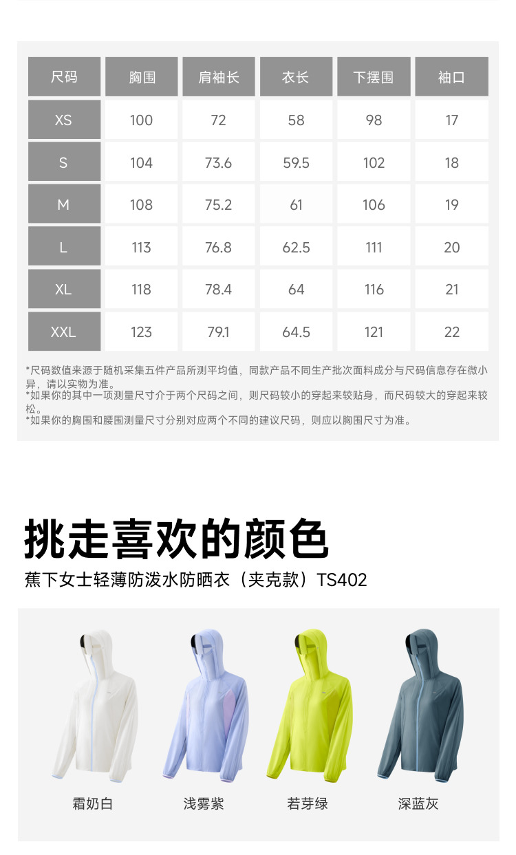 【25年新品】蕉下女士轻薄防泼水防晒衣(夹克款)TS402
