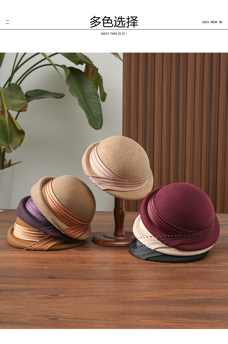 ALBB-布塔贝雷帽女秋冬季英伦羊毛蓓蕾帽时尚百搭显脸小百搭小礼帽1310