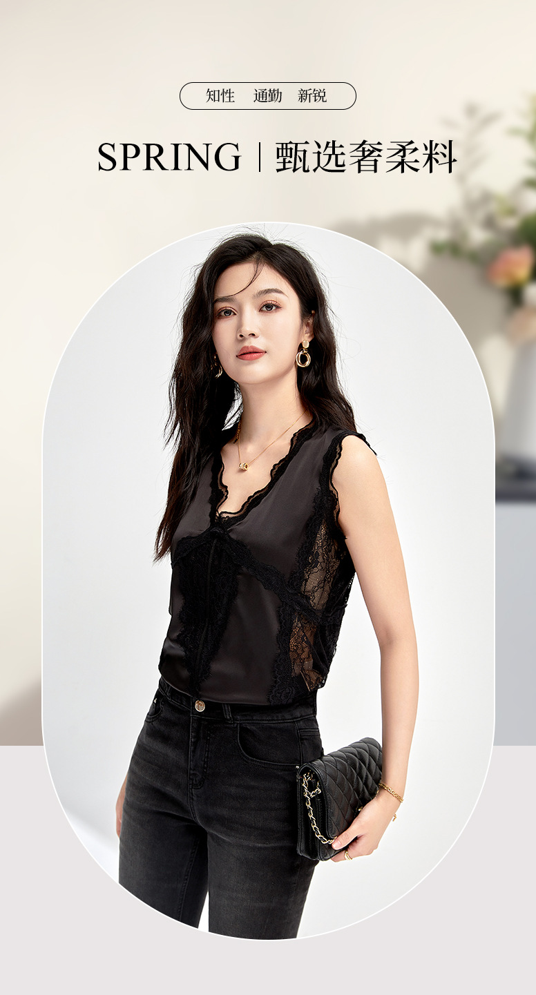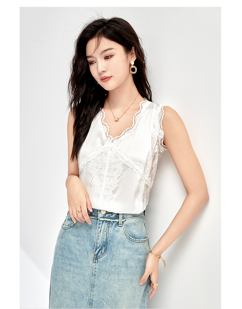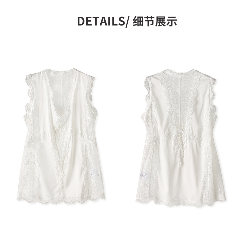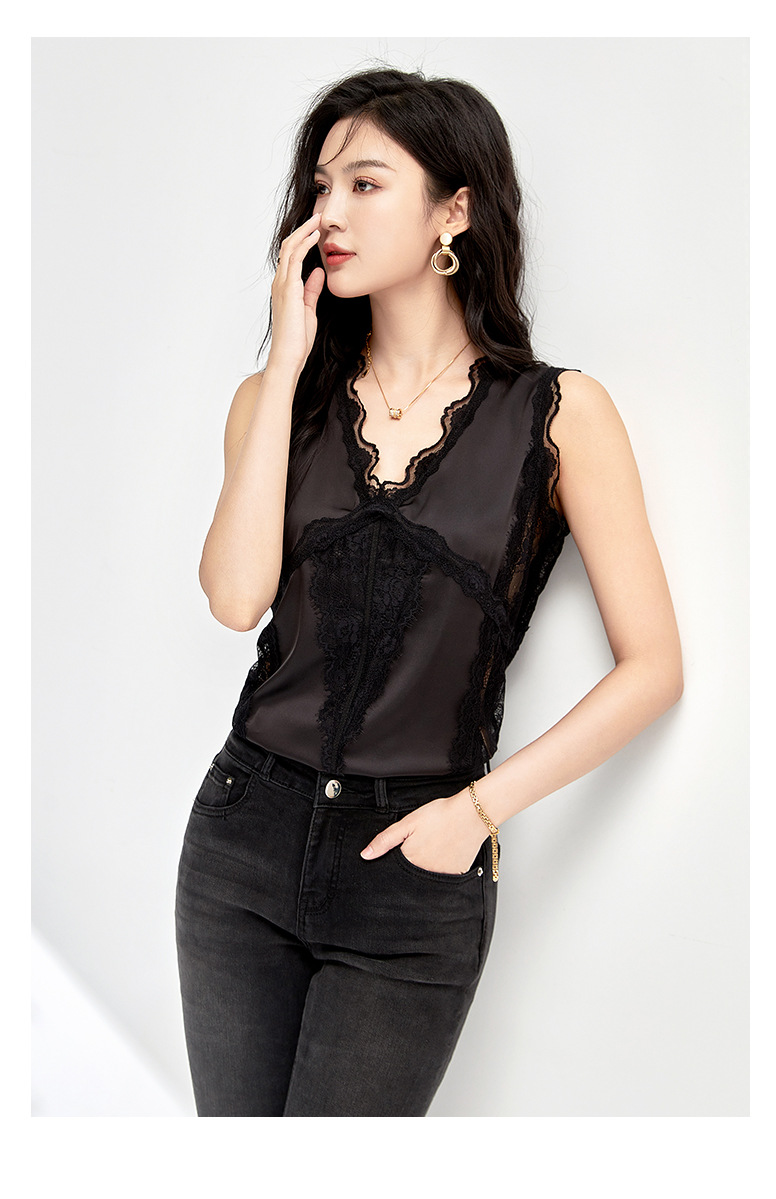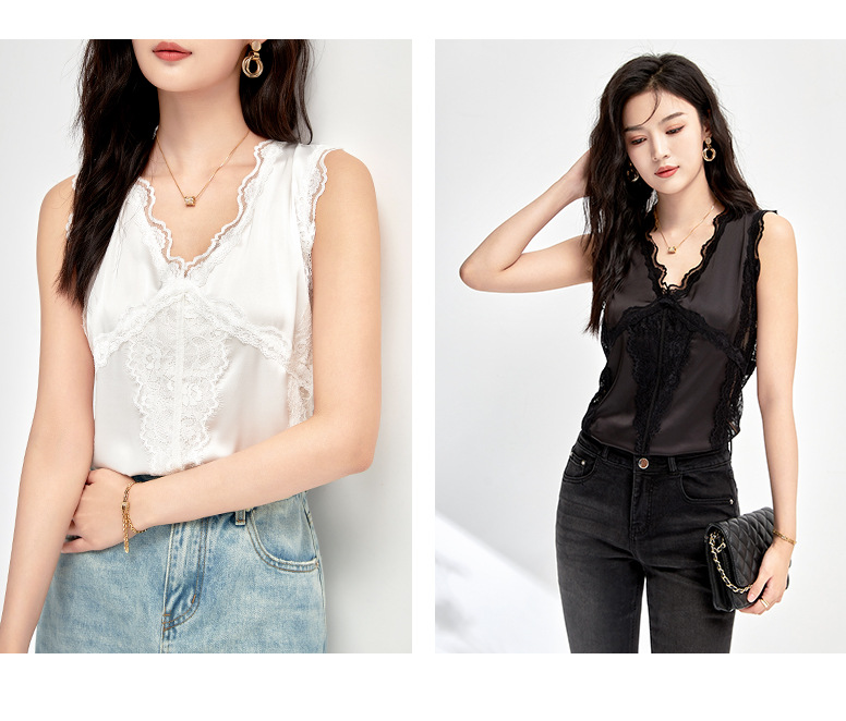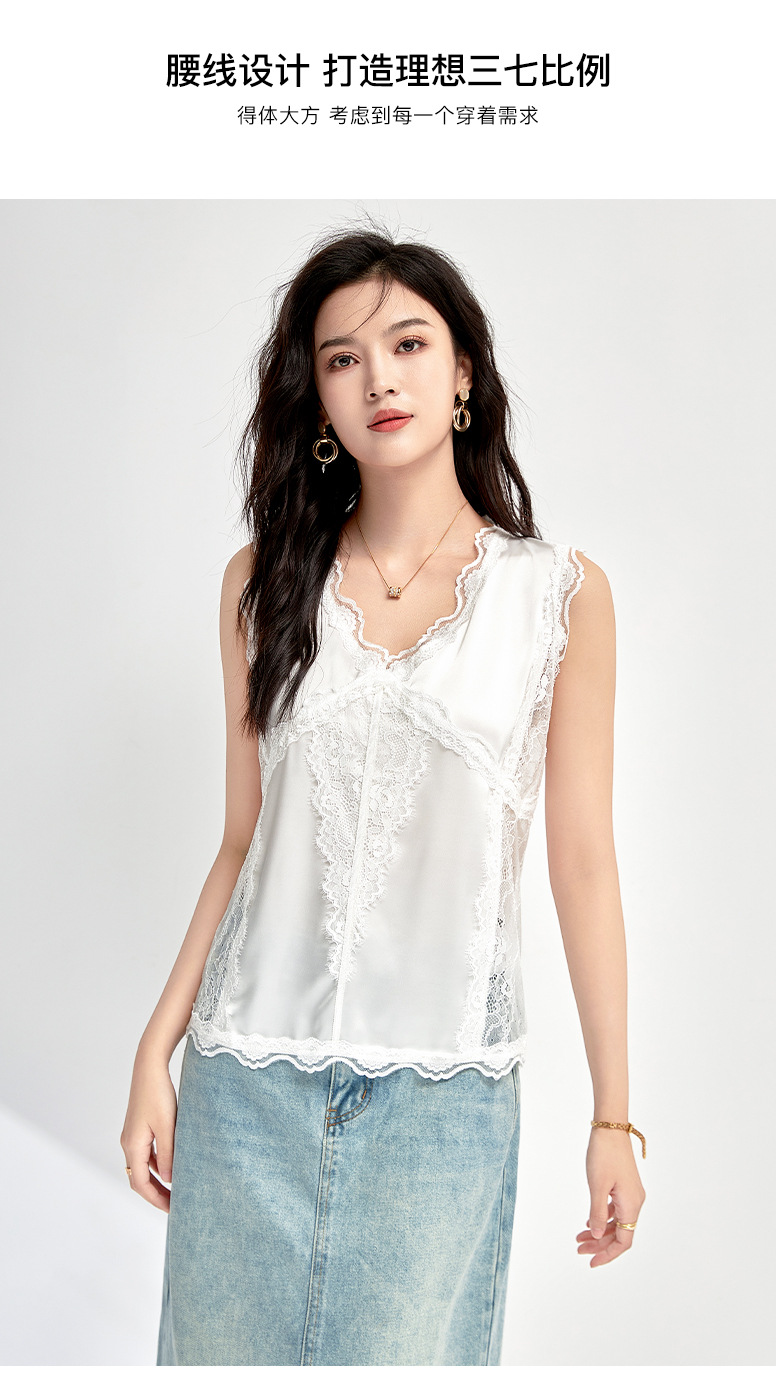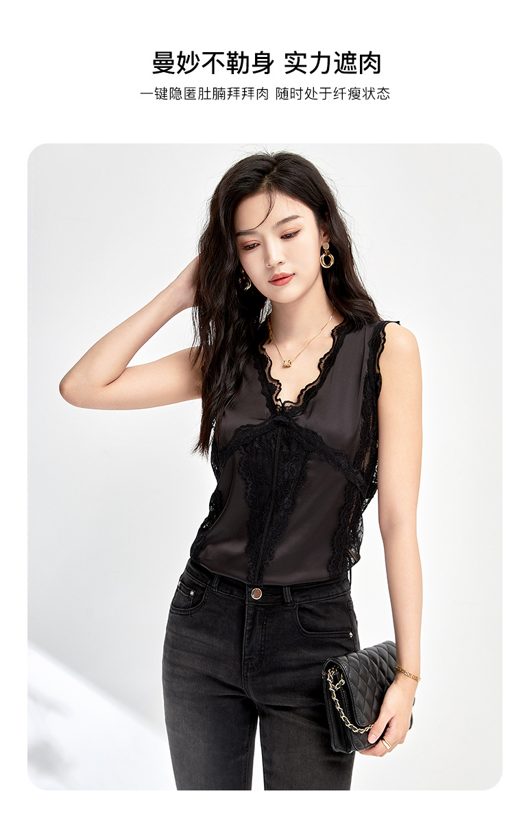 缎面蕾丝拼接轻奢气质,显瘦百搭打底无袖背心WLZD-2409204