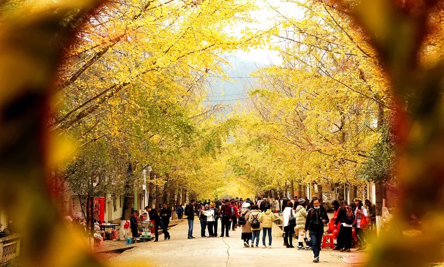 芳坑的黄金大道是最佳拍照点之一,笔直的银杏,金黄的树叶,飘散着独具生态特色的银杏气韵。