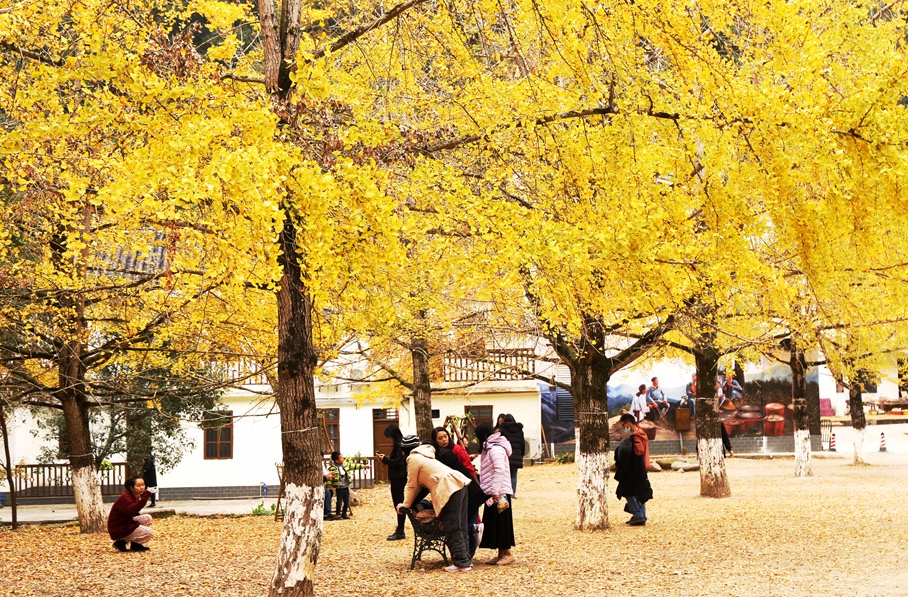 另一推荐打卡点是小芳坪,小芳坪这里的银杏更加矮小密集,更适合人像拍照!