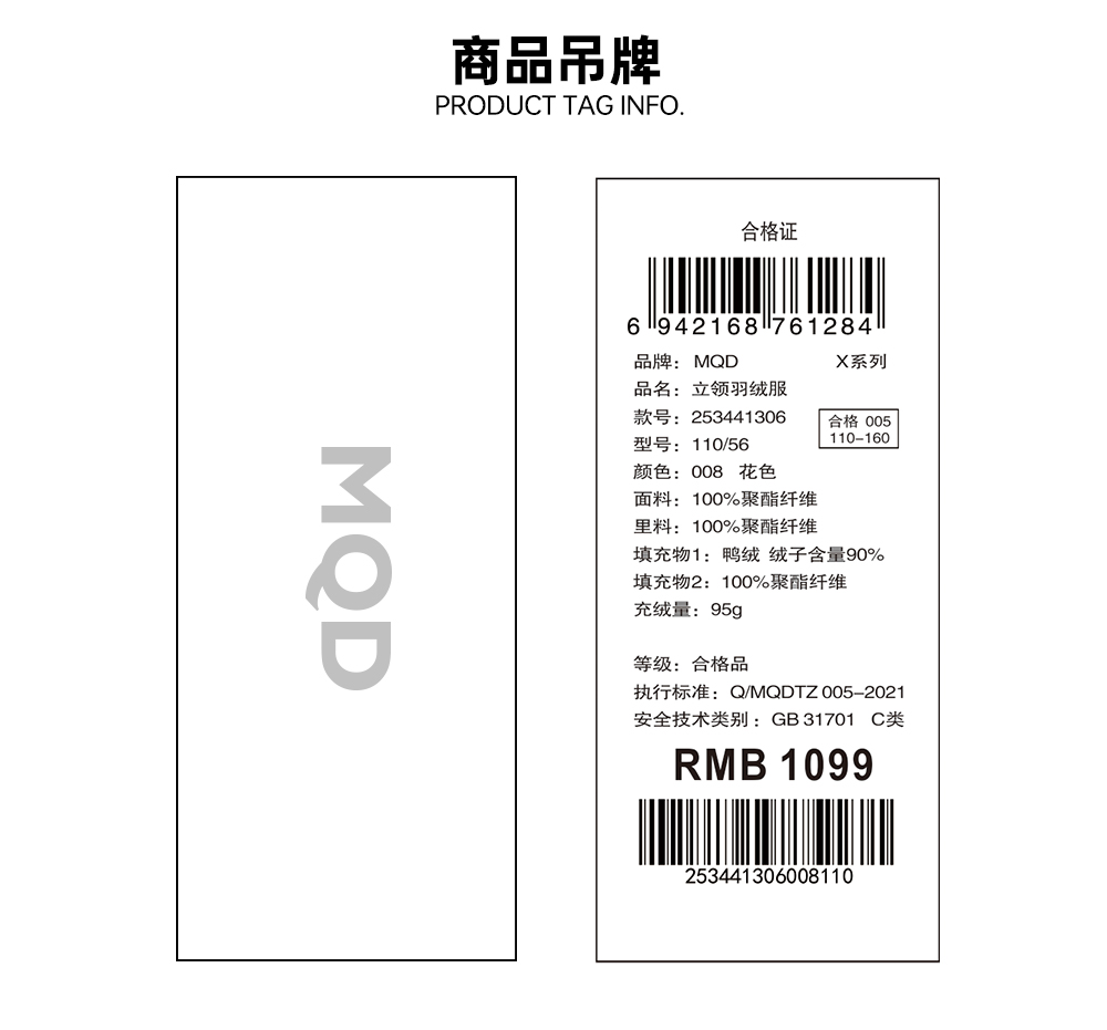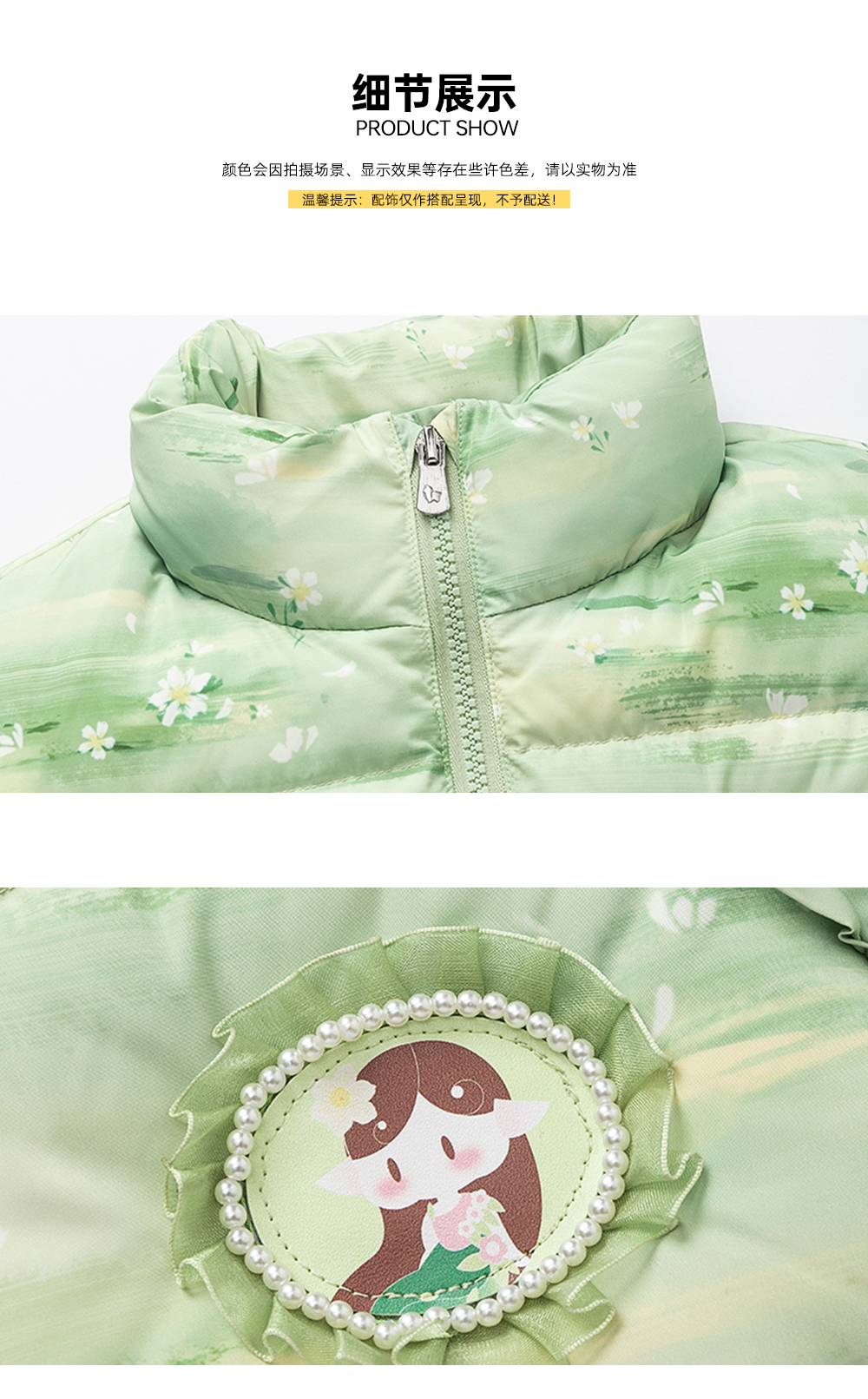 【秒1】【MQD】女童冬季古典国风花版立领羽绒服