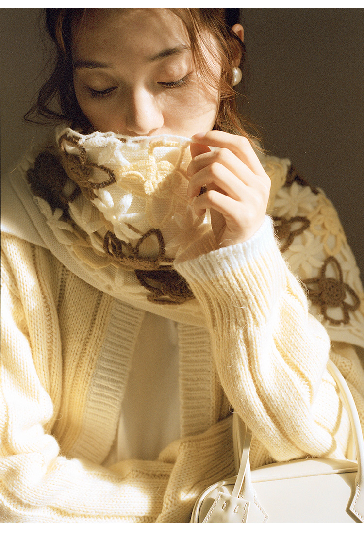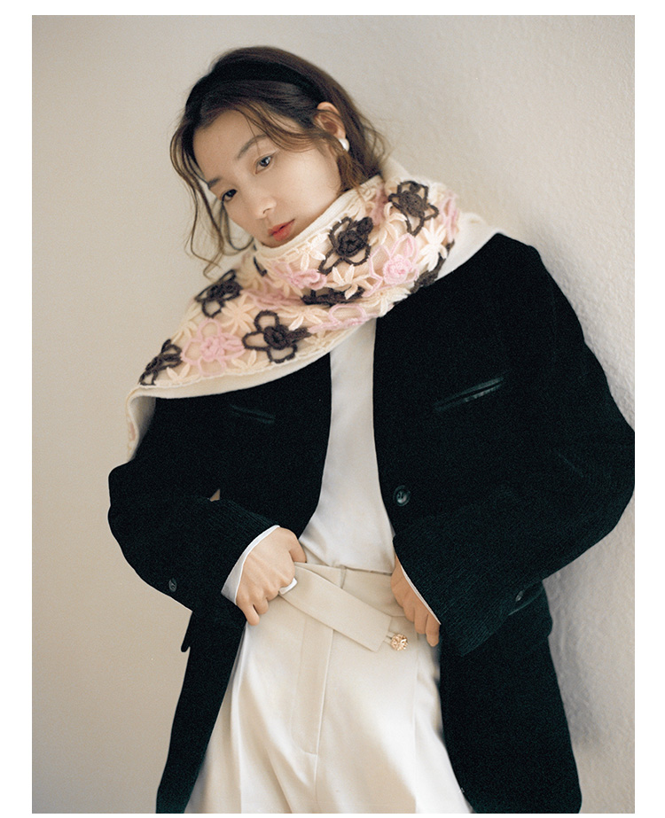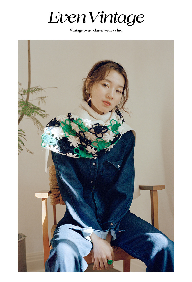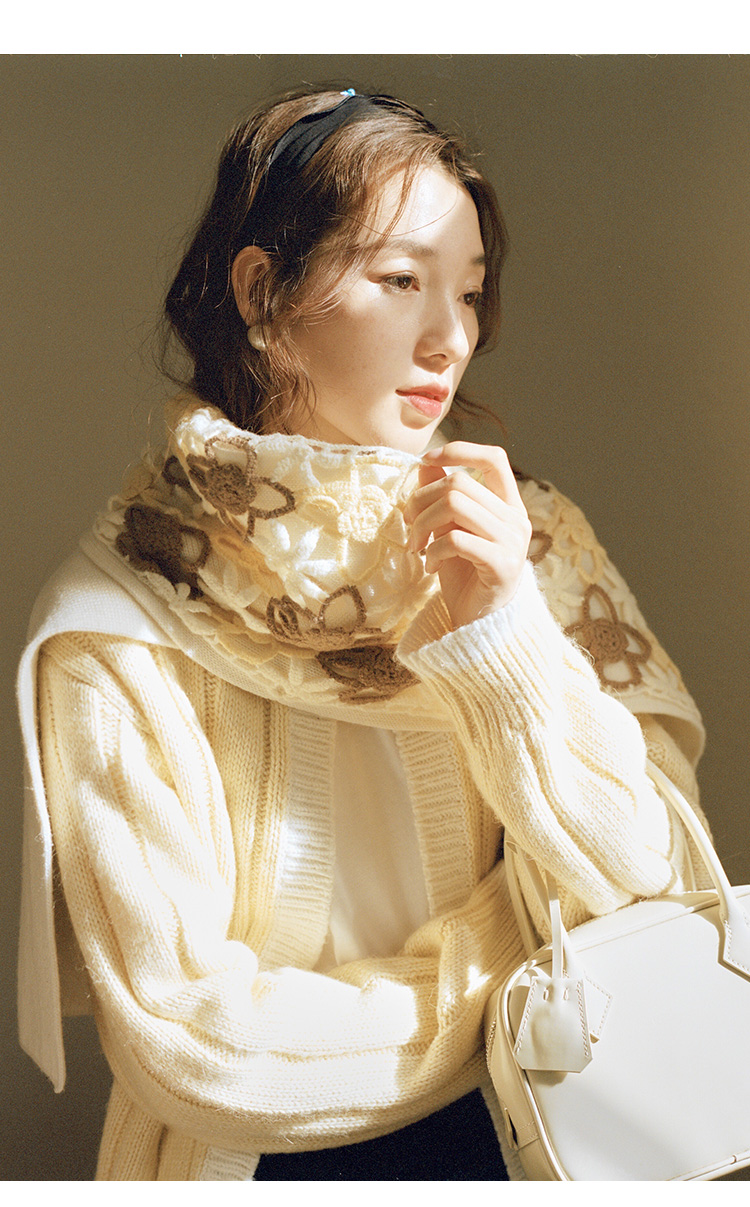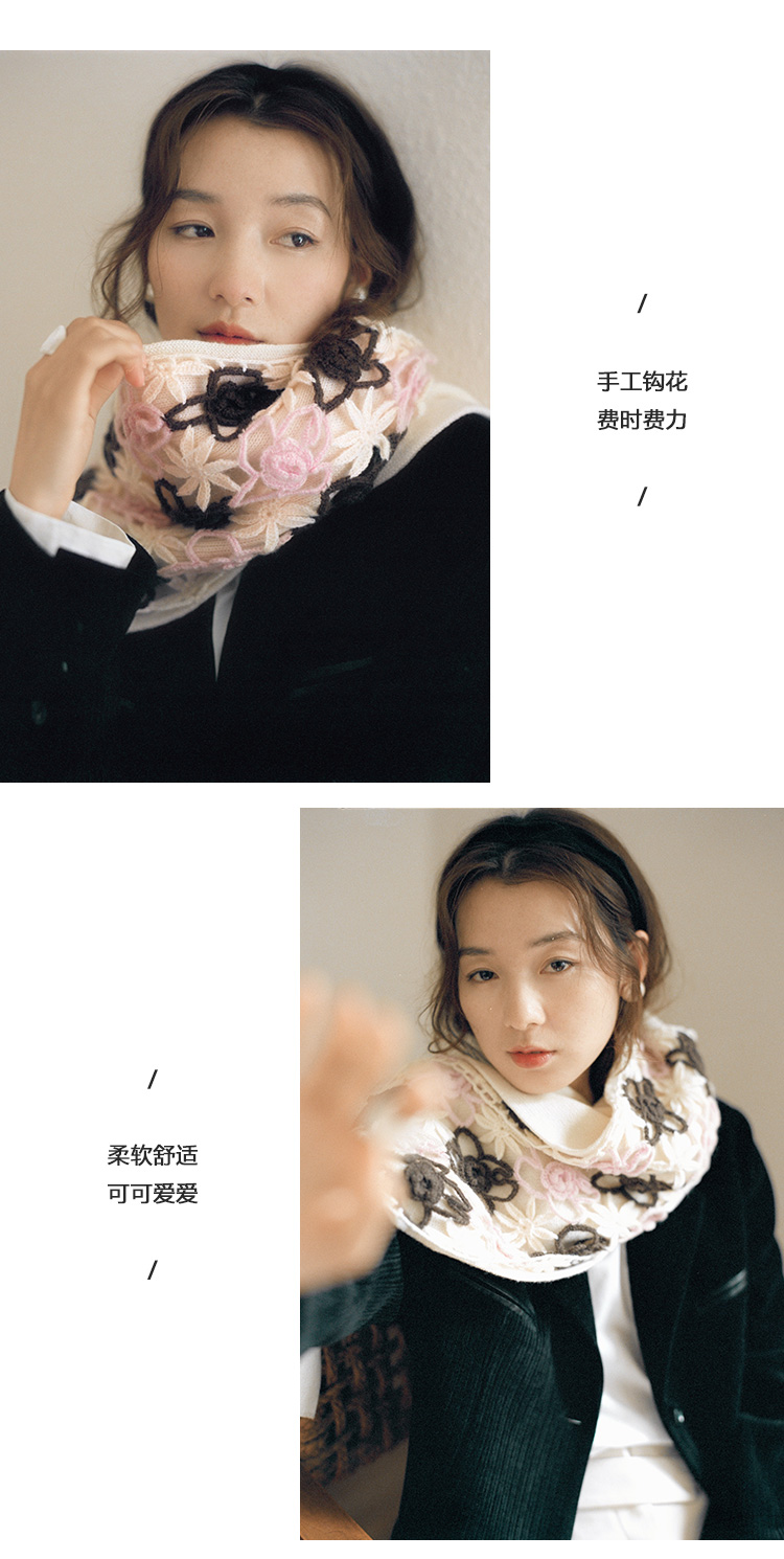 Even Vintage | 雾感马海毛手工钩花 柔软舒适围巾女秋冬保暖围脖