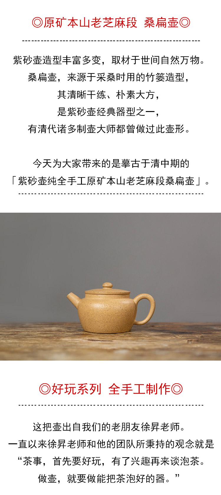 茶香记 紫砂壶 纯全手工 原矿本山老芝麻段 桑扁壶 古雅大气 砂质感强
