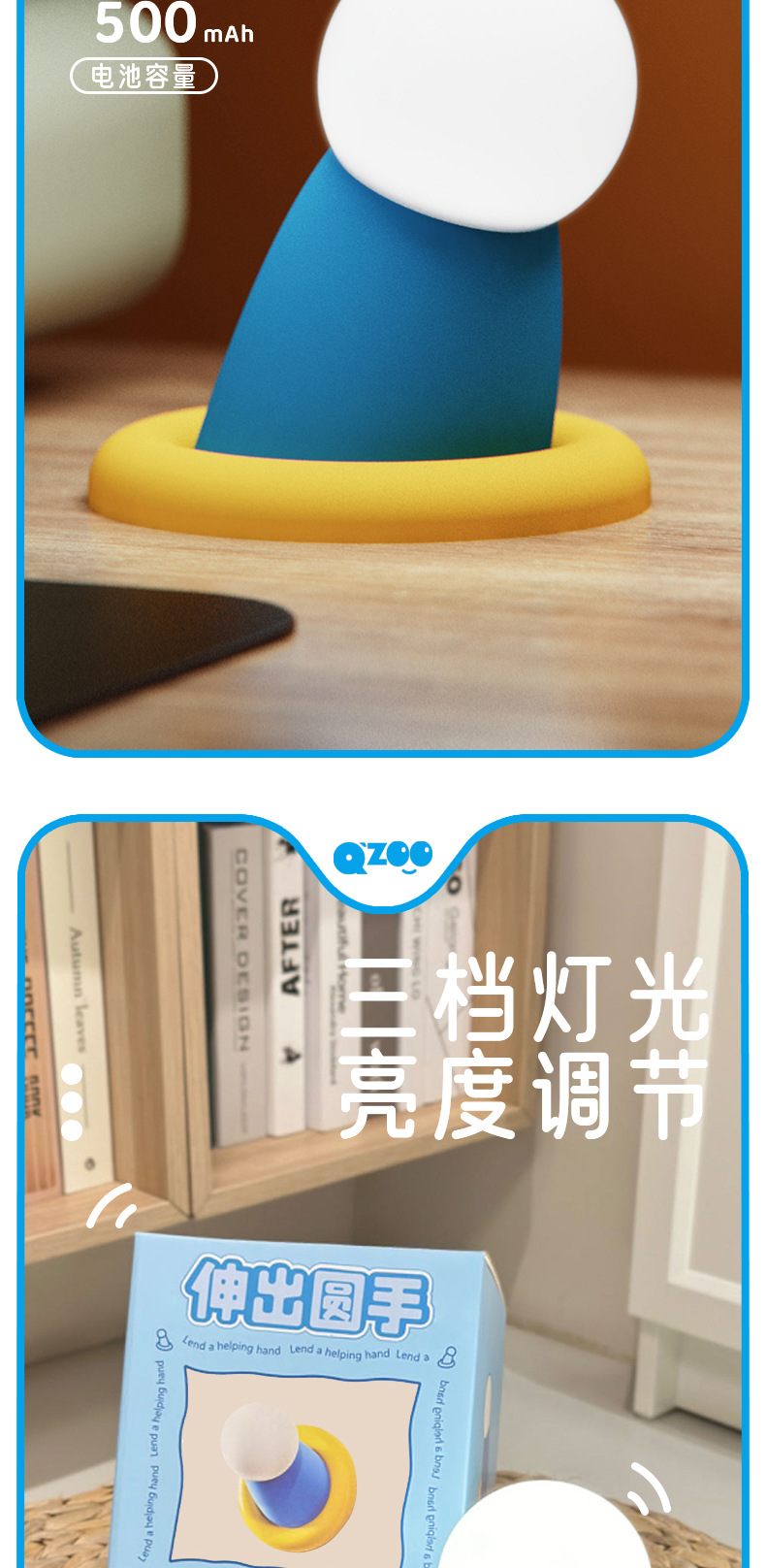可爱伸出圆手小夜灯硅胶拍拍灯 磁吸冰箱贴台灯桌面摆件 充电款卧室氛围灯