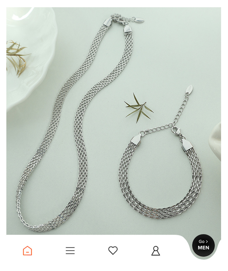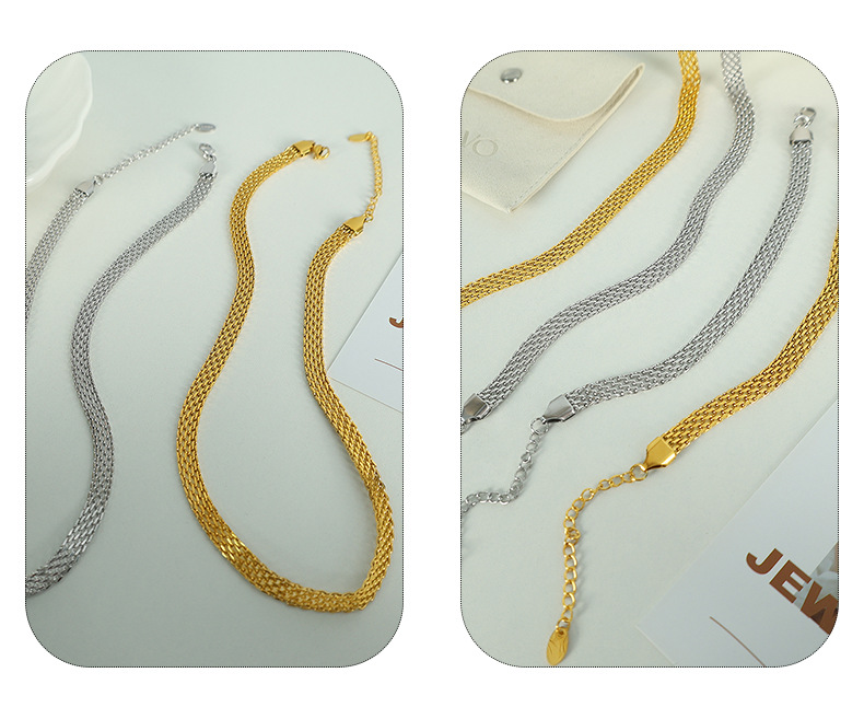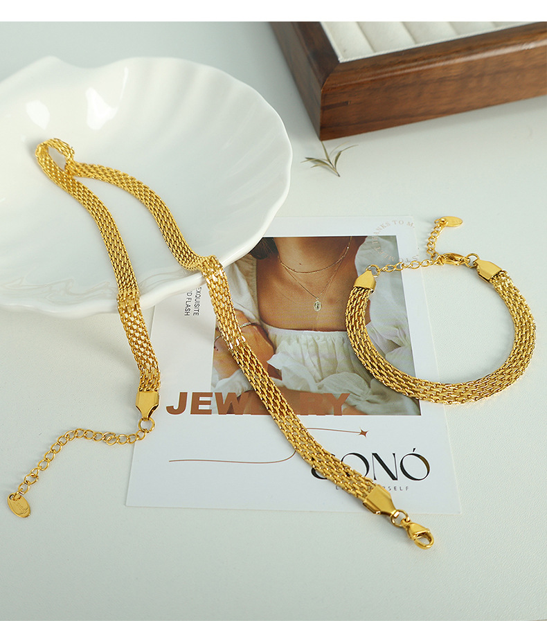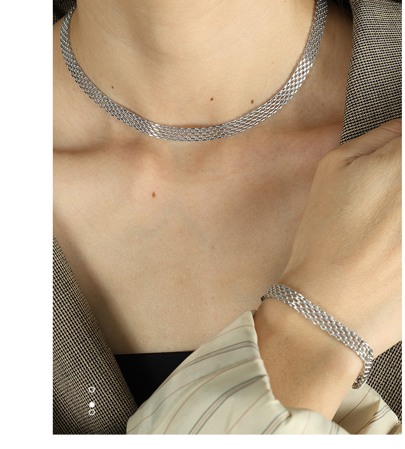 【网面锁骨链,百搭高级~】欧美简约镂空宽项链手链套装 ins风潮网面锁骨链 钛钢保色高级百搭-QQ