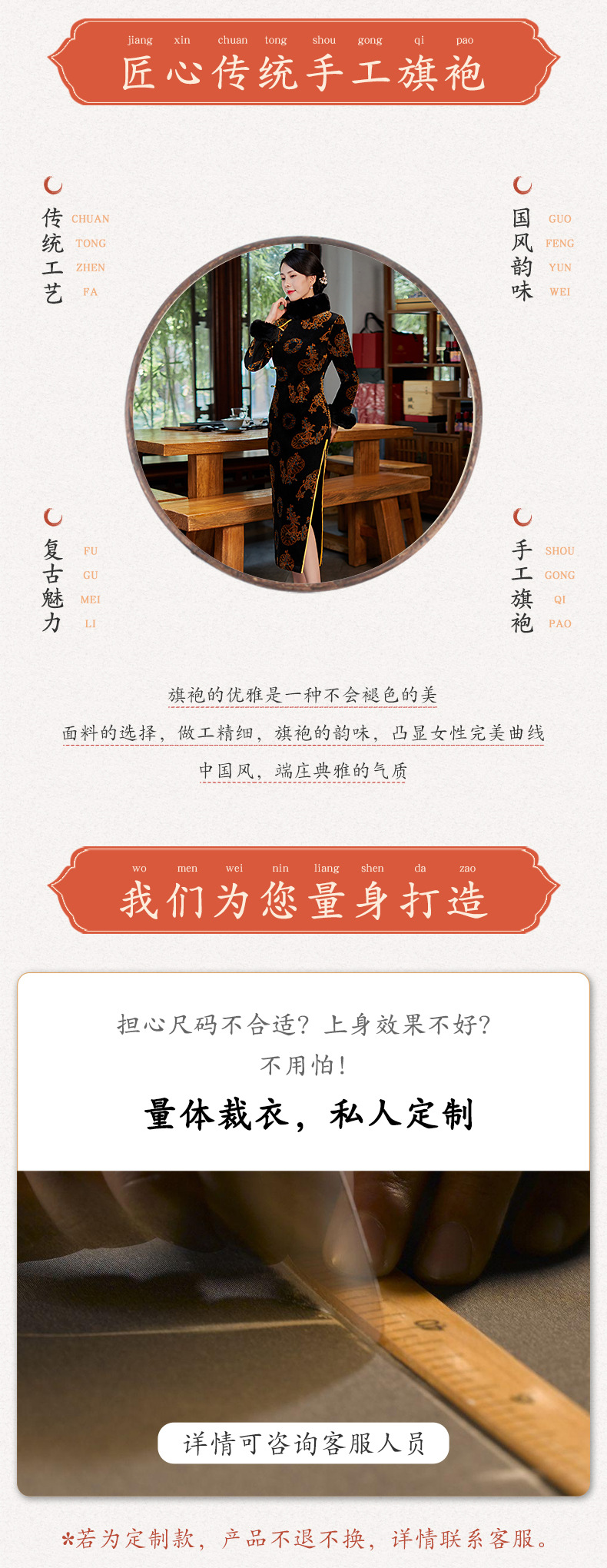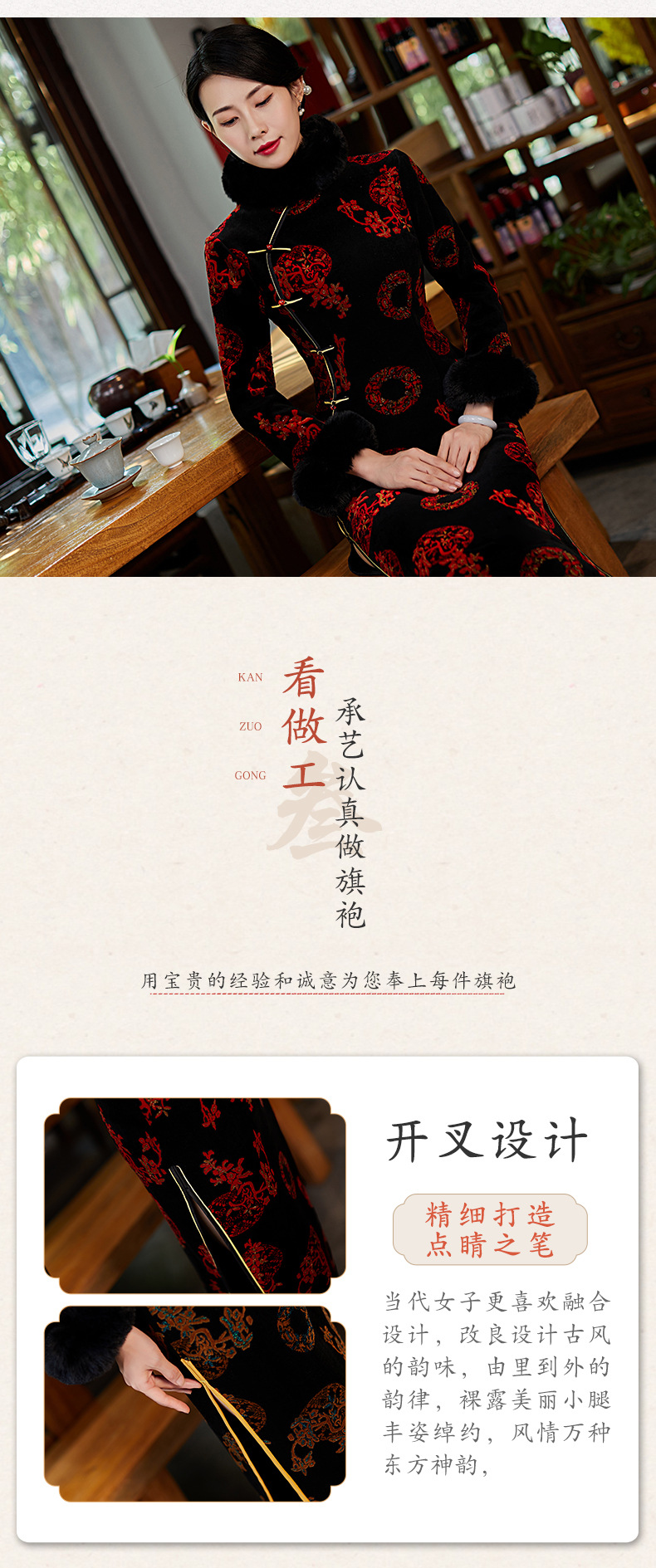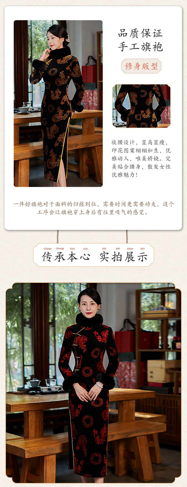 上海旗袍厂BJ-21100秋冬新款韩国绒长款毛领旗袍 复古修身改良旗袍连衣裙