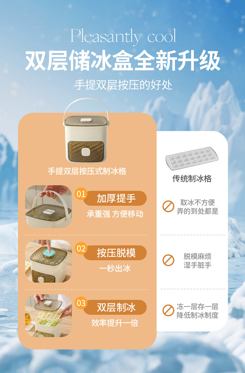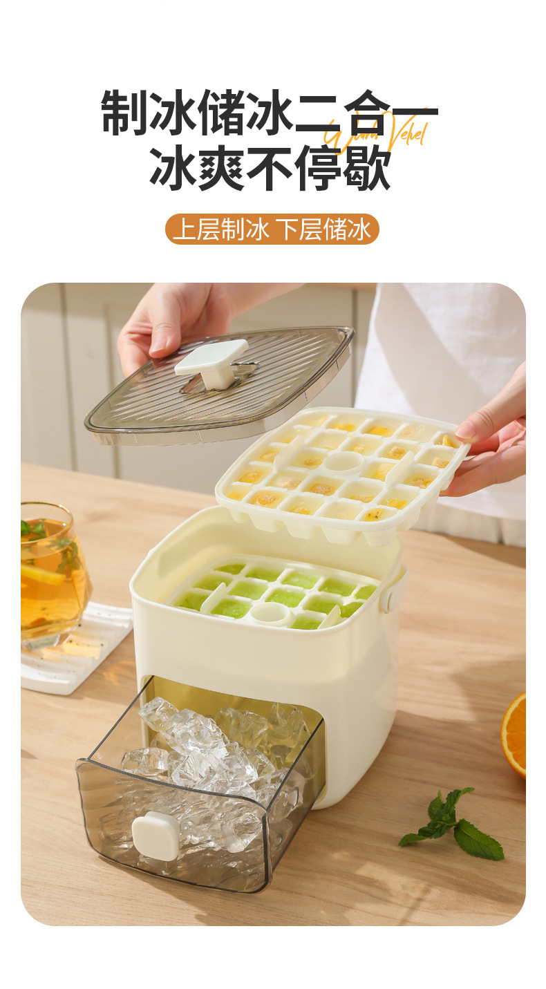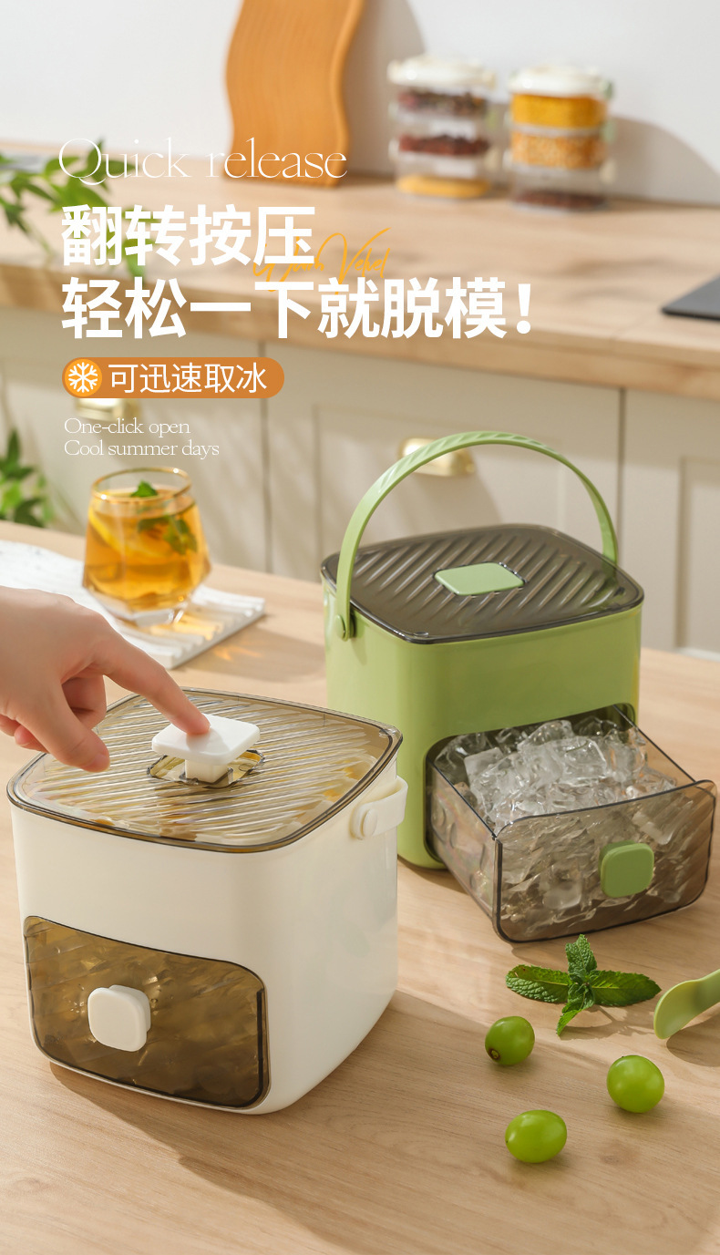 【一键开启,冰爽清凉夏日】按压冰块模具 冰格带盖家用冰箱自制冰盒 储存盒冻冰袋神器速冻模具-QQ