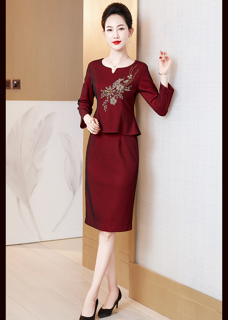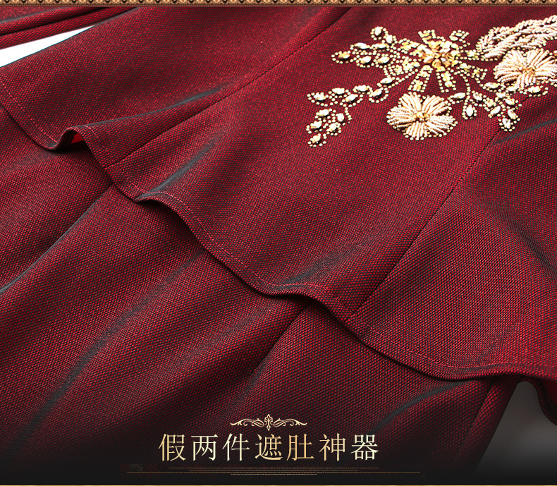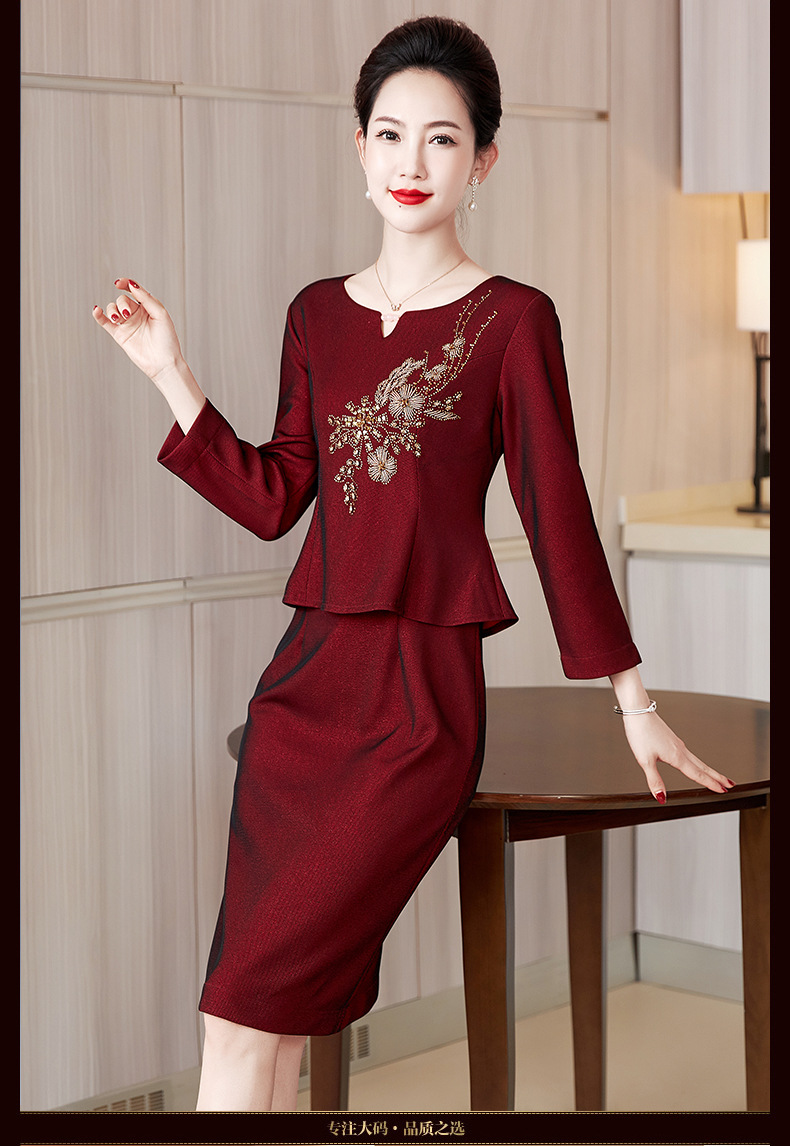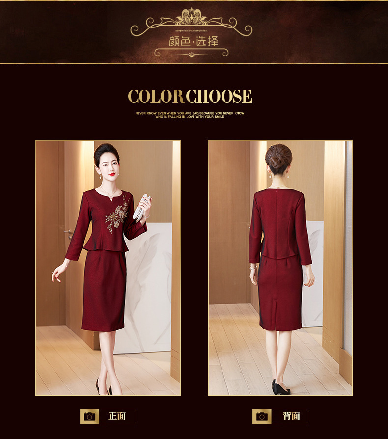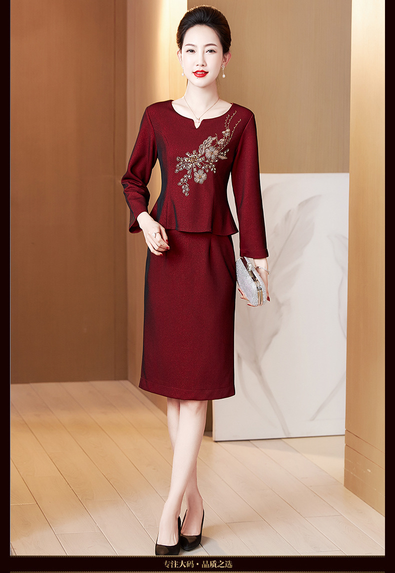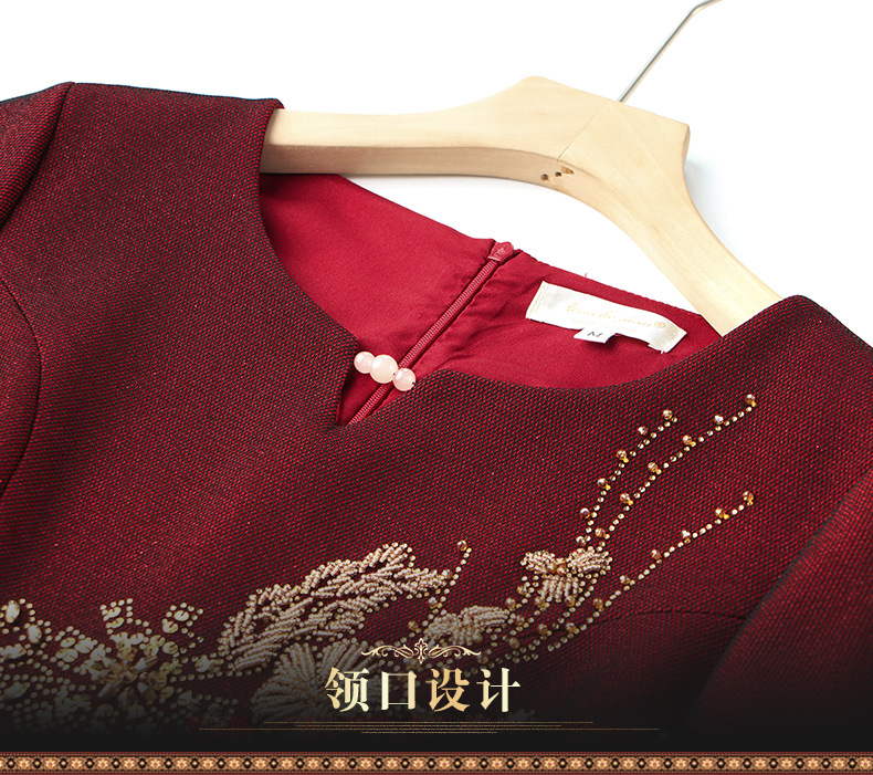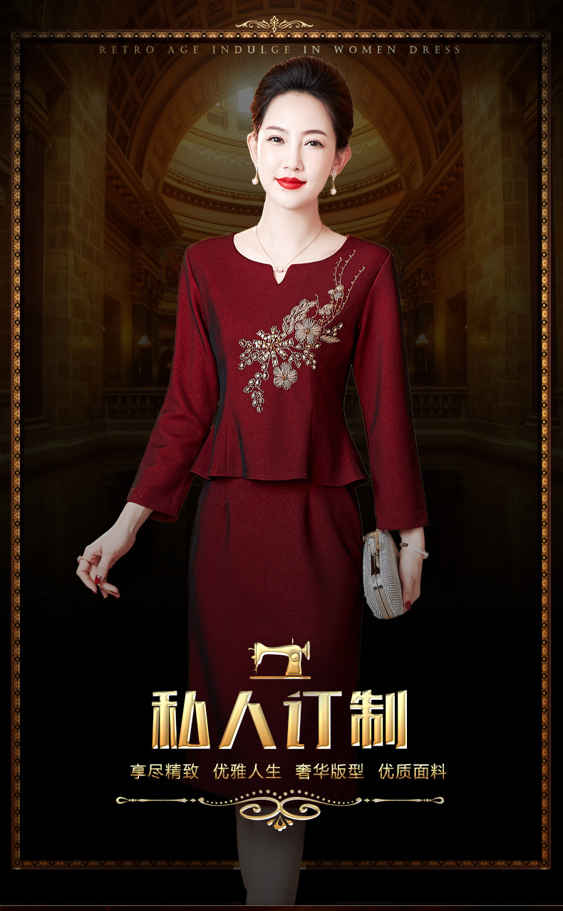 LC-2228冬季新款加绒加厚喜婆婆丈母娘嫁女儿宴会礼服修身连衣裙