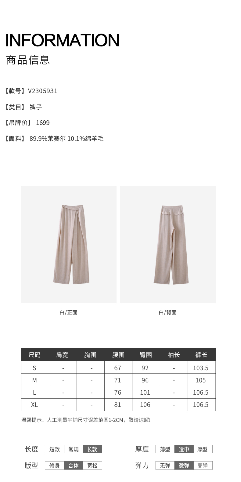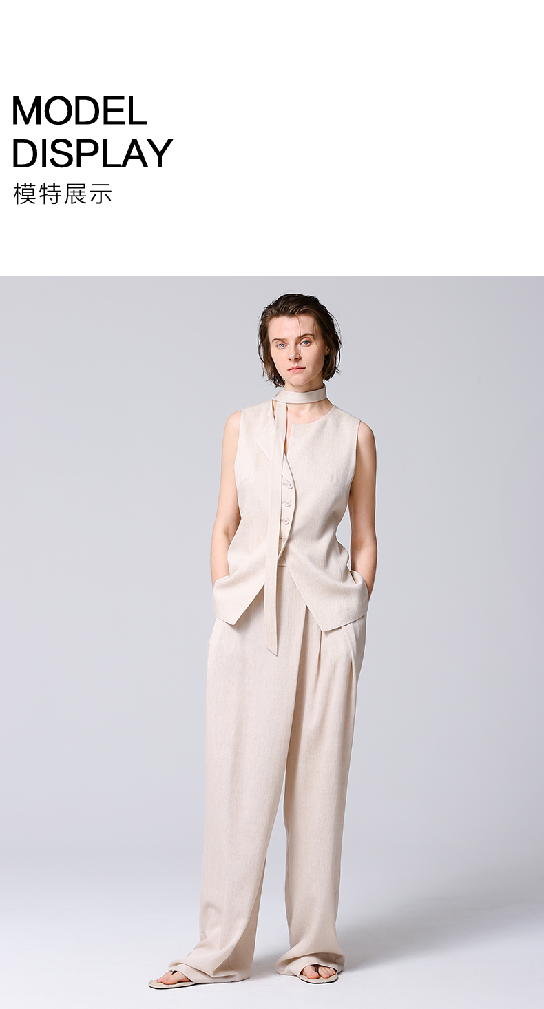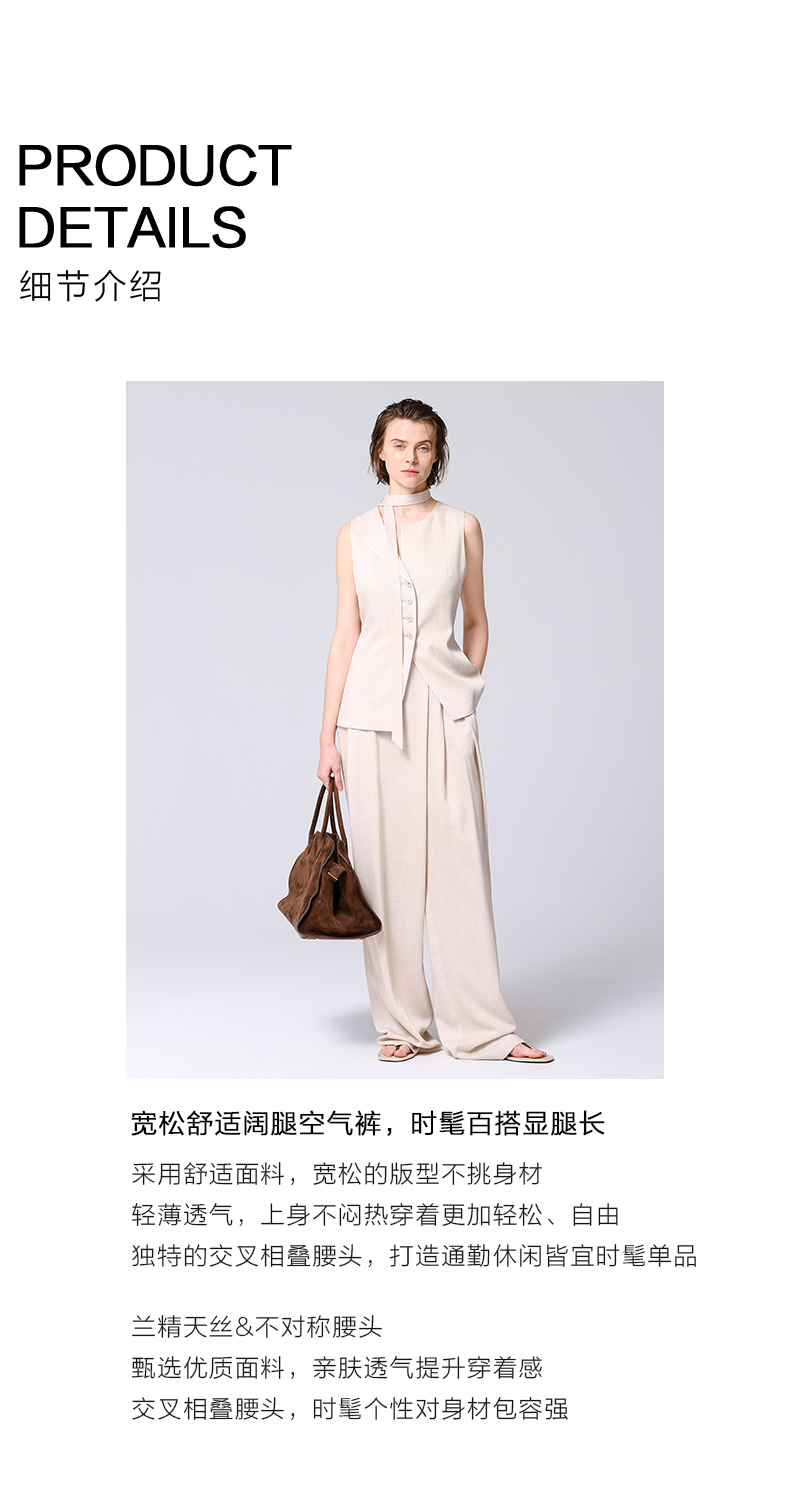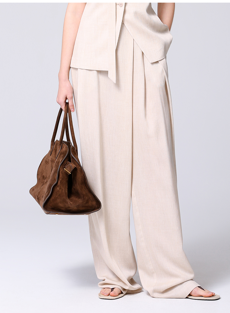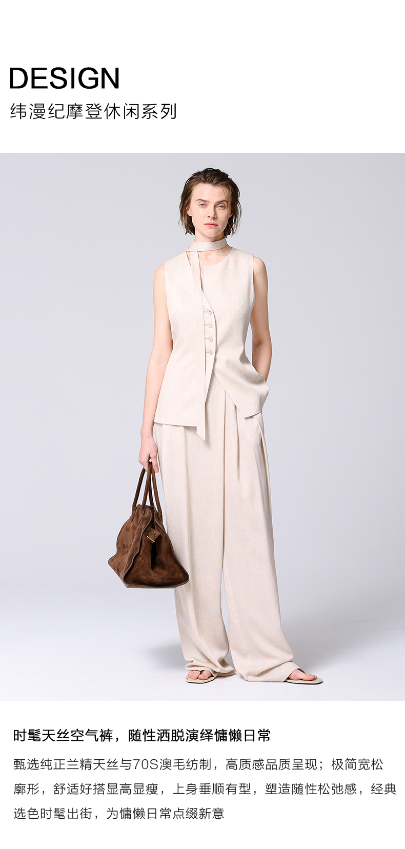 VIMAGE纬漫纪舒适宽松高级感松弛高腰阔腿休闲裤2025春季新款V2305931