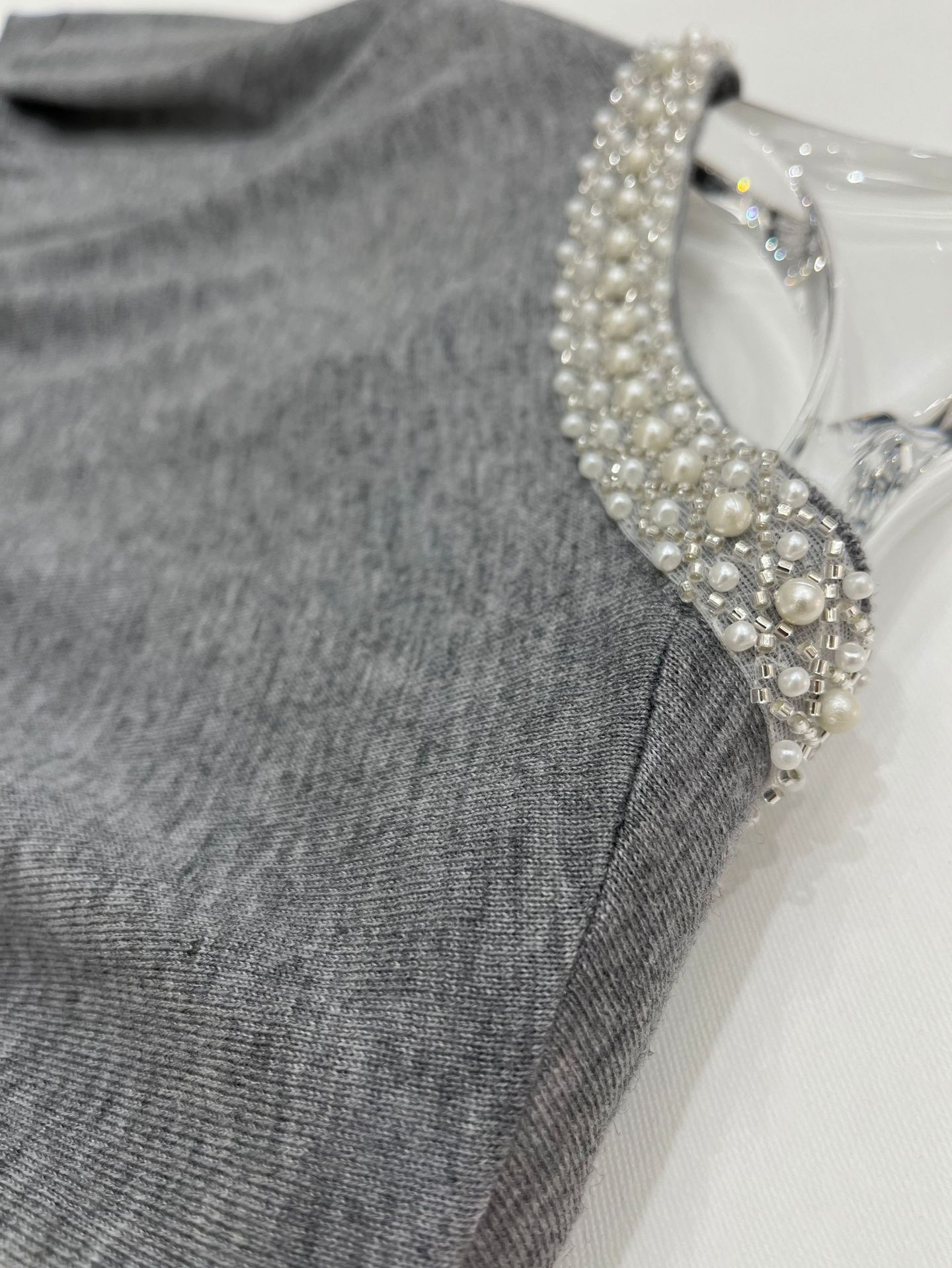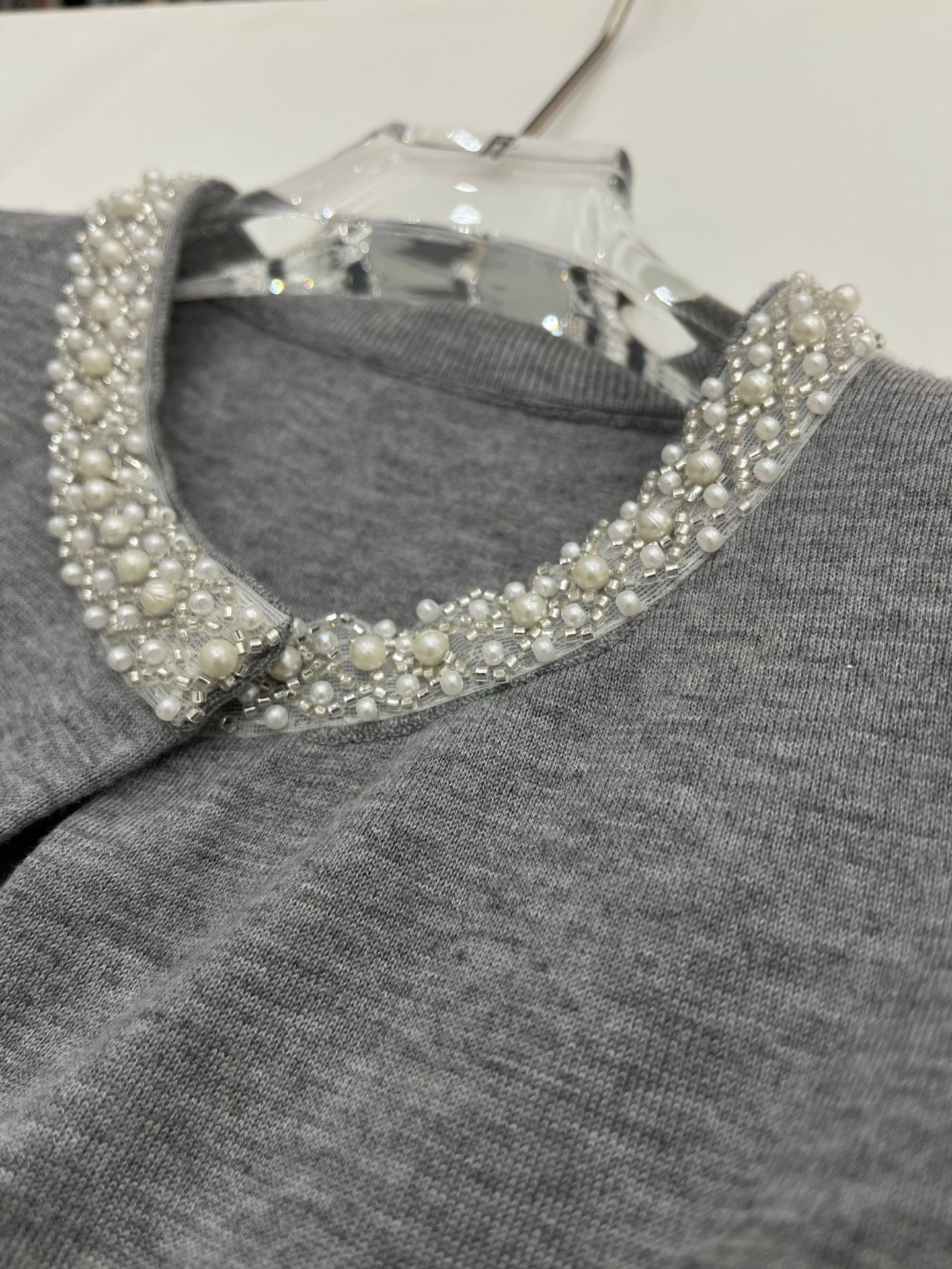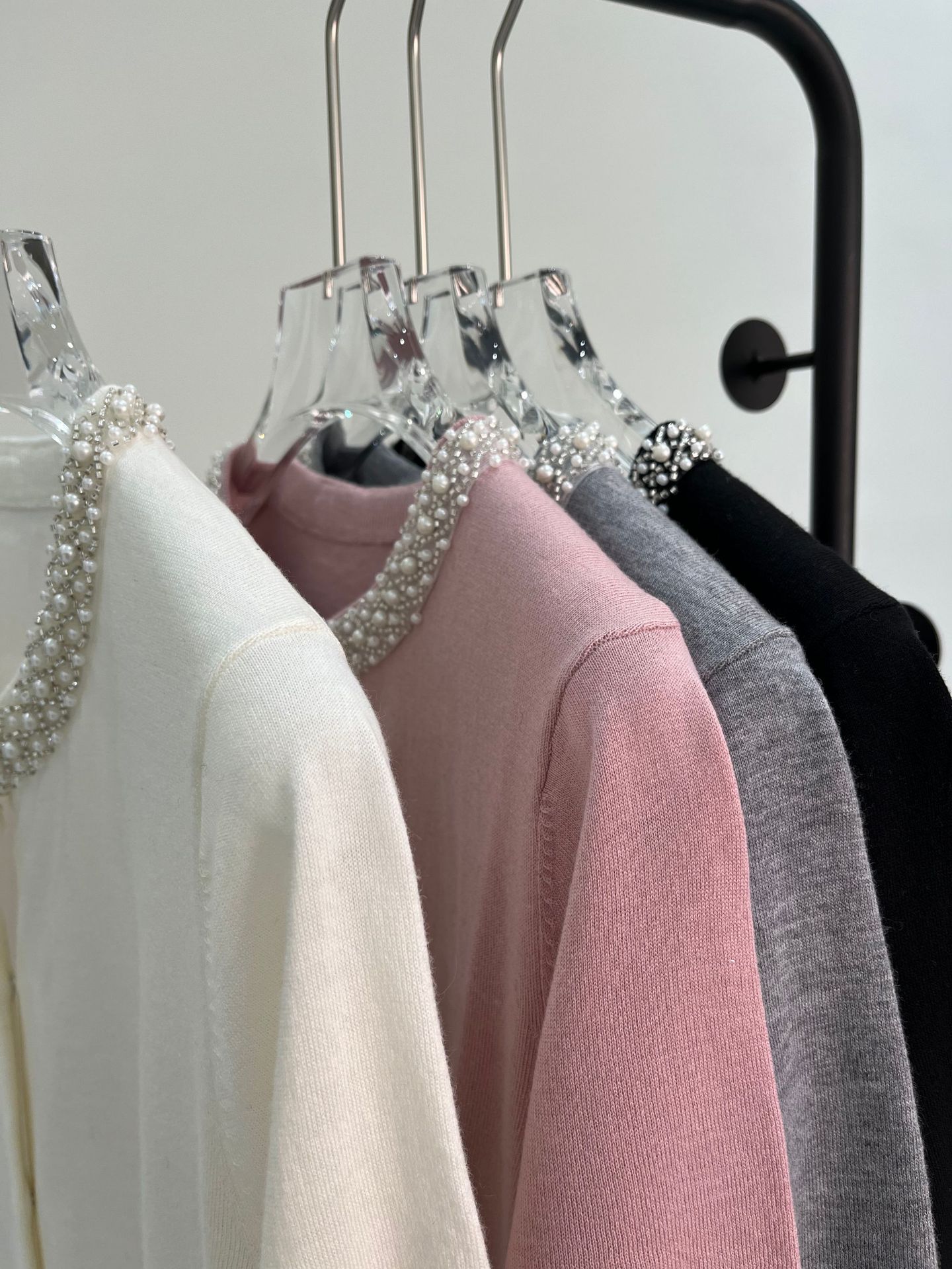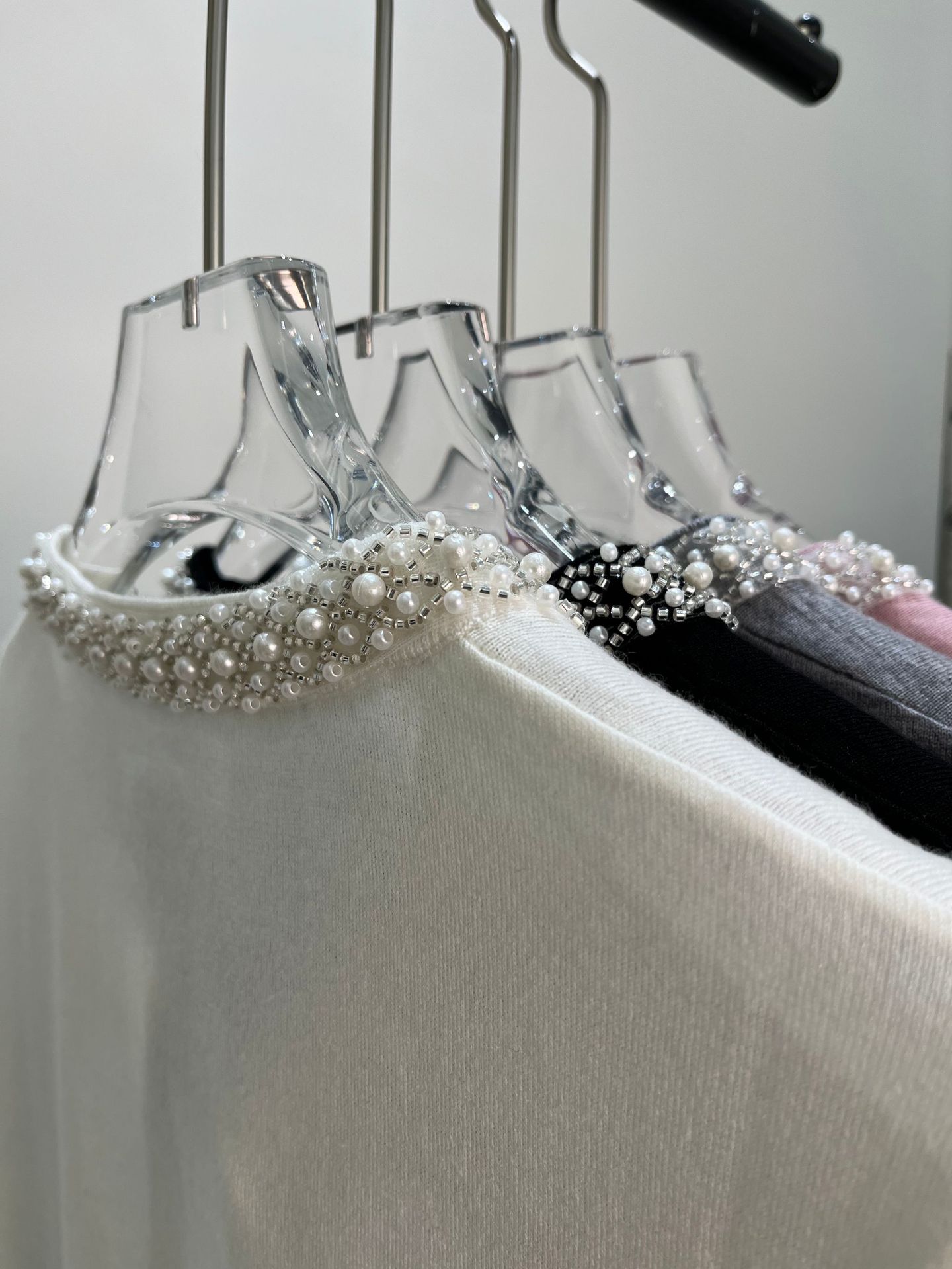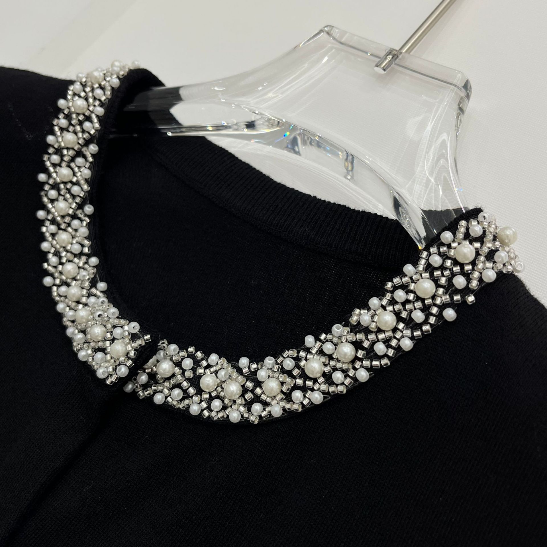 丁摩 春夏真丝羊毛小香风手工钉珠钻圆领短袖针织空调开衫上衣女5ZF-16153
