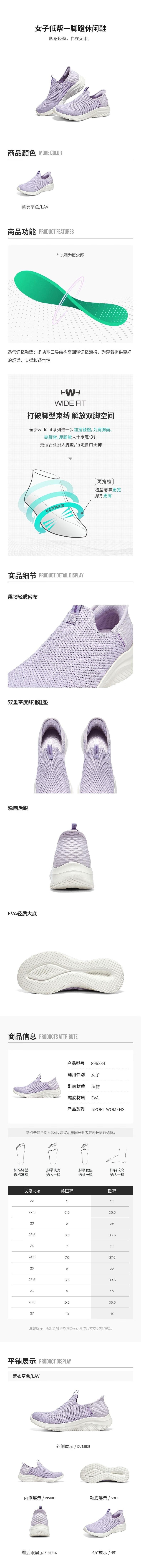 Skechers斯凯奇 女一脚蹬运动休闲鞋 896234-LAV