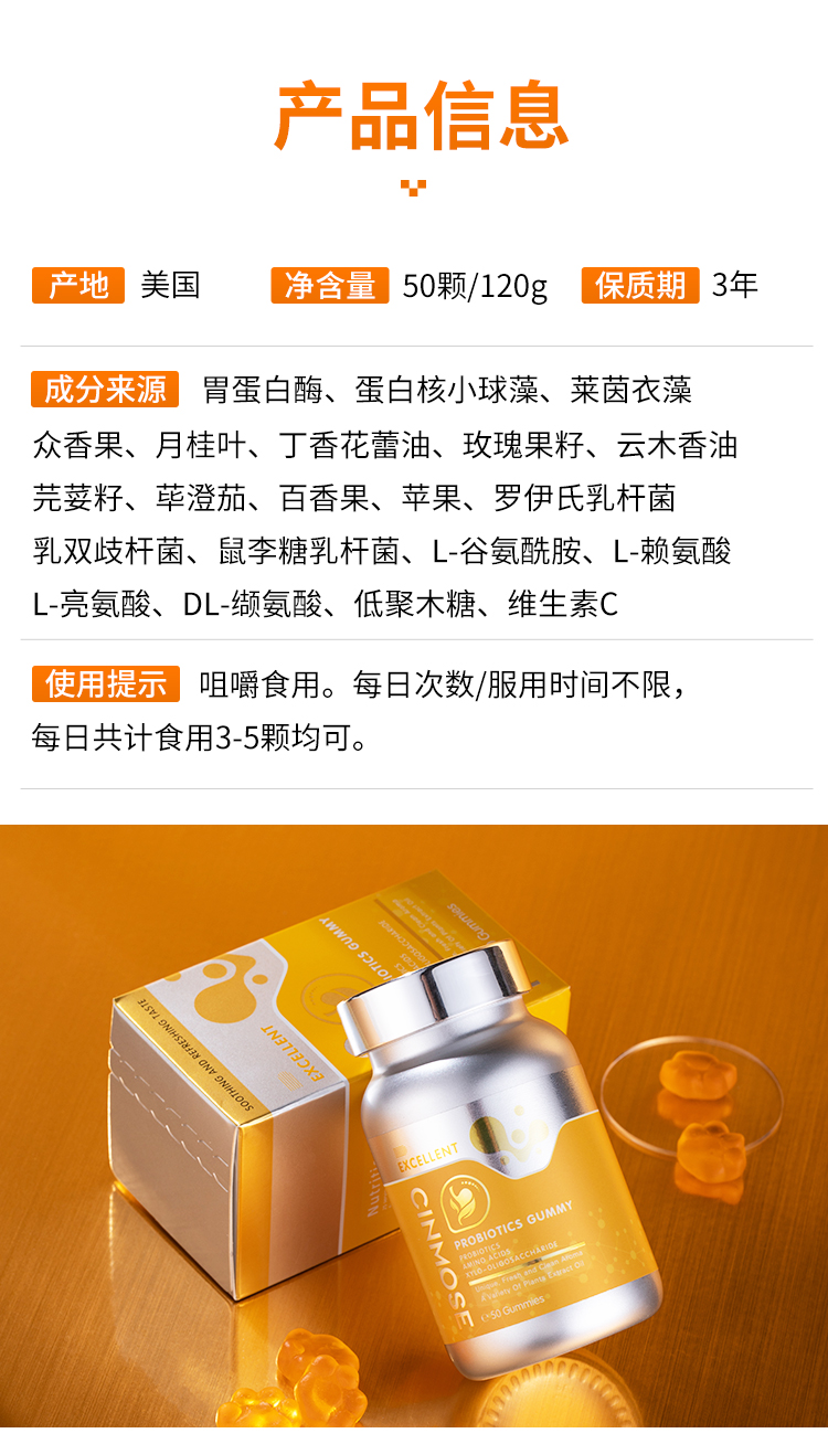 美国Cinmose辛莫斯蛋白核小球藻益生菌糖果50颗(125g)