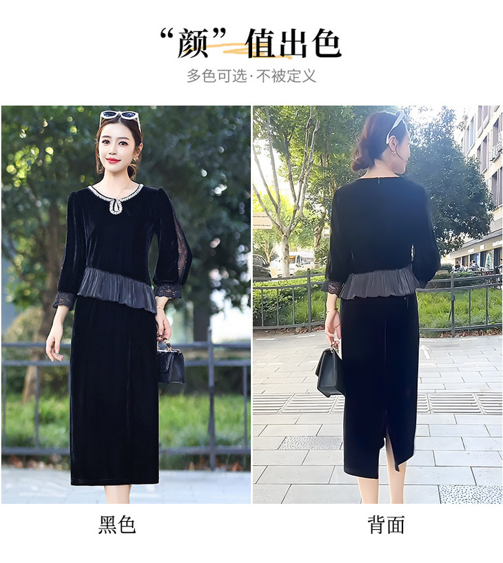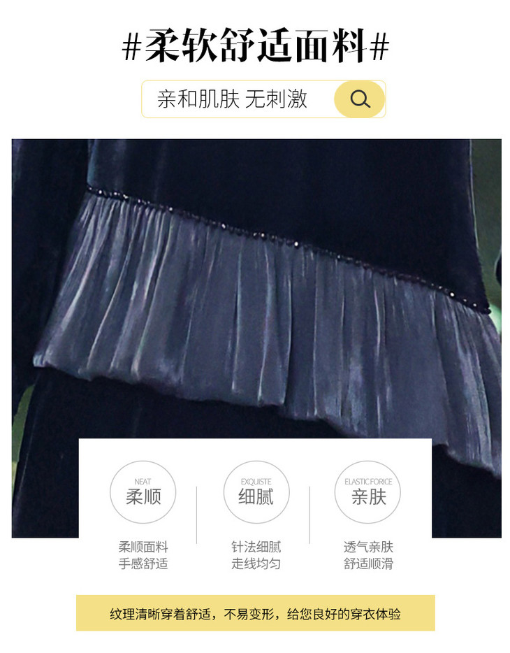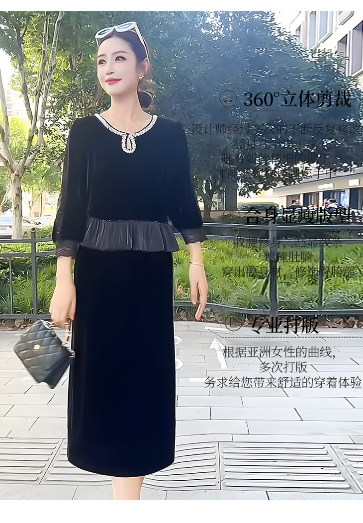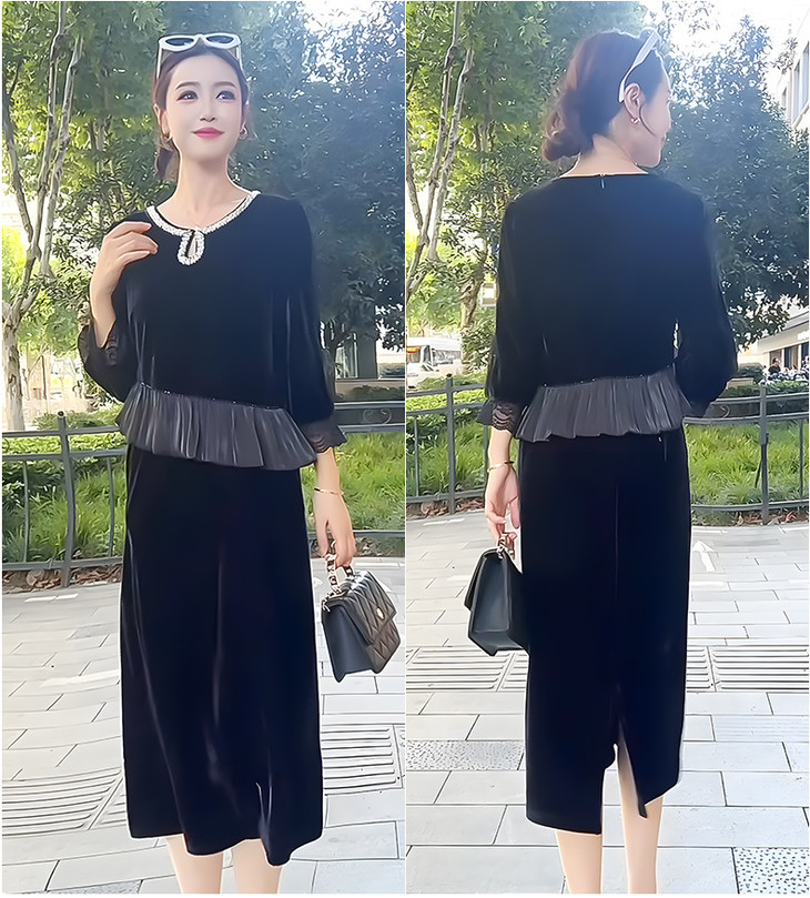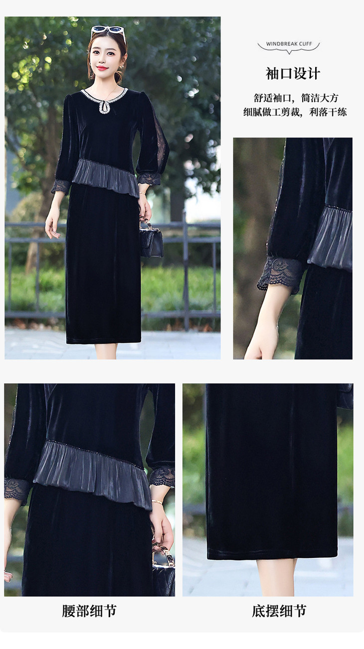 时尚法式金丝绒连衣裙,韩版拼接简约优雅洋气裙子QYM-YJ25XY605