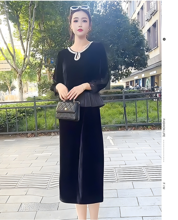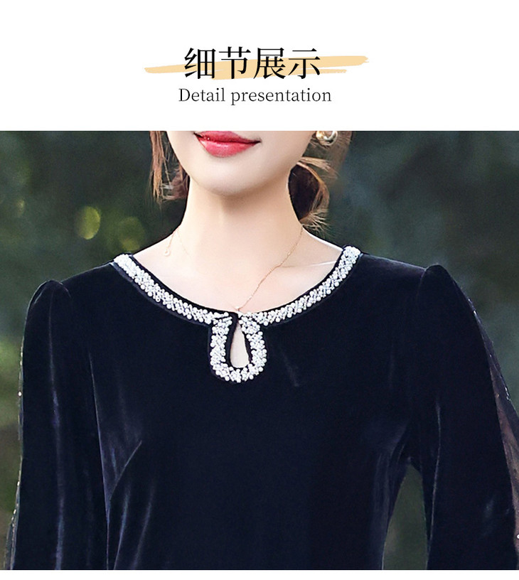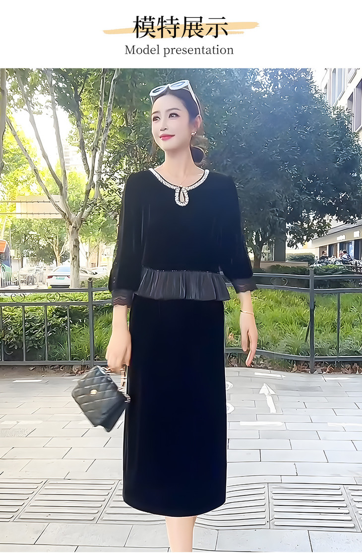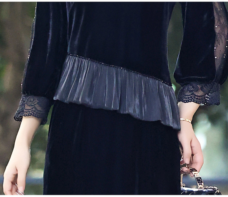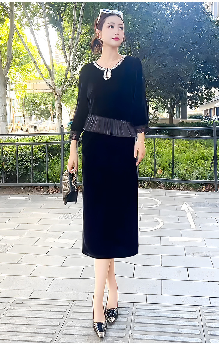 时尚法式金丝绒连衣裙,韩版拼接简约优雅洋气裙子QYM-YJ25XY605