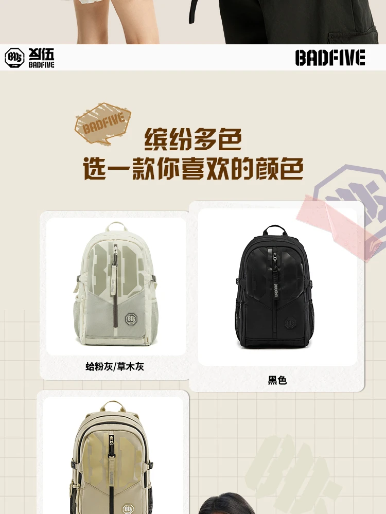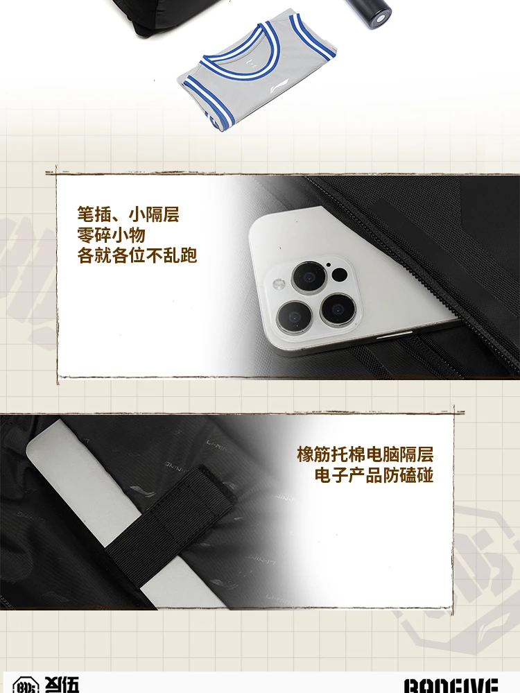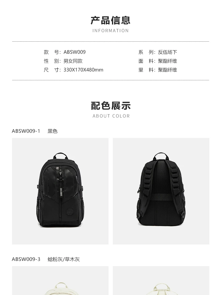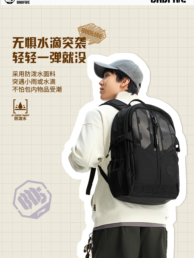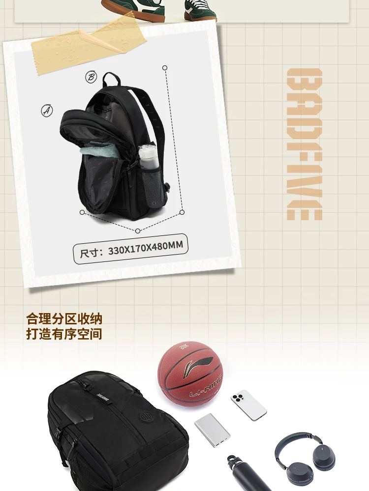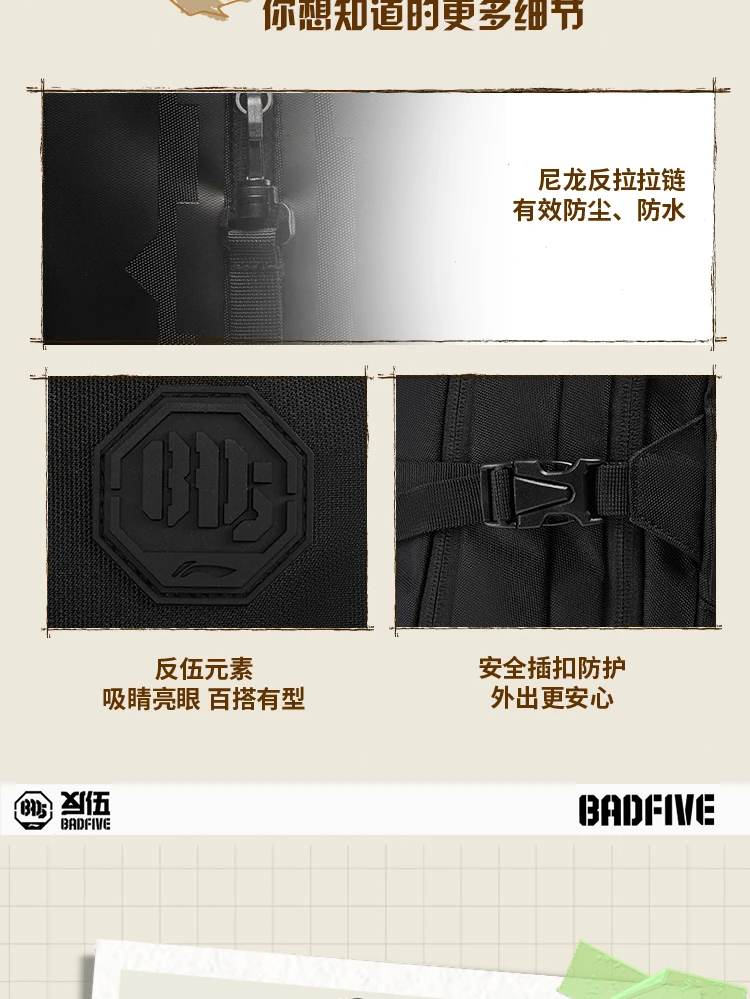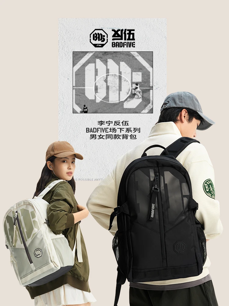 李宁反伍BADFIVE反光防泼水双肩包ABSW009